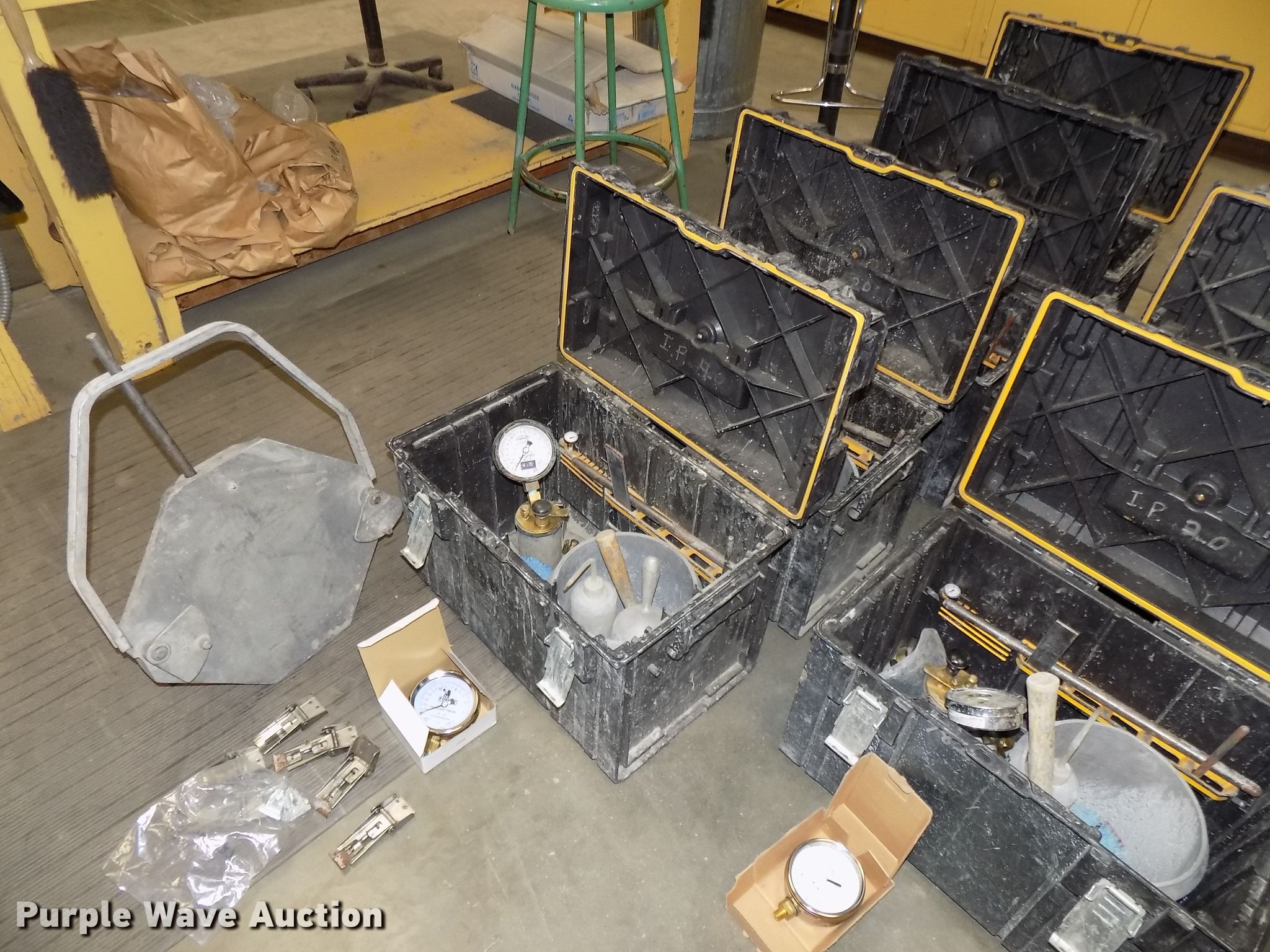 Purple Wave is selling a used Tools in Nebraska. This item is a (4) concrete air meters with the following: 1988 Forney concrete air meter, Assorted gauge, tools, and carrying case, 1991 Forney concrete air meter, Assorted gauge, tools, and carrying case, 1993 TMI concrete air meter, Assorted gauge, tools, and carrying case, 1999 TMI concrete air meter, Assorted gauge, tools, and carrying case, Additional clamps and gauge, SoilTest slump cone and base, Unit# 1849, 1851, 1853, 1856