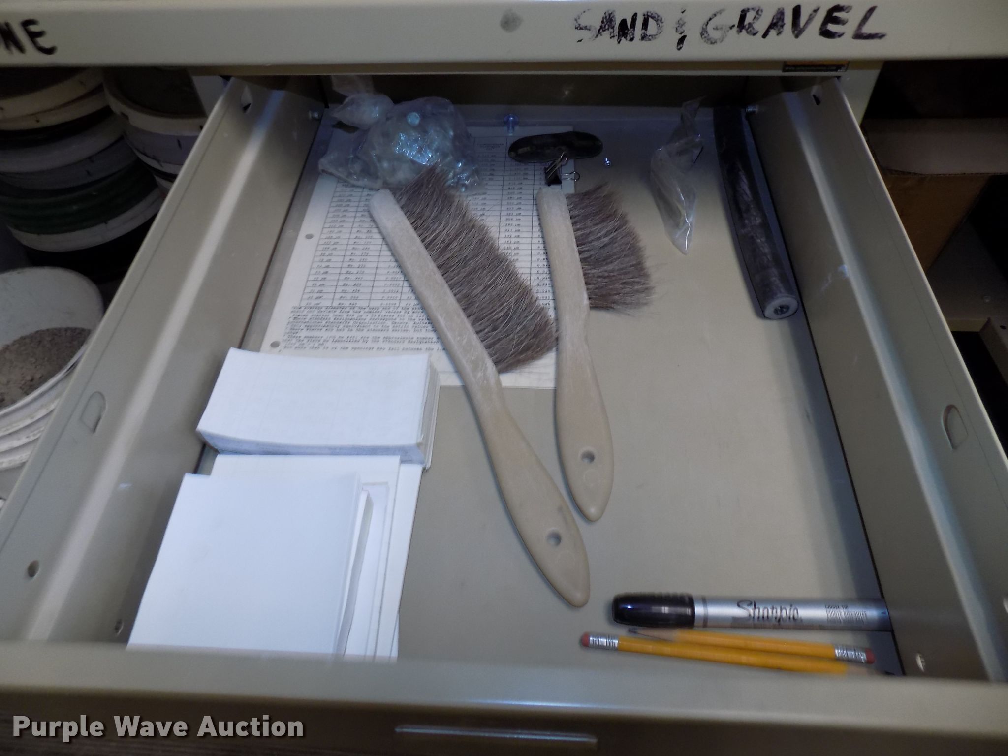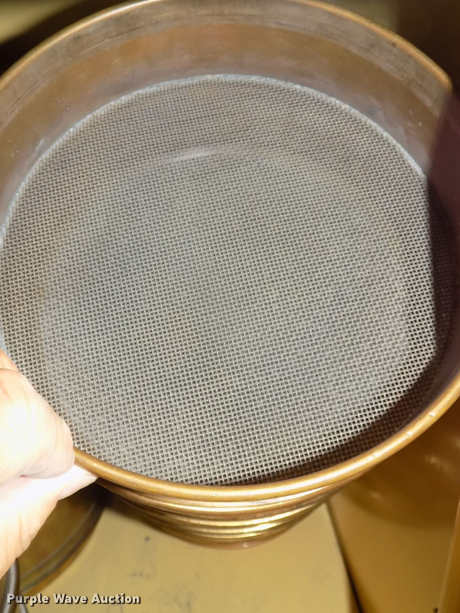 Purple Wave is selling a used Tools in Nebraska. This item is a Aggregate gradation analysis equipment with the following: (3) sample aggegate splitters, Gilson Screen Co SP-1, Unit# 1926,, (2) Soil test splitters and pans, Model CL284, Unit# 1927, 1930,, Pans, Buckets, Wood cabinet, Mettler PE16 scale, 16,000 gram capacity, 1/10 gram readability, Unit# 1933, Thermolyne 2200 HPA2240M hot plate, Single phase, 220/240V, Serial 1065980269394, CapitaL Rangette hotplate, Removable re-bar spacer, 110V, Approximately 100 sieves, 8,10, and 12" diameters, (48) unused