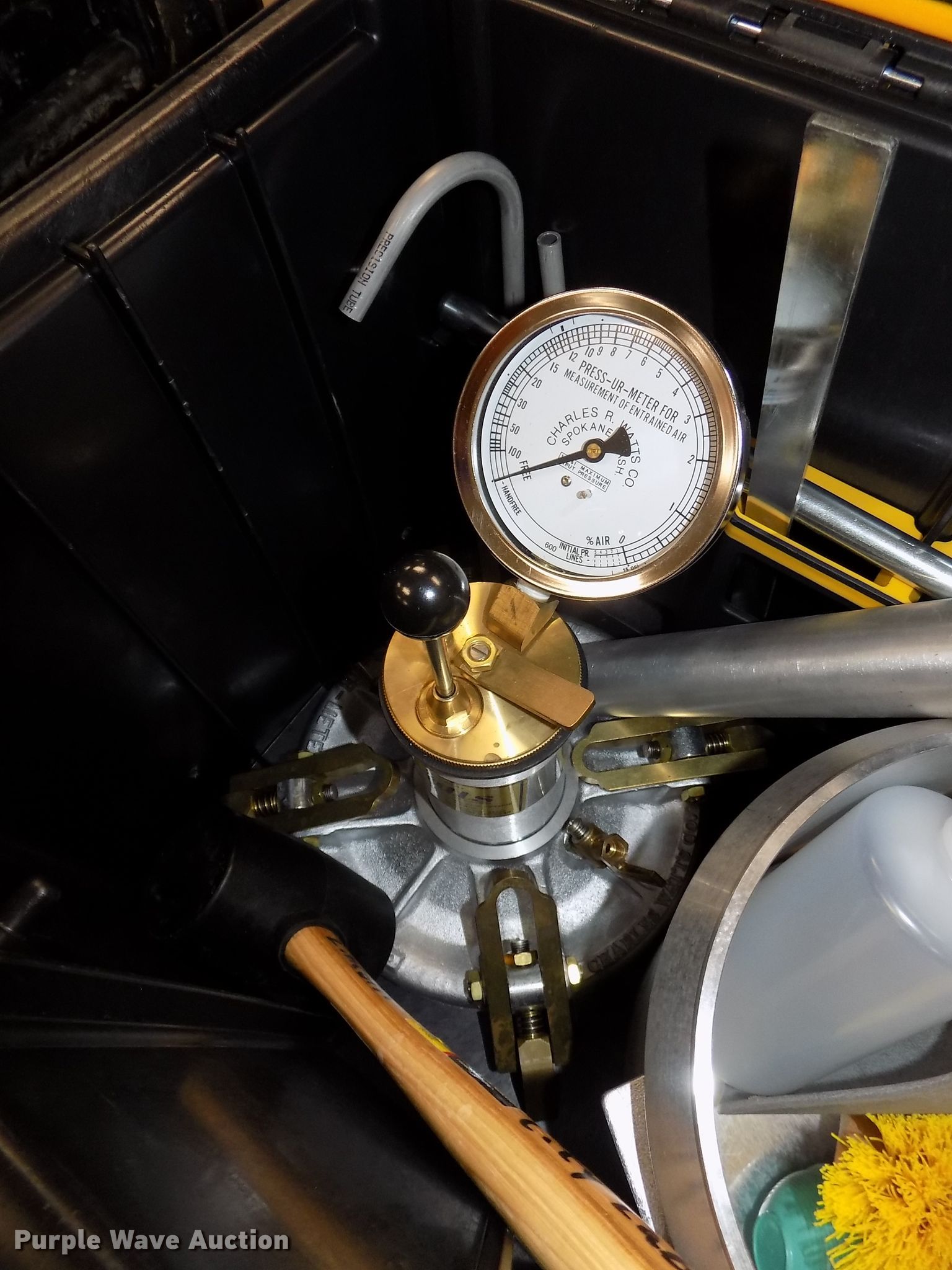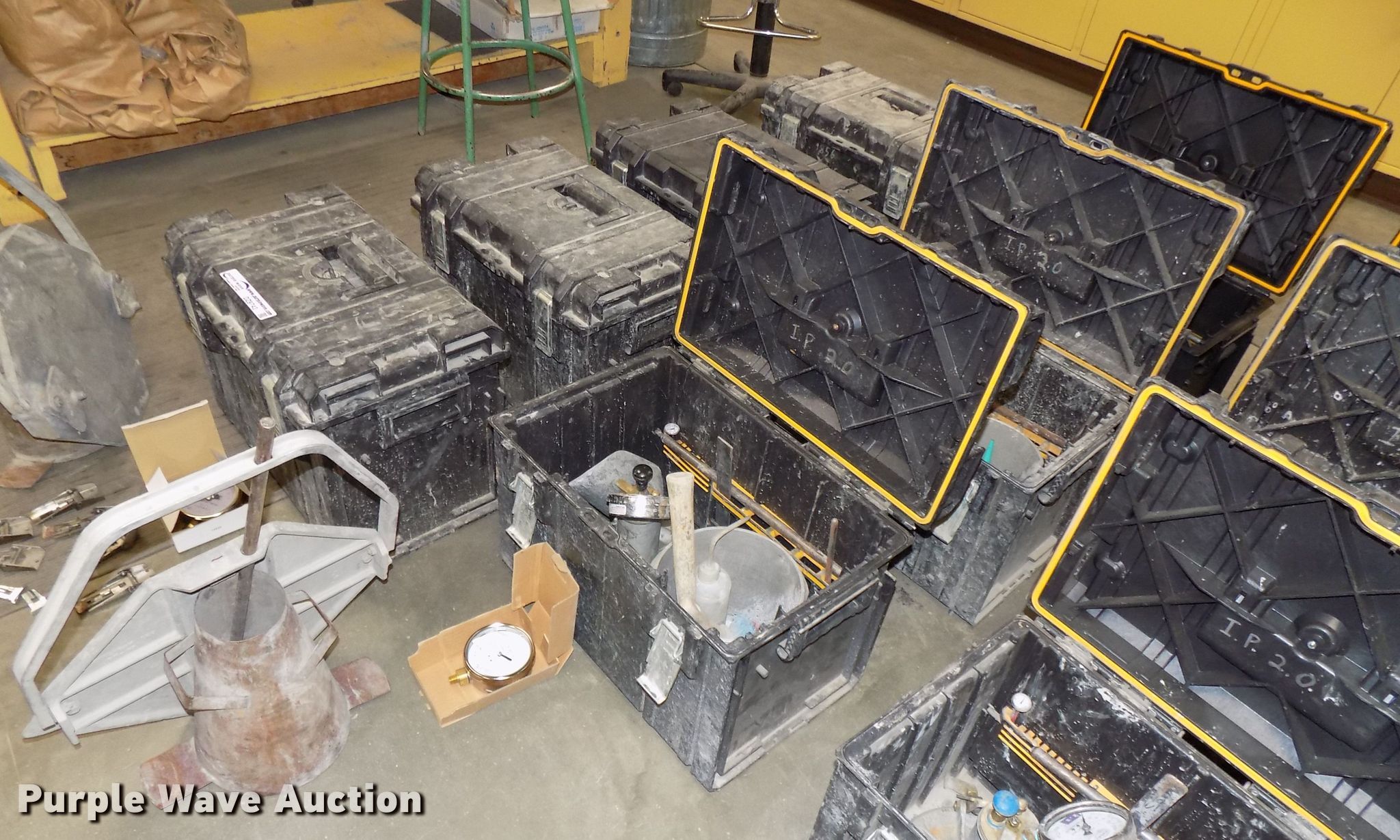 Purple Wave is selling a used Tools in Nebraska. This item is a (3) concrete air meters with the following: 2011 Watts concrete air meter, Gauge, Tools, Case, Unit# 782, 2012 Watts concrete air meter, Gauge, Tools, Case, Unit# 058, 2017 Watts concrete air meter, Gauge, Tools, Case, Unused, Unit# B2230, Replacement gauges, Soil test slump cone and base, Unit# SC-3, Roll-A-Meter volumetric air indicator, Tools, Case