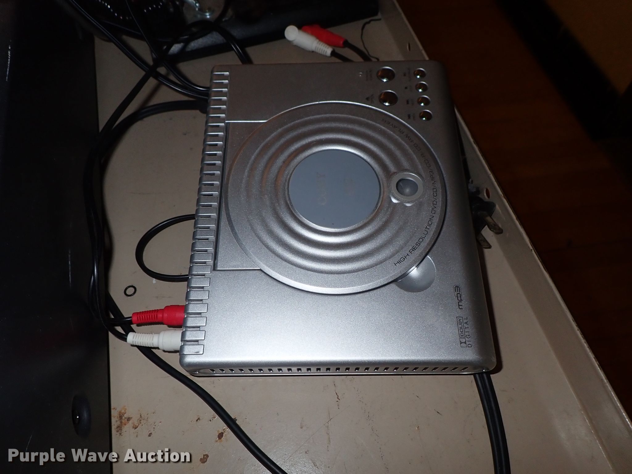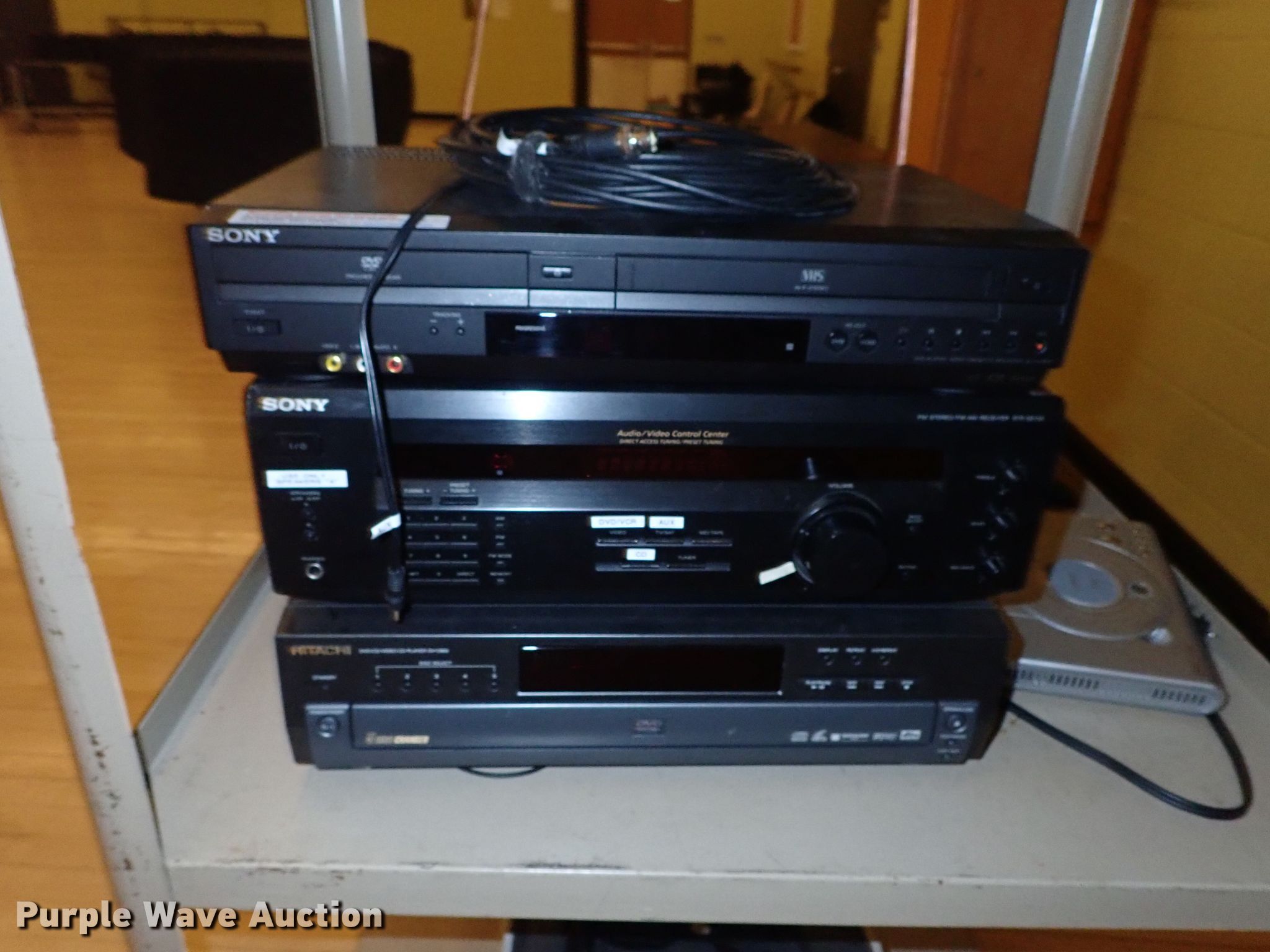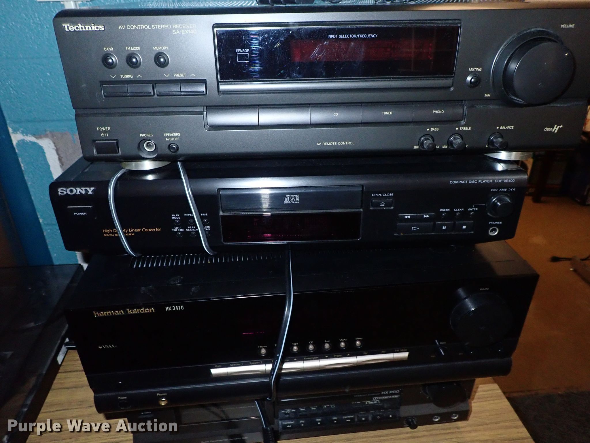 Purple Wave is selling a used Electronics in Kansas. This item is a Electronics with the following: (8) JBL speakers, Sony DVD/VHS player, Sony audio/video control center, Hitachi DVD player, MP3 player, HP printer, Symphonic CD player, Technics synchronizer, Technics cassette deck, Technics receiver, Technics stereo receiver, Sony CD player, Harman receiver, Record player, (2) speakers, (2) AL audio speakers, Sony Hi-8 camcorder, (3) tripods