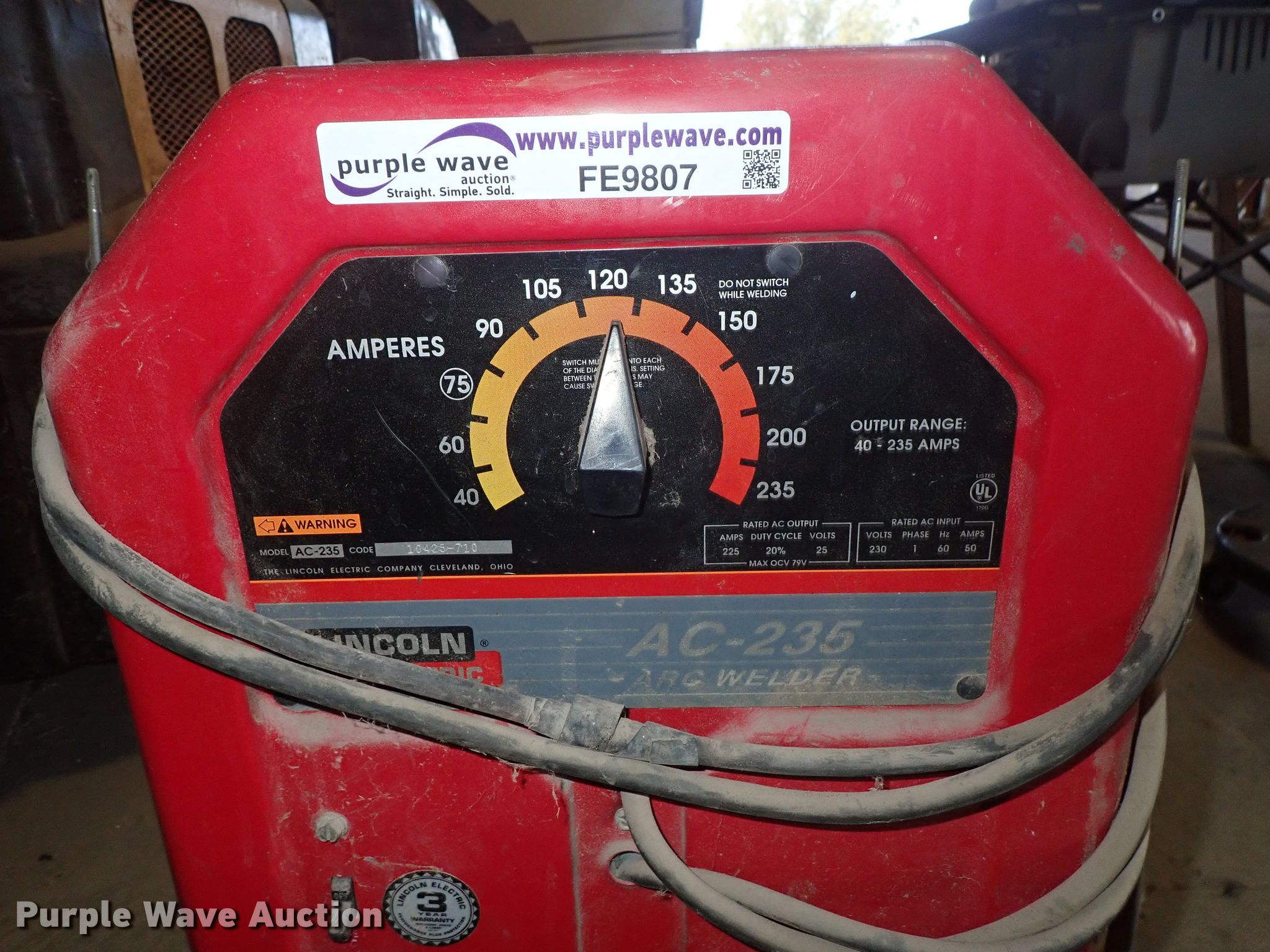 Tools. Lincoln AC-235 arc welder Single phase, 230V input, 225 amp output, Cart, (2) blowers, Approx. 15 filters. USD 312 Haven Schools. 414 W Main St. Haven, KS 67543