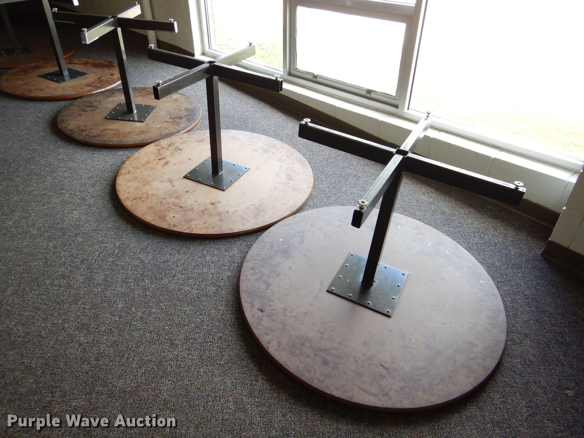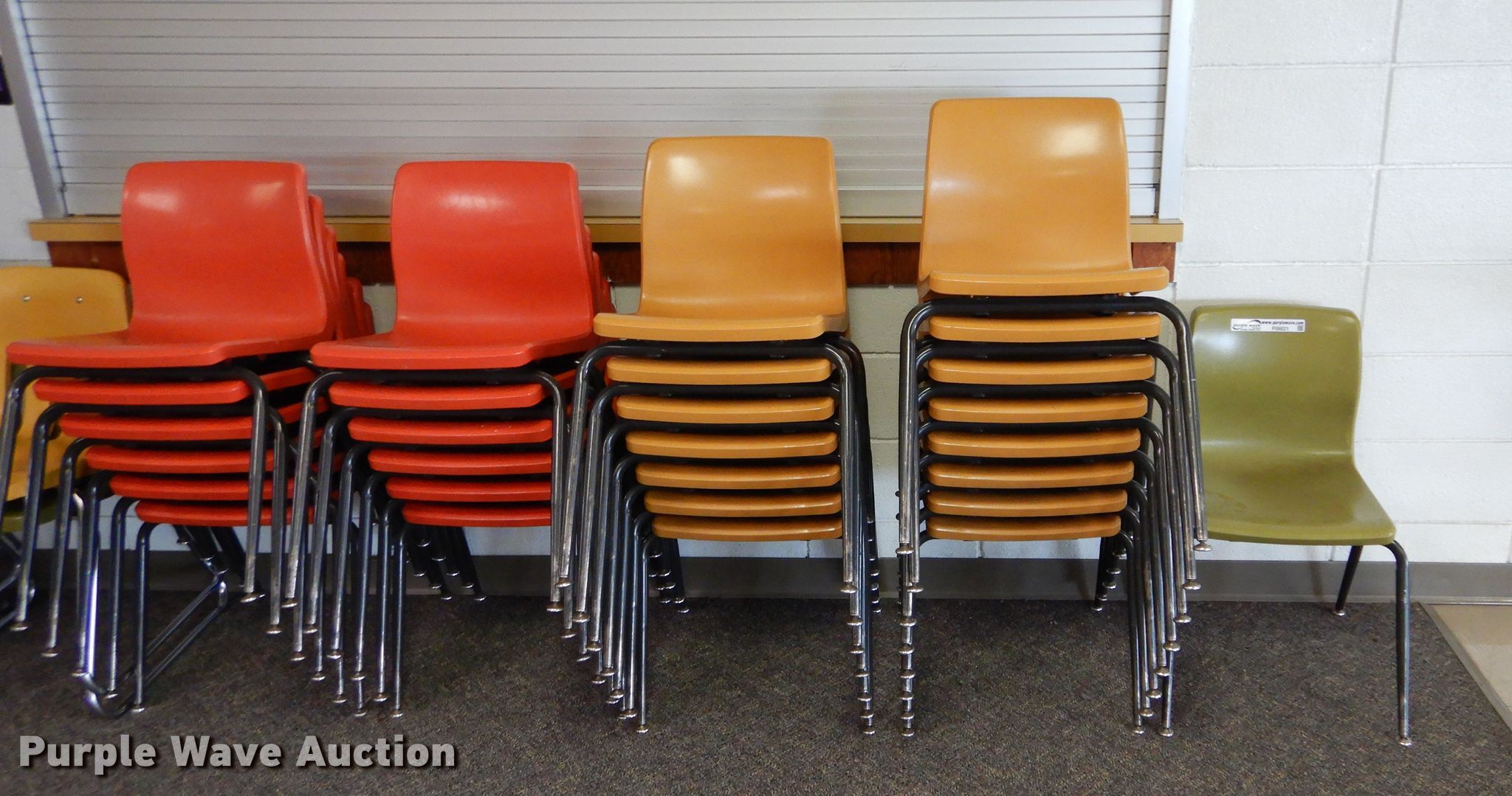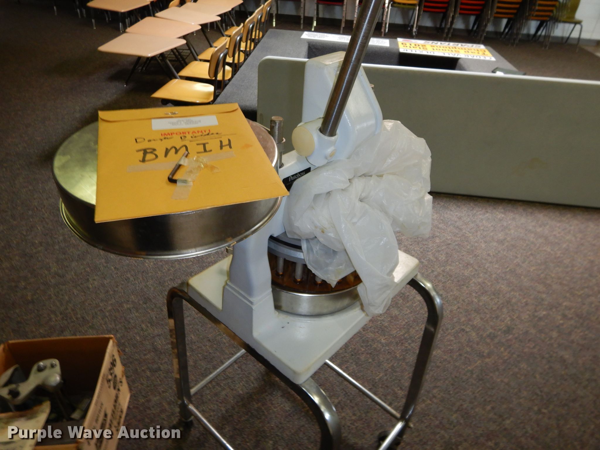 Purple Wave is selling a used Furniture in Kansas. This item is a Furniture with the following: Approx. 70 plastic chairs, Approx. 15 round tables, Approx. 23 wood folding tables, (2) rugs, (2) Promethian smart boards, Approx. 7 schools desks, Office supplies, Approx. 175 metal folding chairs, Dutchess dough baller, Hobart dicer, Weight benches and dumbbells, Cafeteria style folding table, Approx. 4 tube televisions