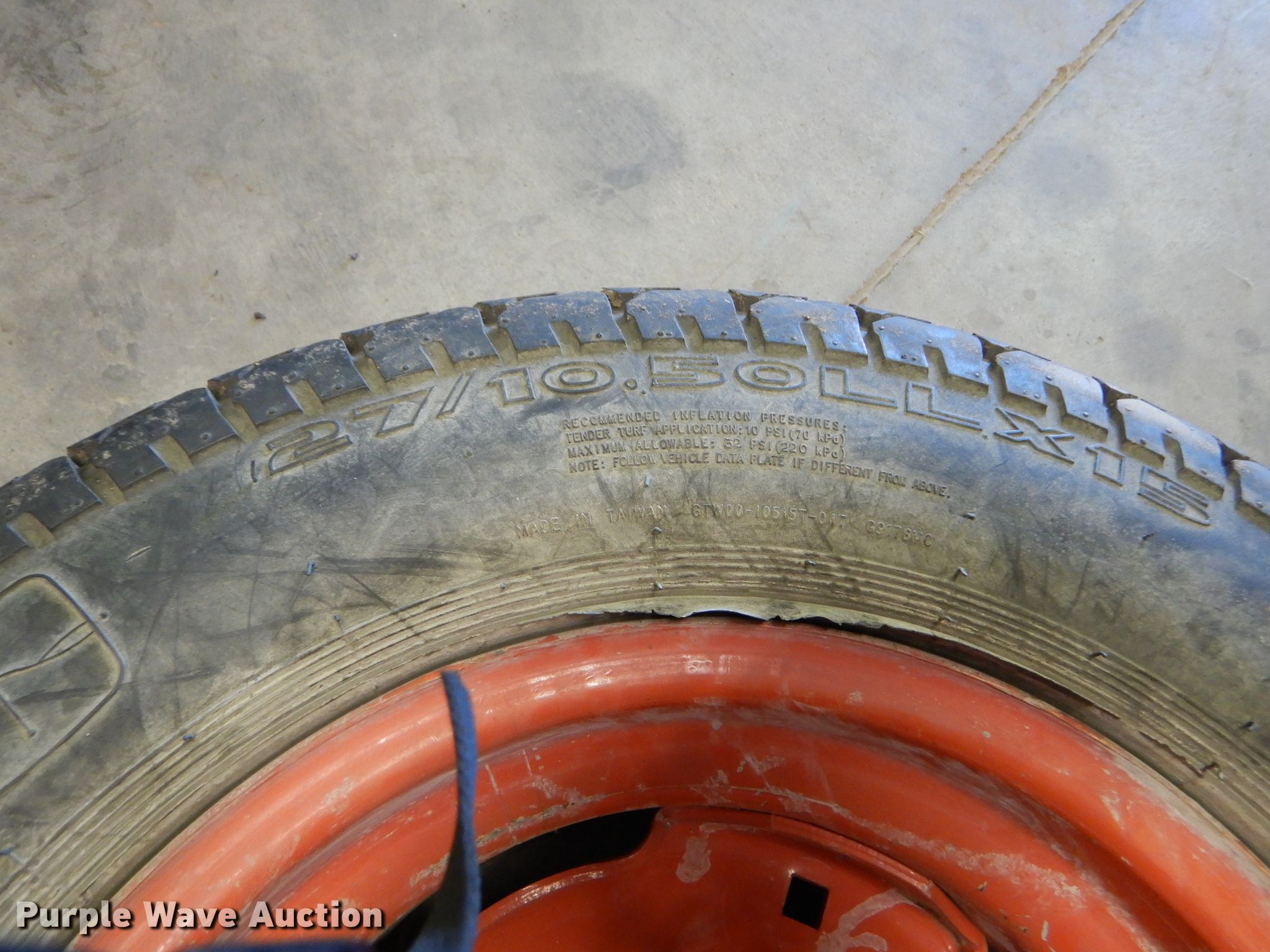Take a look at this used Galaxy Turf Special 27/10.50LLx15 tires and wheels being sold on August 6th, 2019 in the SOLD! August 6 Government Auction. Take a look at all of the item information below or take a look at similar auctions for Tires and Tracks.