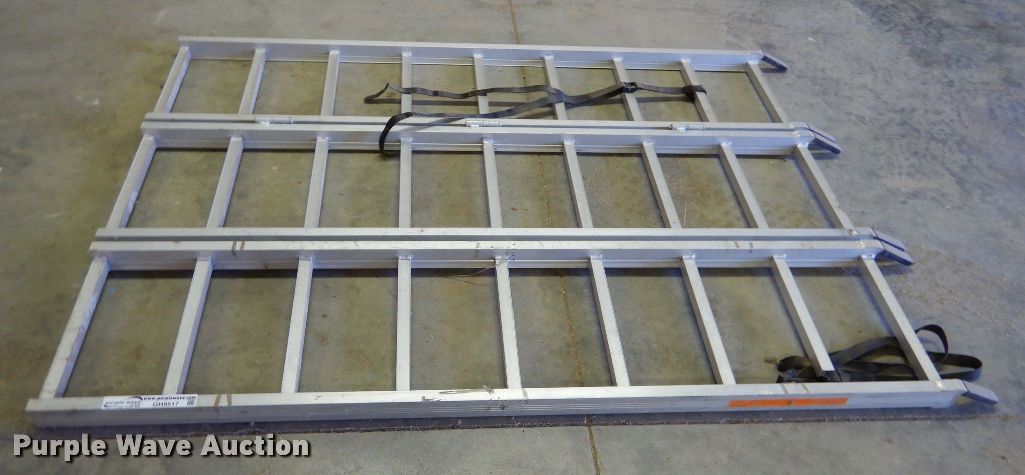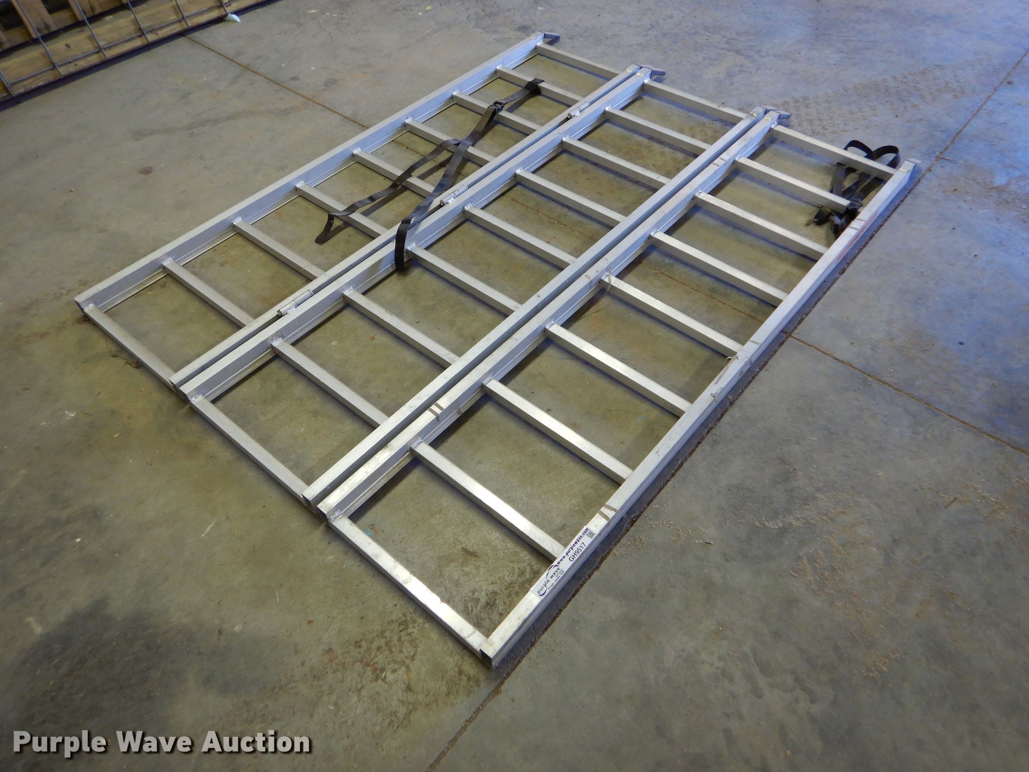 Purple Wave is selling a used Tools in Kansas. This item is a Aluminum folding ramps with the following: 5'L