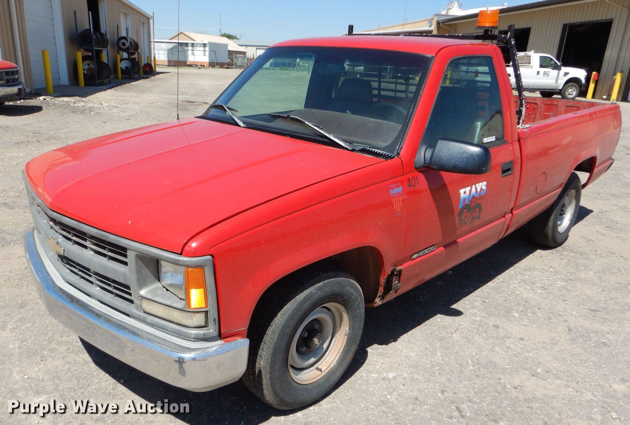 1996 Chevrolet C1500 pickup truck. 130,213 miles on odometer, 4.3L V6 OHV 12V gas engine, Automatic transmission, Heat, 235/75R15 tires, Engine coolant leak Possible intake manifold issue. Kansas title. 1GCEC14W7TZ174276. City of Hays. 1000 Vine St. Hays, KS 67601