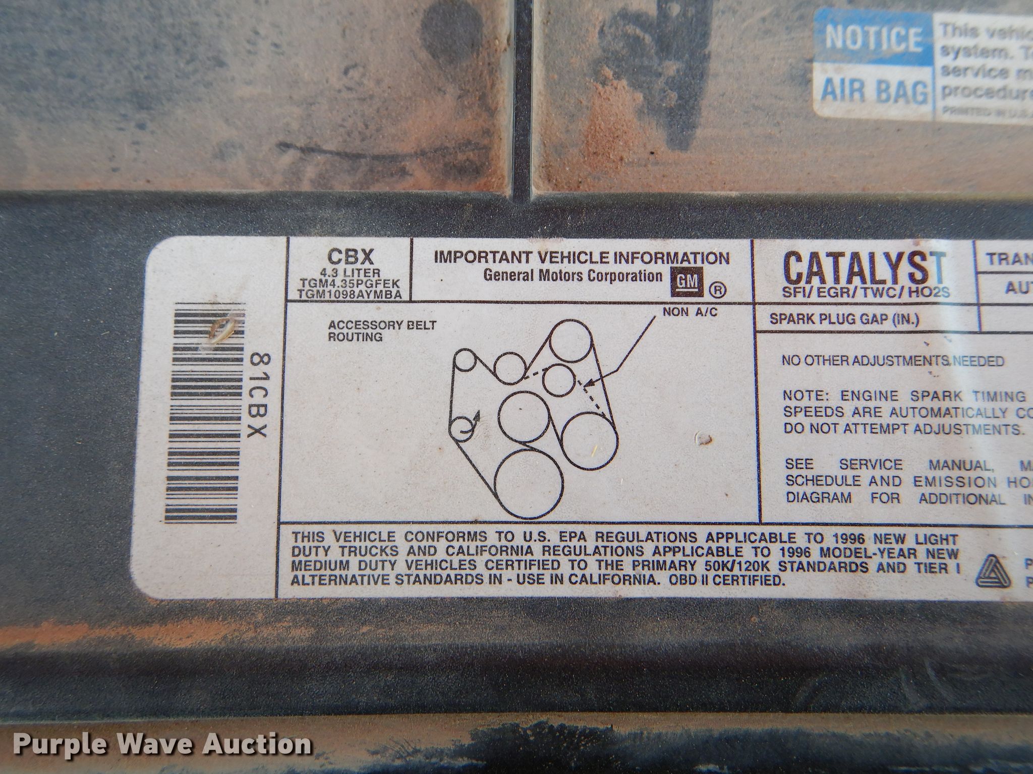 Purple Wave is selling a used 1/2 Ton Pickup or Van in Kansas. This item is a 1996 Chevrolet C1500 pickup truck with the following: 130,213 miles on odometer, 4.3L V6 OHV 12V gas engine, Automatic transmission, Heat, 235/75R15 tires, Engine coolant leak, Possible intake manifold issue