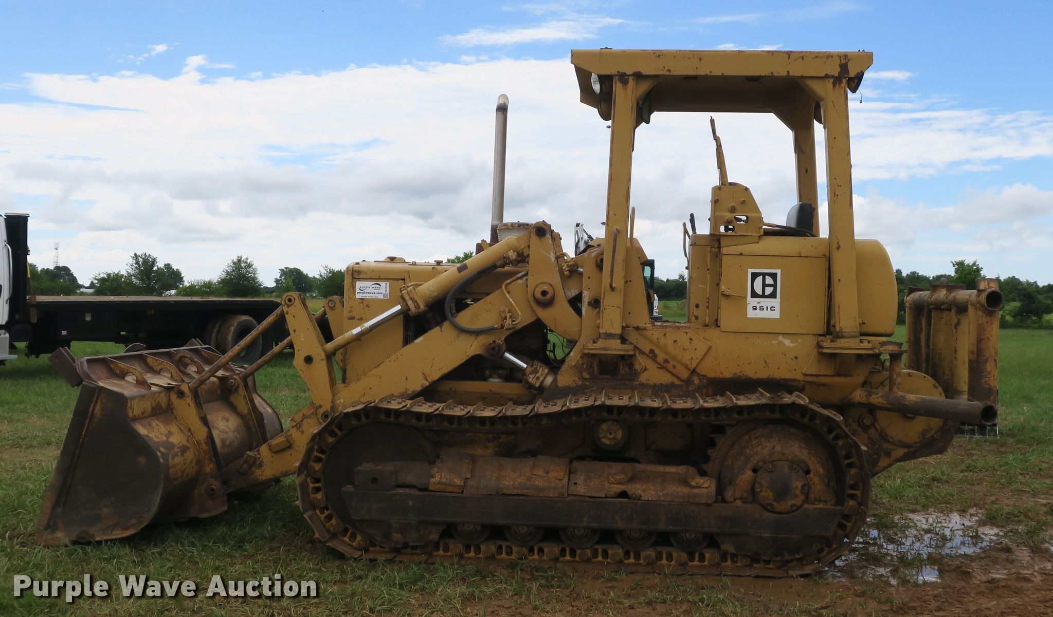 Purple Wave is selling a used Crawler Loader in Missouri. This item is a 1980 Caterpillar 951C track loader with the following: 6,089 hours on meter, Caterpillar four cylinder diesel engine, Powershift transmission, 3F-3R gears, OROPS, Two-lever bucket controls, Front and rear work lights, 94"W general purpose bucket, Hyster D4F winch, 20"W single grouser track pads, Serial 86J05381