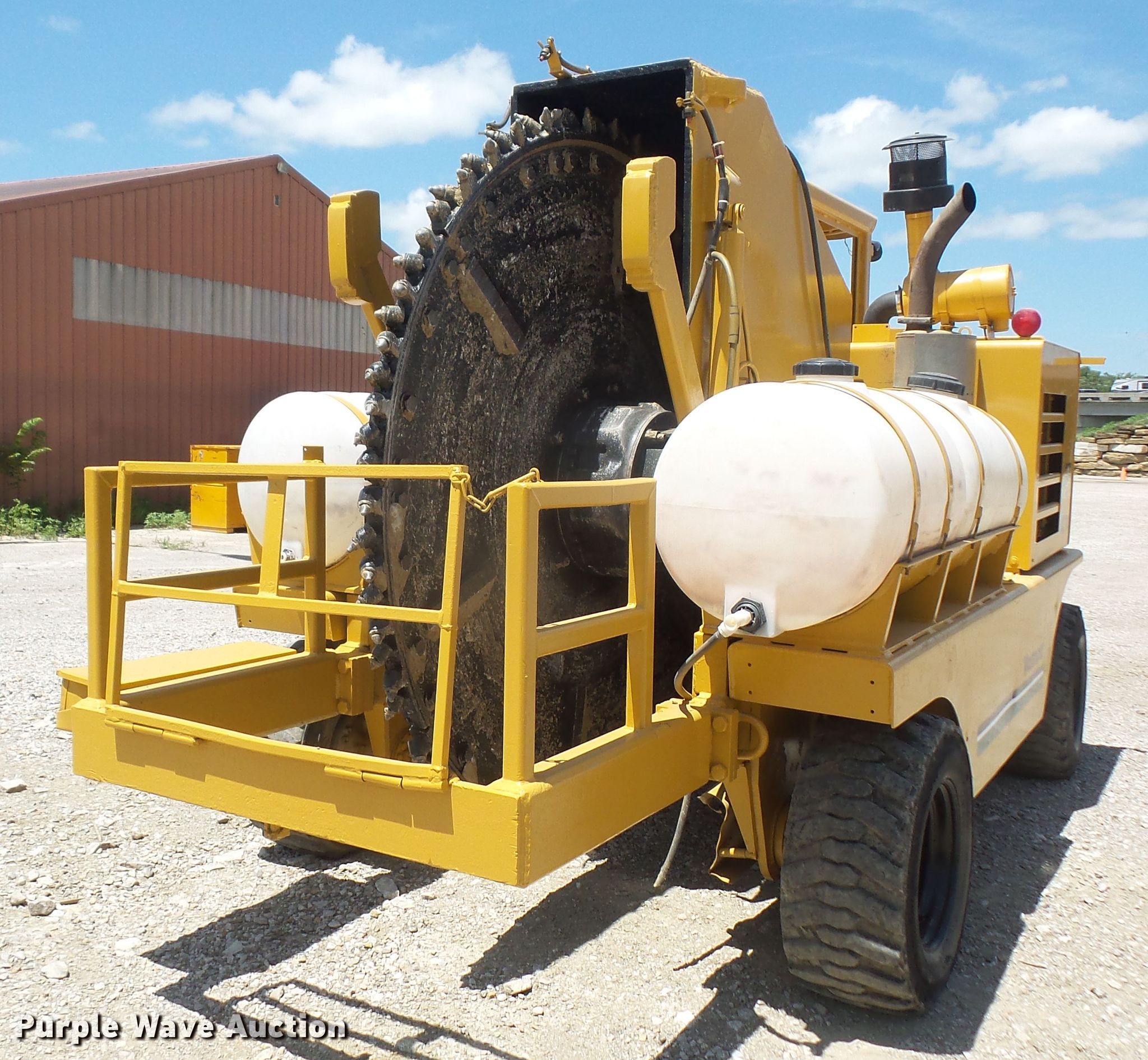 Purple Wave is selling a used Trencher or Rock Saw in Kansas. This item is a 1987 Vermeer CC90 rock saw with the following: 679 hours on meter, Detroit Diesel 50335001 four cylinder diesel engine, 87 HP, Serial L16025, Two speed hydrostatic transmission, Canopy, 90" diameter rock wheel, 3" cutting width, Rock teeth, 200 gallon water tank, 12 x 16.5 tires, Serial 1VRF122NDH1000152