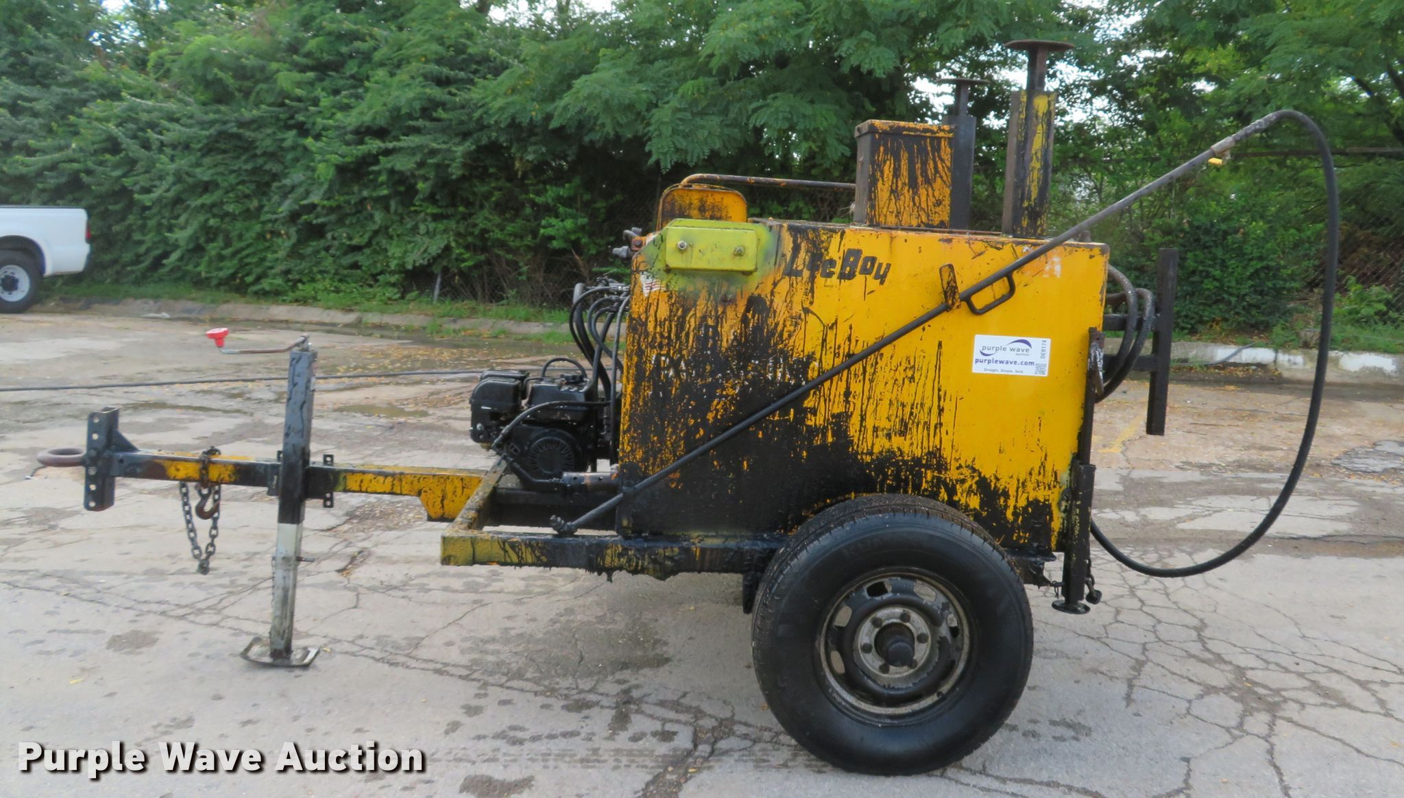Purple Wave is selling a used Asphalt Trailer in Missouri. This item is a Lee Boy L250T asphalt trailer with the following: 11'L x 6'W steel tank, 250 gallon capacity, Single compartment, (2) 1.5" diameter outlet valves, Single cylinder gas engine, Non-operational engine, Pump, Seven gallon flush tank, (2) propane heaters, 25' hose length, Wand, Spring suspension, Steel wheels, ST225/75R15 tires