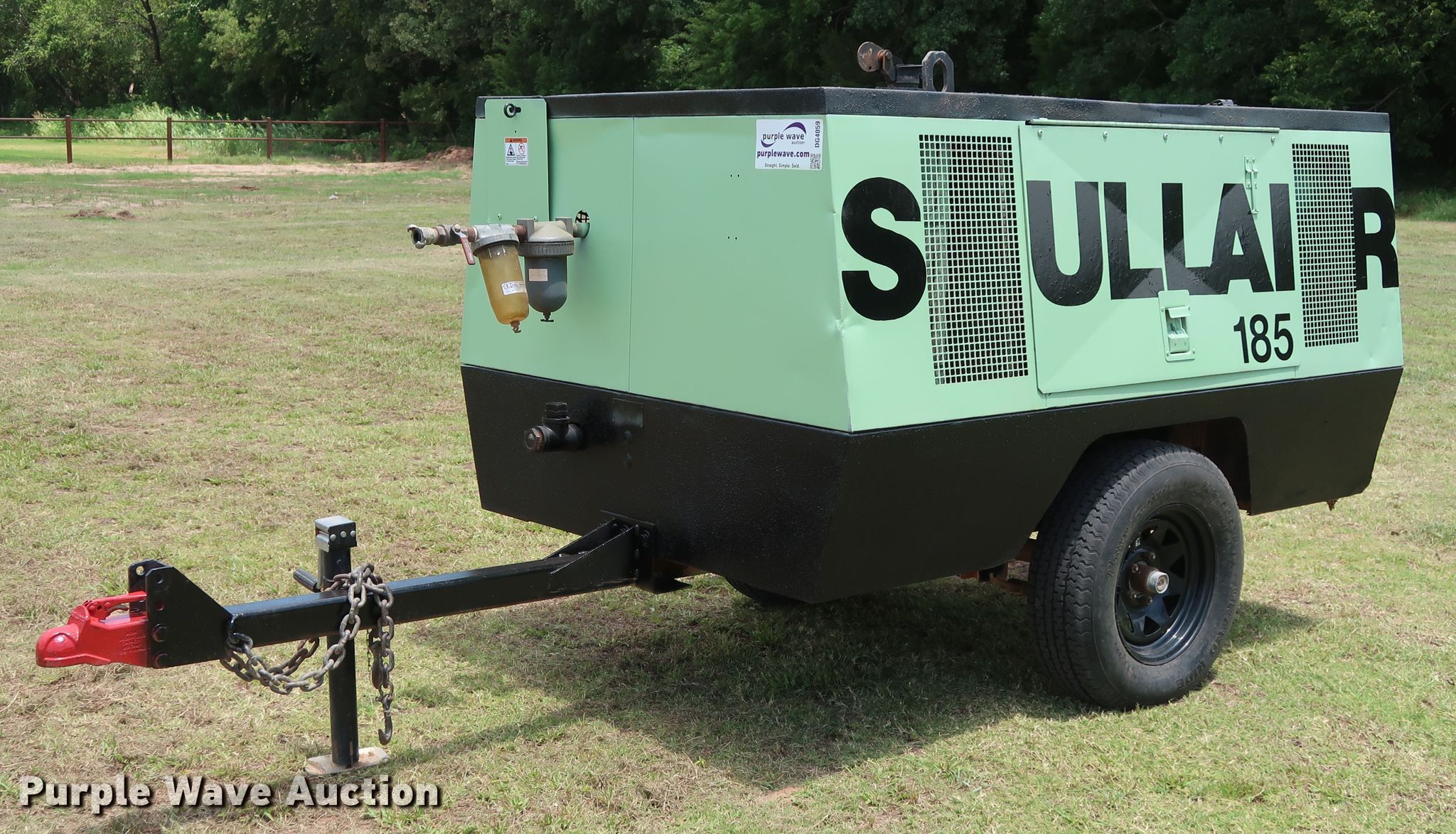 Purple Wave is selling a used Air Compressor in Oklahoma. This item is a 1994 Sullair 185DPOJD air compressor with the following: 3,726 hours on meter, John Deere 4039 3.9L four cylinder diesel engine, Serial CD4039D156719, 185 CFM, 125 psi, 11'L trailer, 2 5/16" ball hitch, ST205/75R14 tires, Serial 004-113977