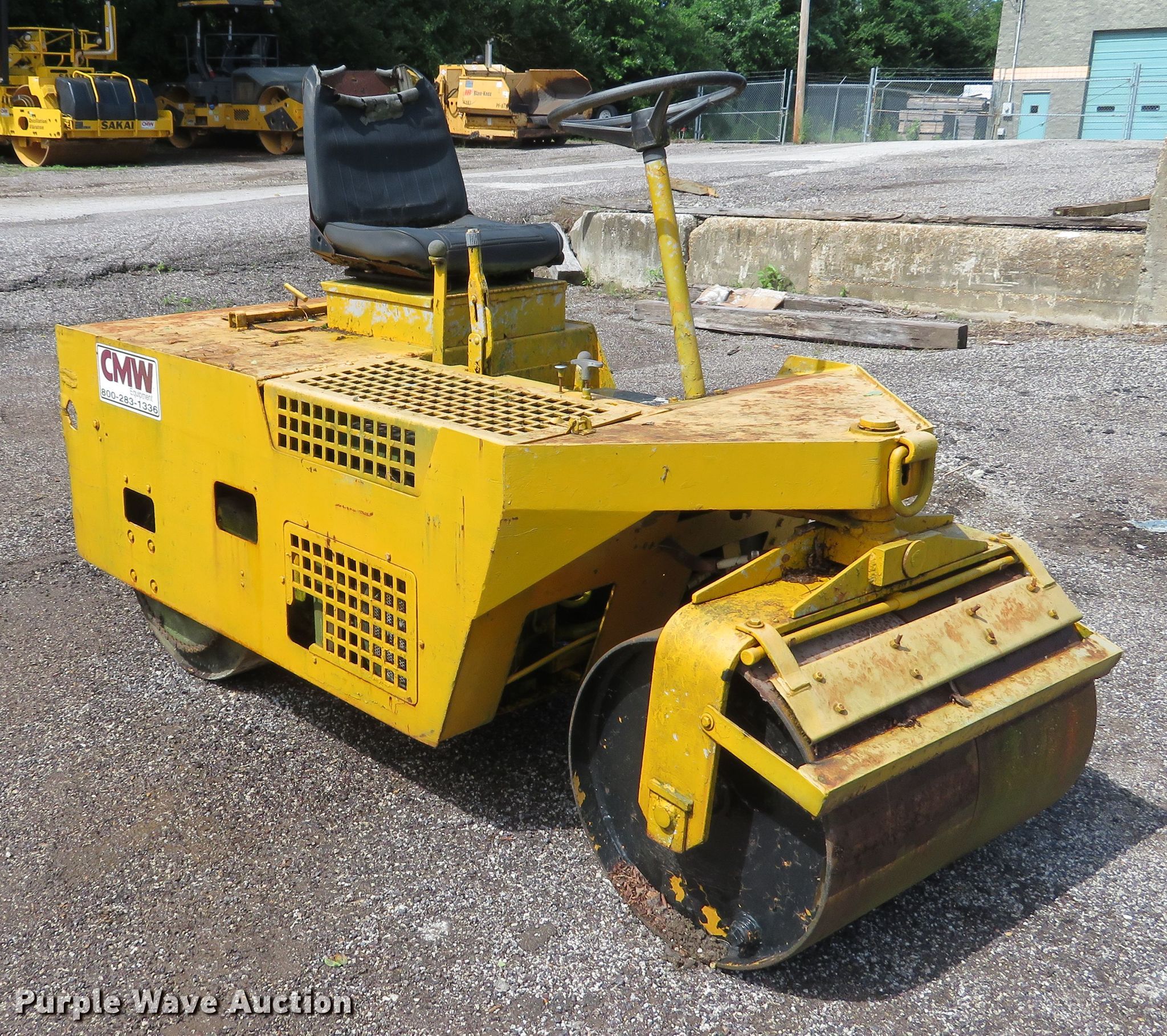 Purple Wave is selling a used Double Drum Roller Compactor in Missouri. This item is a 1993 Super Pac 320 double drum roller with the following: Robin EY40 single cylinder gas engine, Hydrostatic transmission, 28"W x 32" diameter smooth front drum, 19"W x 24" diameter smooth rear drum, Front and rear drum scrapers, Non-operational unit, Serial 4380W, Unit# 6402