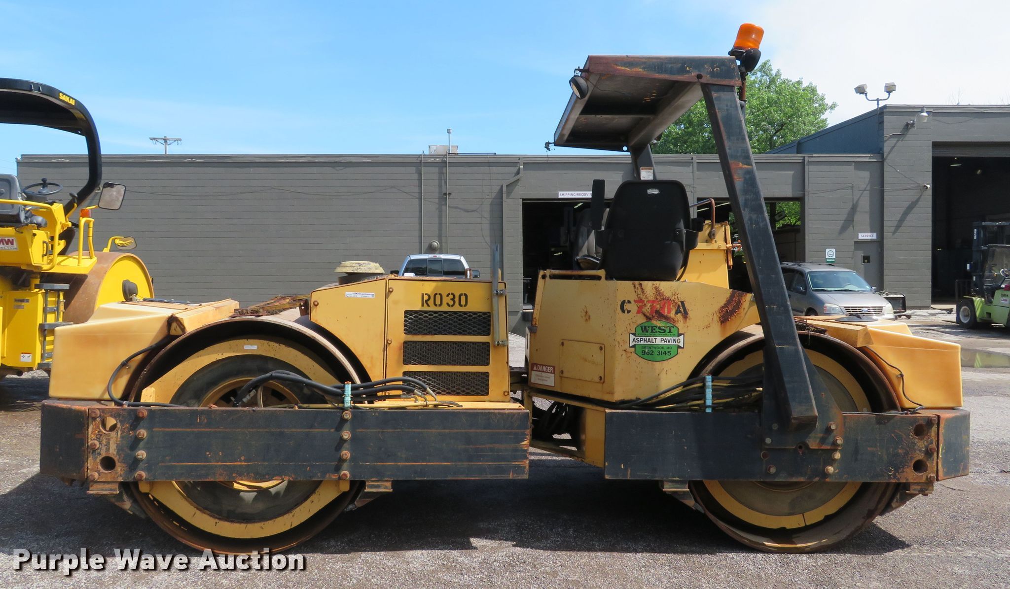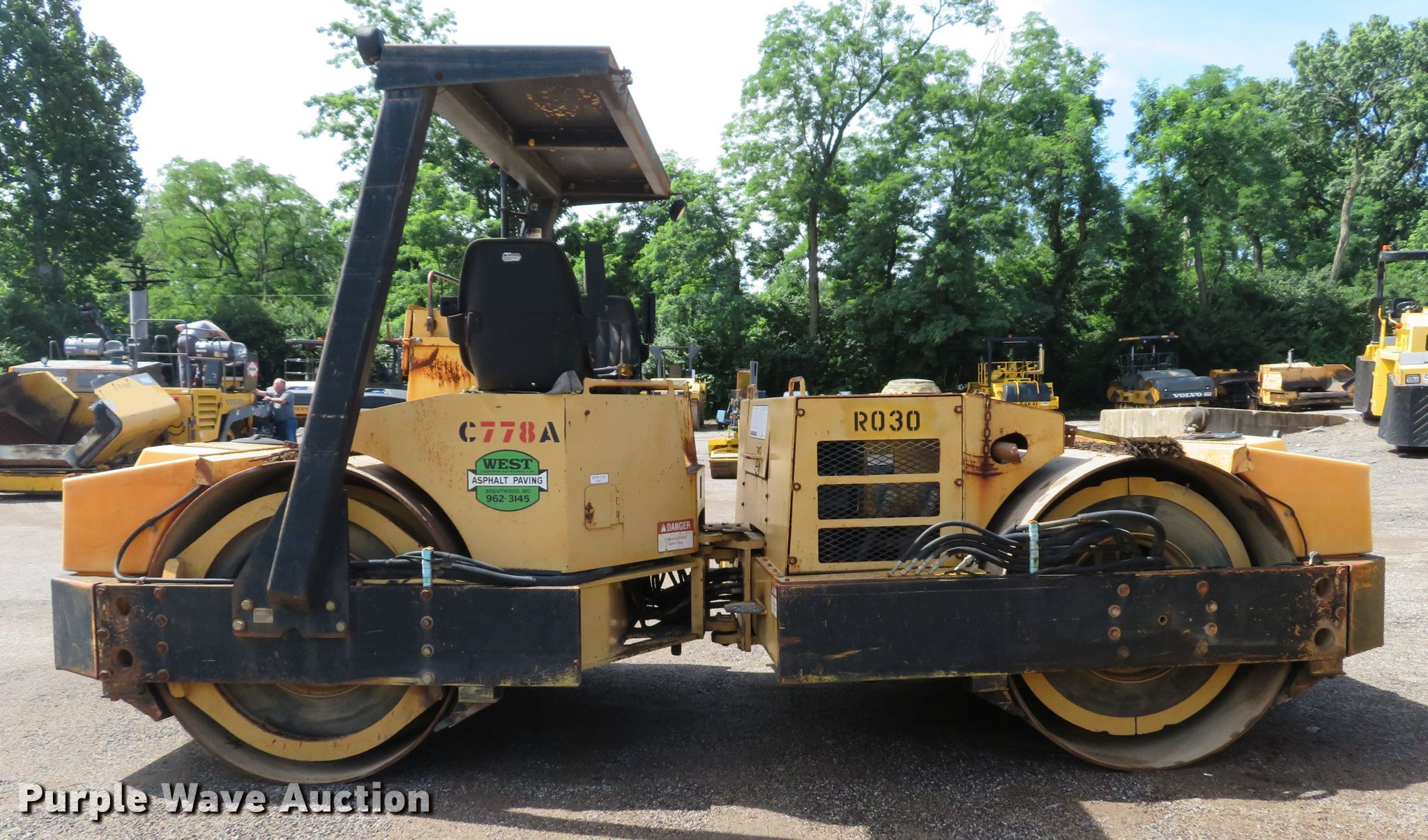 Purple Wave is selling a used Double Drum Roller Compactor in Missouri. This item is a 1996 Hypac C778A double drum vibratory roller with the following: 2,518 hours on meter, Cummins 4B3.9 four cylinder diesel engine, 130 HP, Hydrostatic transmission, OROPS, Vandal cover, 78"W x 48" diameter smooth drums, Dual two speed vibratory system, Independent drum controls, Front and rear drum scrapers, Front and rear water application, Dual propel system, Serial A215C1585T, Unit# 7203