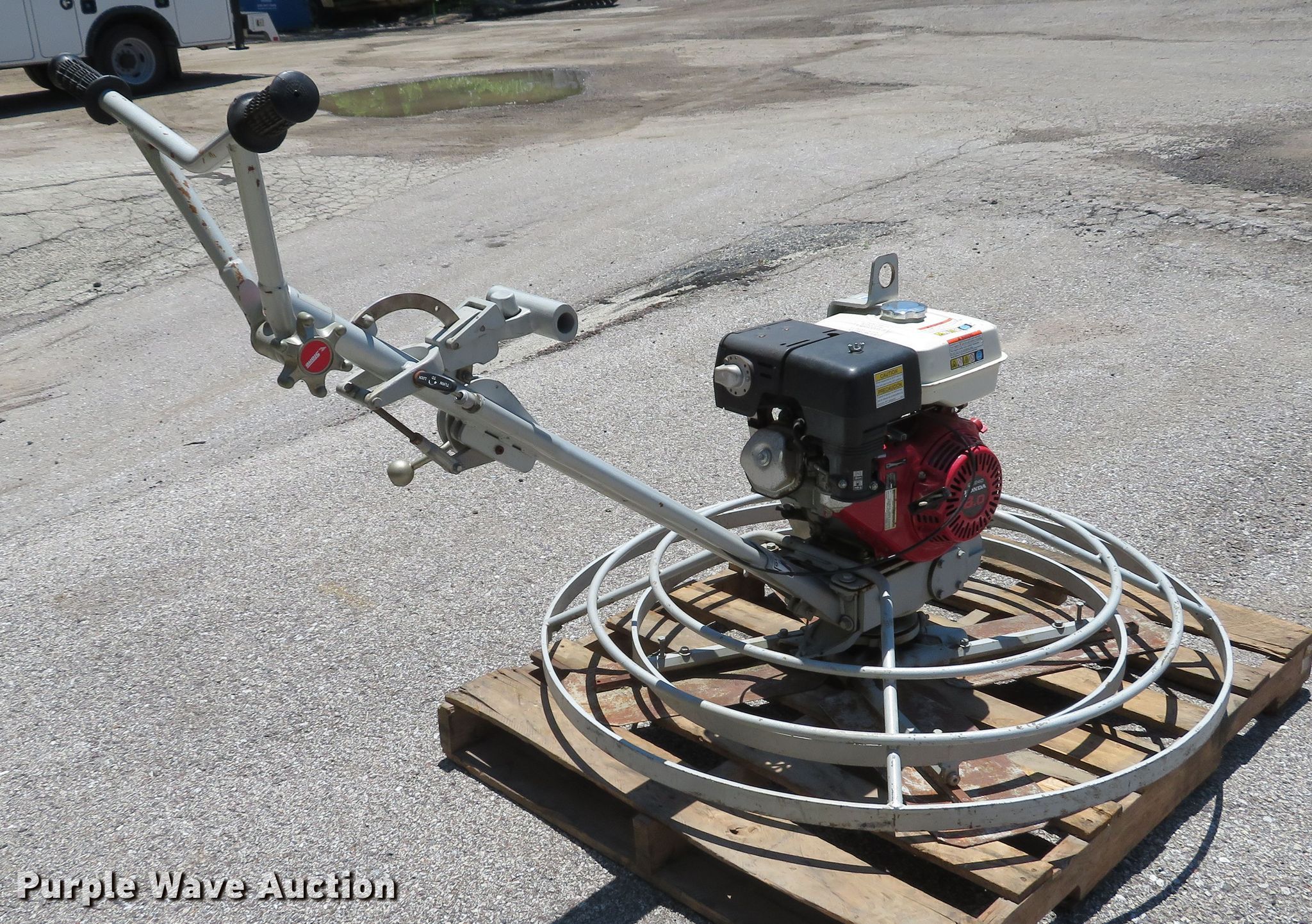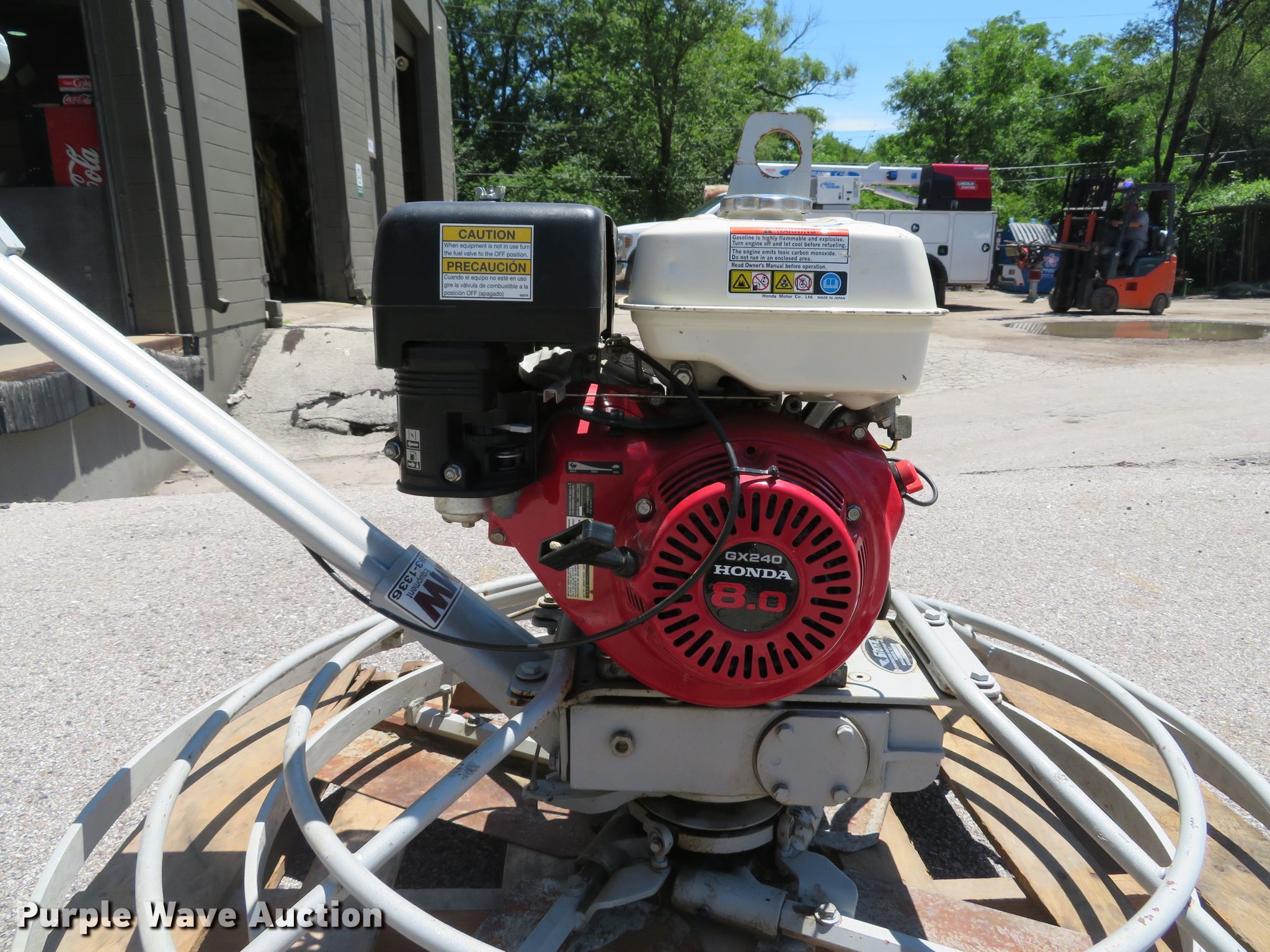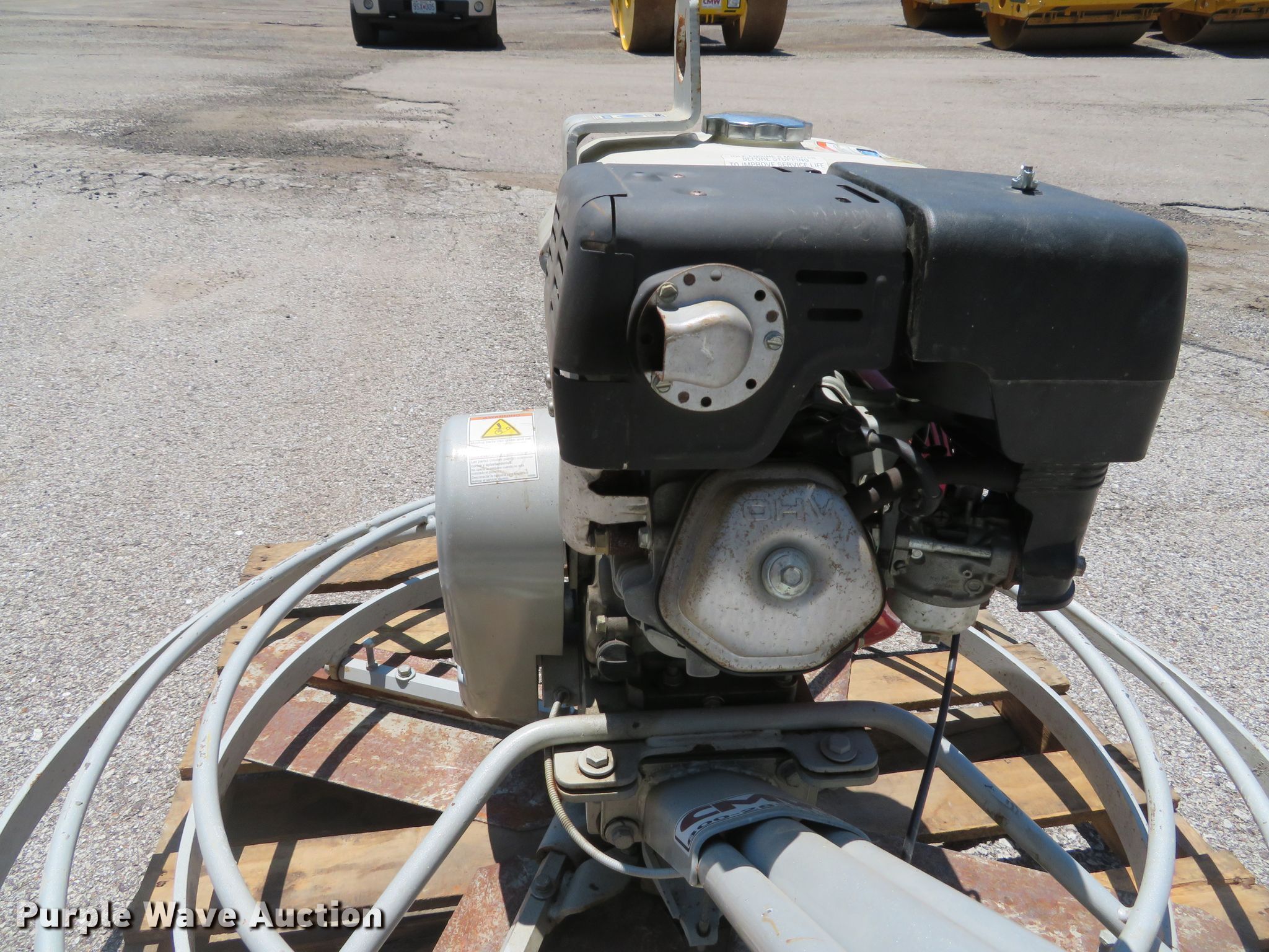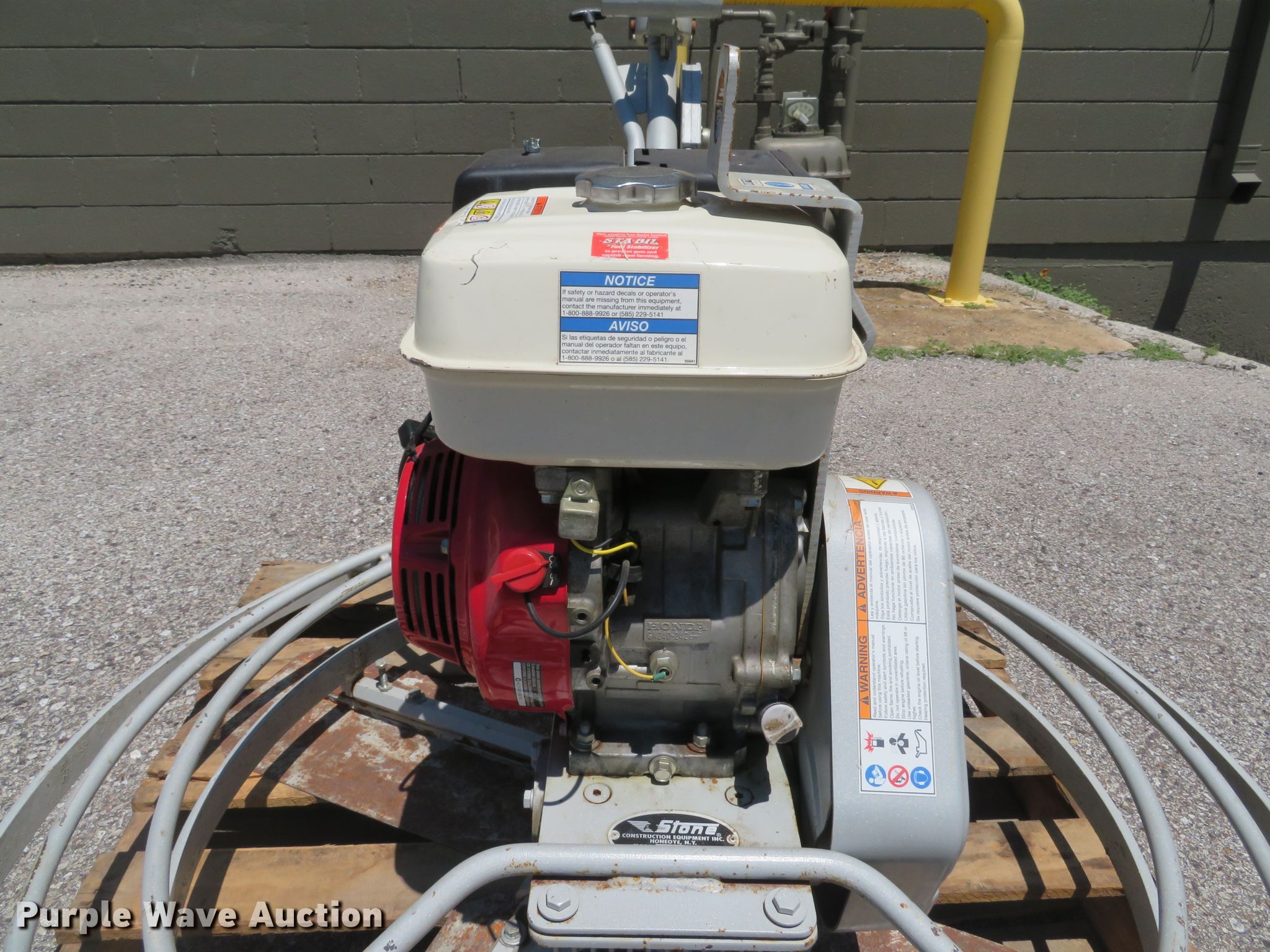 Purple Wave is selling a used Concrete Equip. or Acces. in Missouri. This item is a Stone CF464 power trowel with the following: Honda GX240 single cylinder gas engine, 8 HP, 46" diameter, (4) blades, Unit will only run on choke, Serial 372006275, Unit# 5494