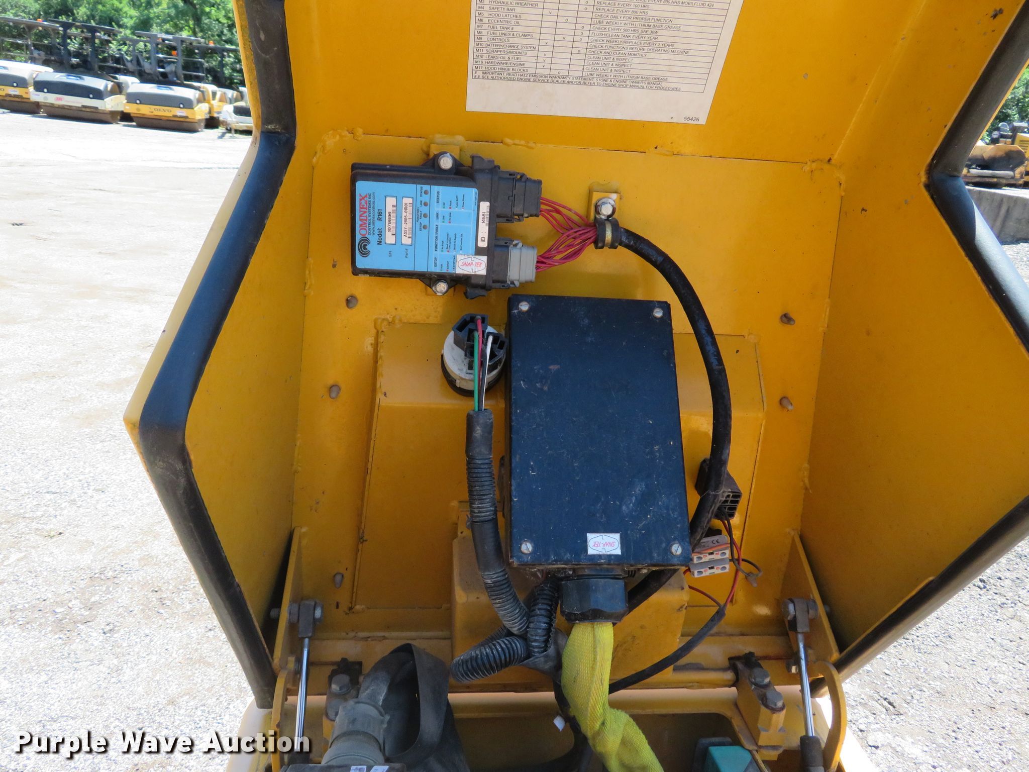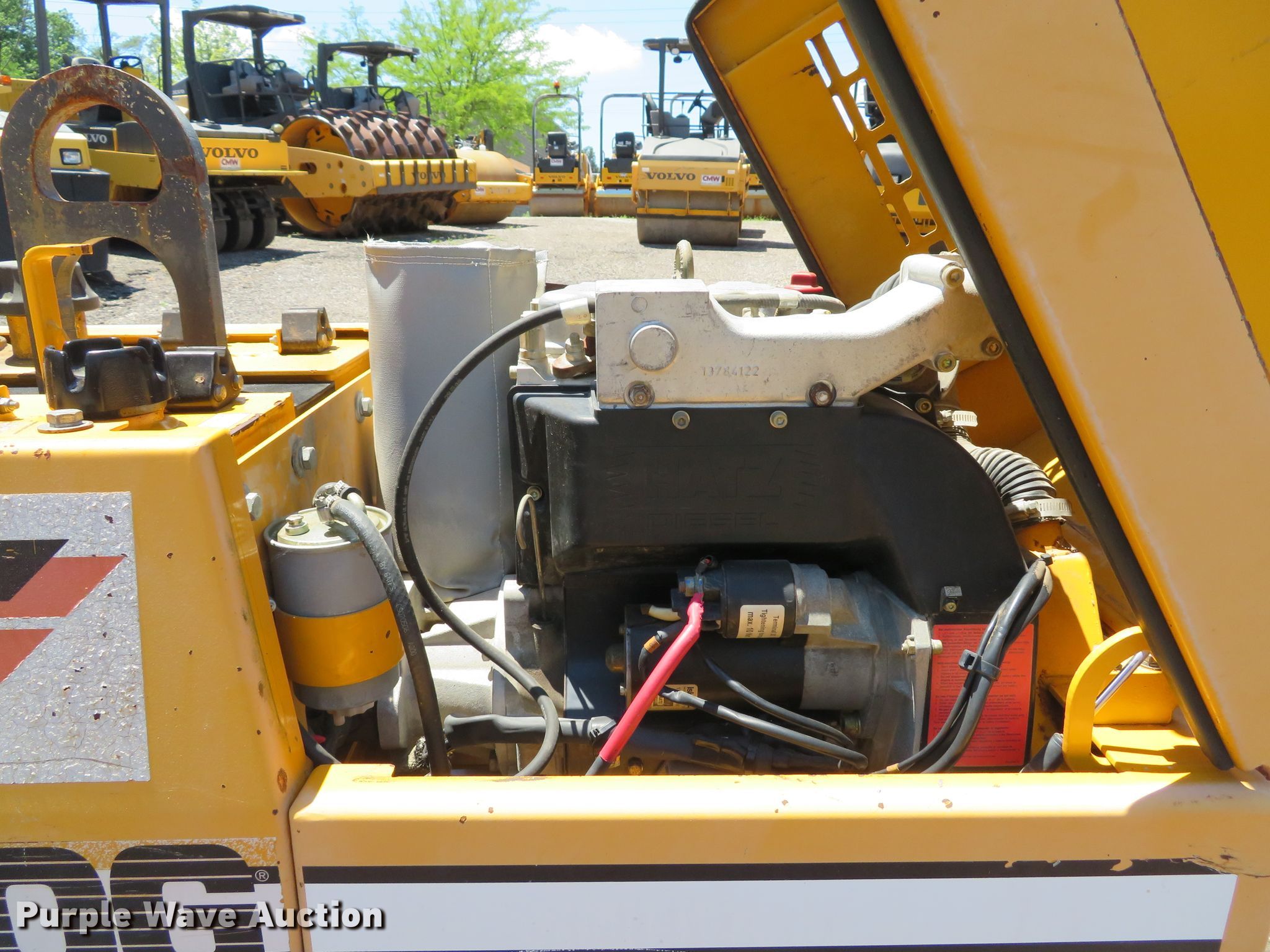Purple Wave is selling a used Walk Behind Compactor in Missouri. This item is a 2006 Stone TR34R vibratory trench compactor with the following: 36 hours on meter, Hatz two cylinder diesel engine, 20 HP, Hydrostatic transmission, 34"W x 19.5" diameter padfoot drums, Dual vibratory system, Front and rear drum scrapers, Dual propel system, Remote control, Serial 442006074, Unit# 5485