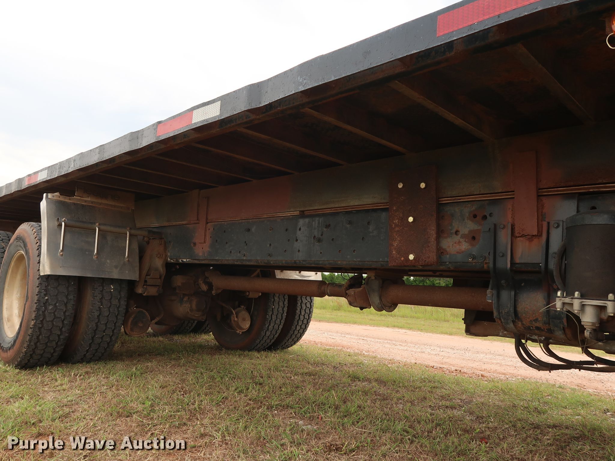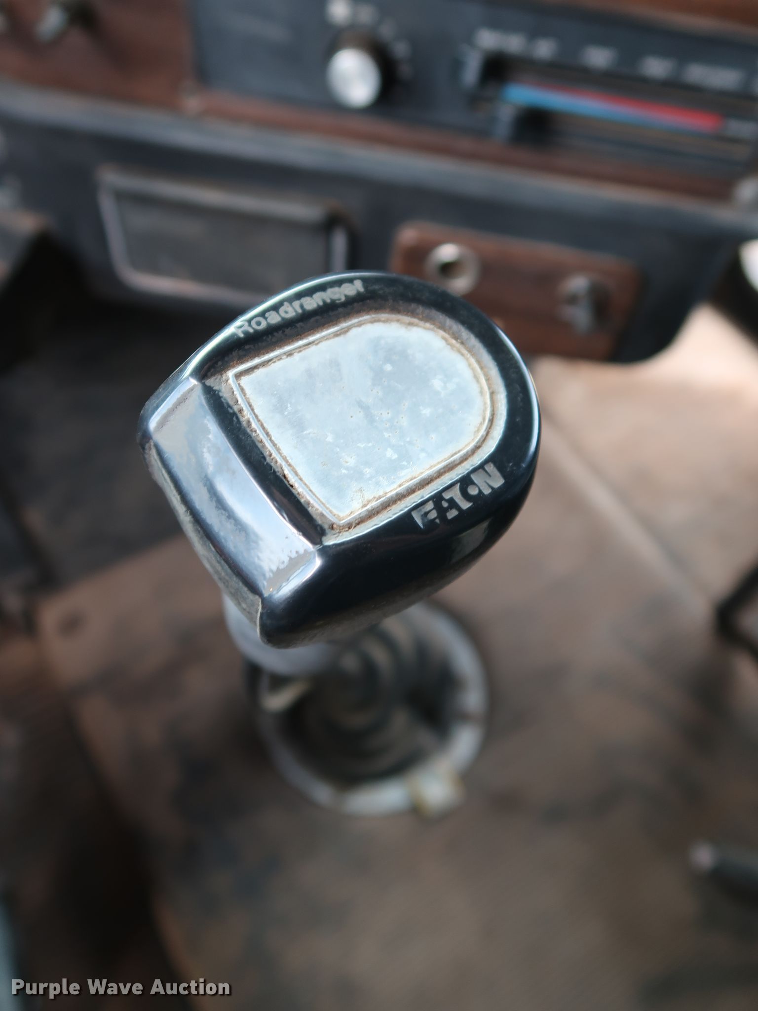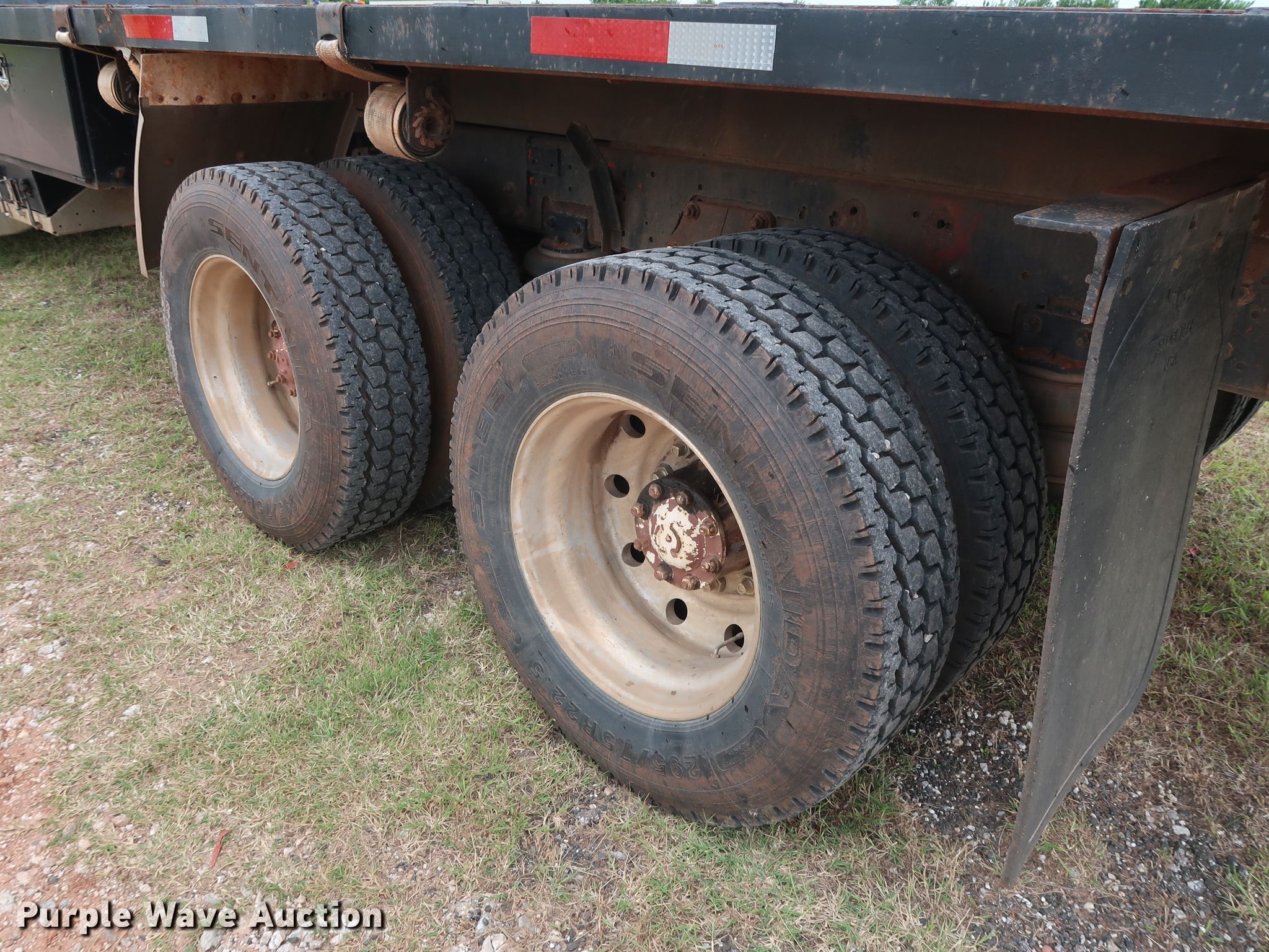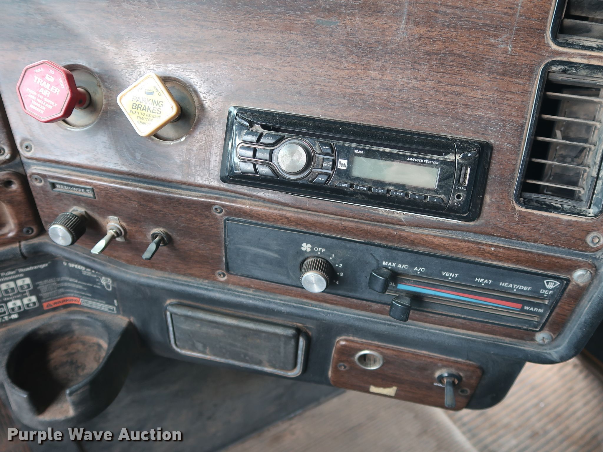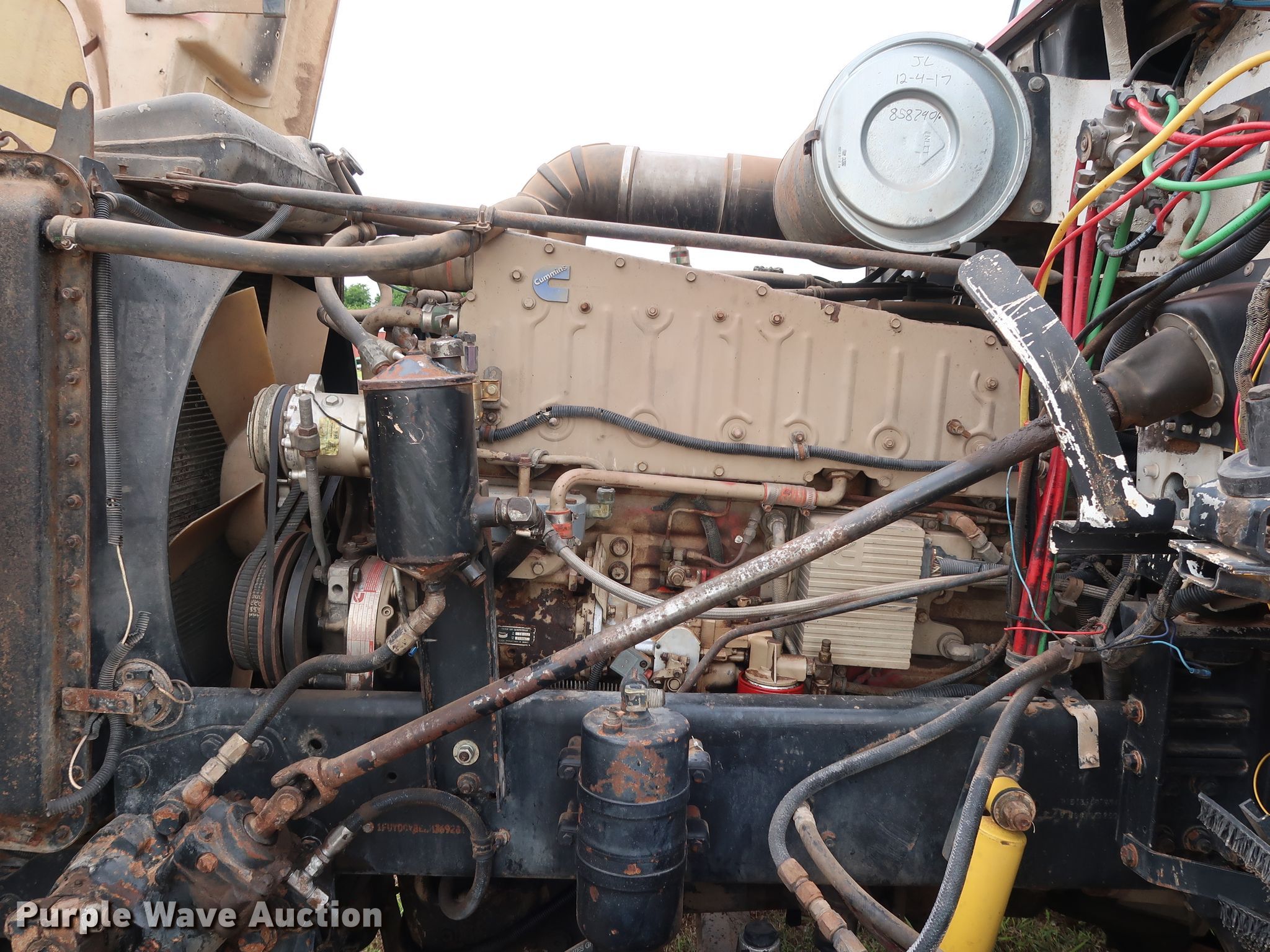 Purple Wave is selling a used Flat Bed Truck in Oklahoma. This item is a 1990 Freightliner FLD flatbed truck with the following: 859,636 miles on odometer, Cummins 14.0L L6 diesel engine, 350 HP, Eaton Fuller Road Ranger nine speed manual transmission, Inter-axle differential lock, Tandem axle, AC and heat, Power windows, Heated mirrors, Brake controller, 22'L x 96"W flatbed, 264" wheelbase, Air suspension, Air brakes, 295/75R22.5 front tires, 11R22.5 rear tires