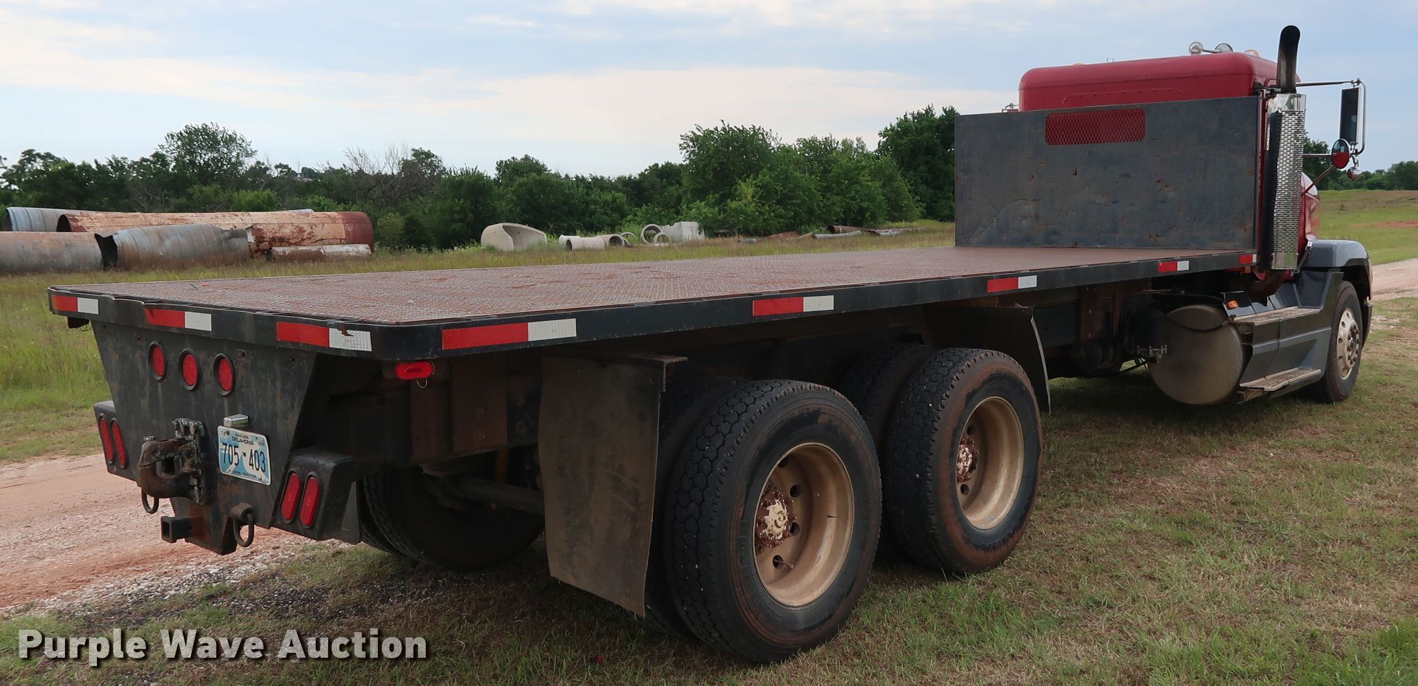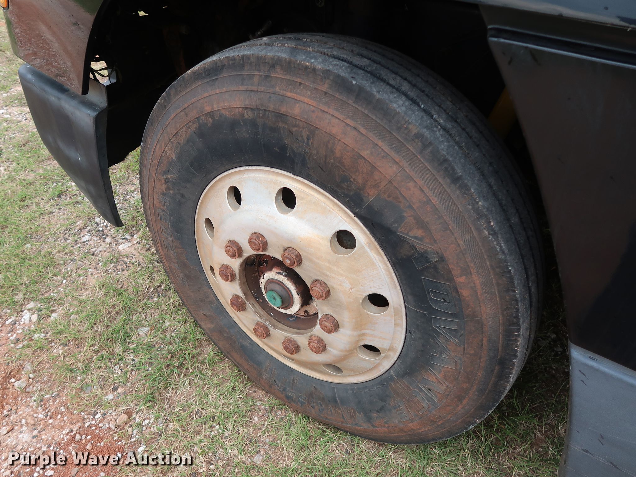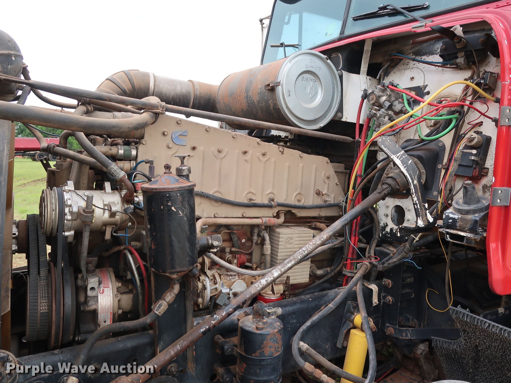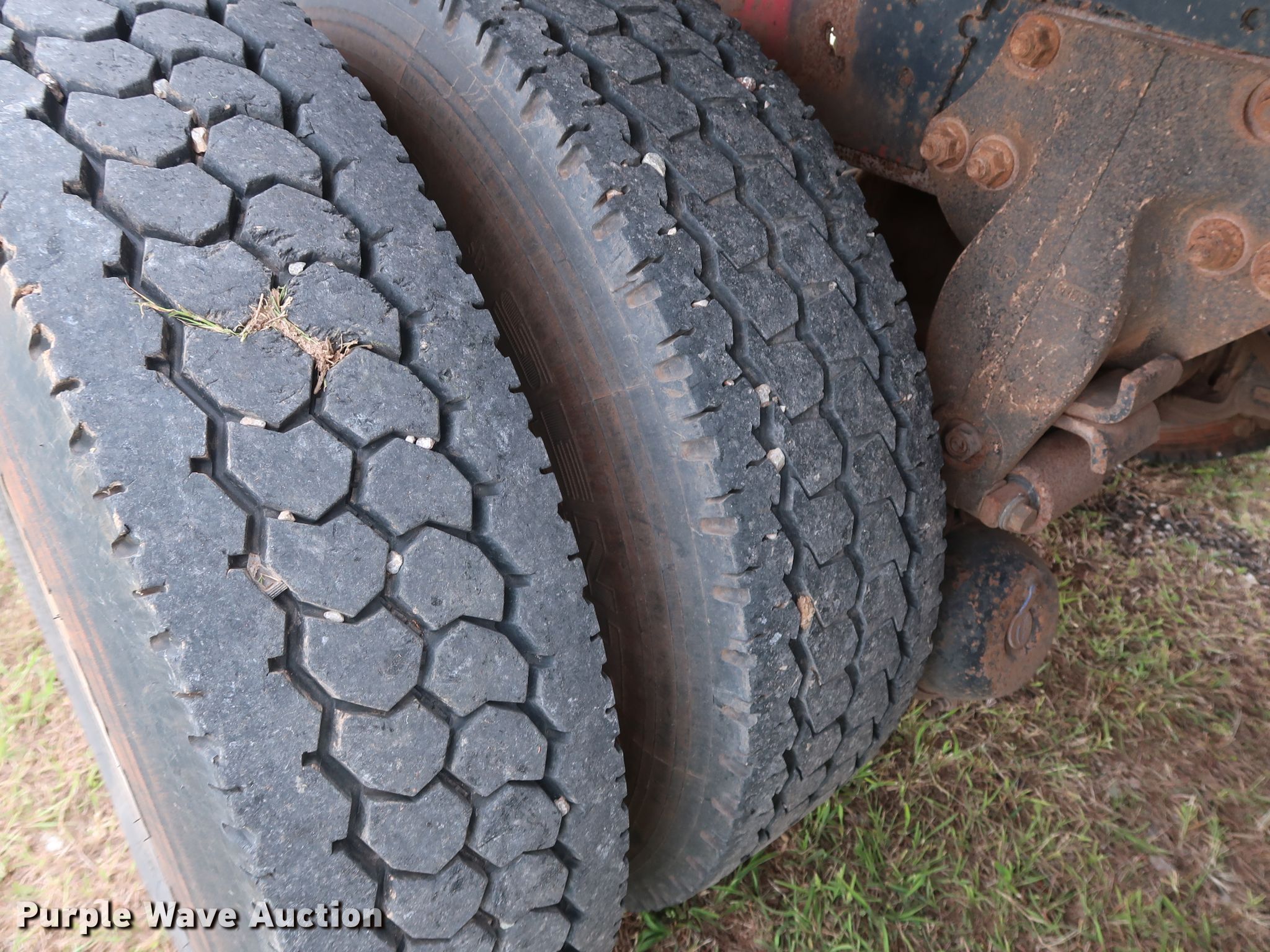 Purple Wave is selling a used Flat Bed Truck in Oklahoma. This item is a 1990 Freightliner FLD flatbed truck with the following: 859,636 miles on odometer, Cummins 14.0L L6 diesel engine, 350 HP, Eaton Fuller Road Ranger nine speed manual transmission, Inter-axle differential lock, Tandem axle, AC and heat, Power windows, Heated mirrors, Brake controller, 22'L x 96"W flatbed, 264" wheelbase, Air suspension, Air brakes, 295/75R22.5 front tires, 11R22.5 rear tires