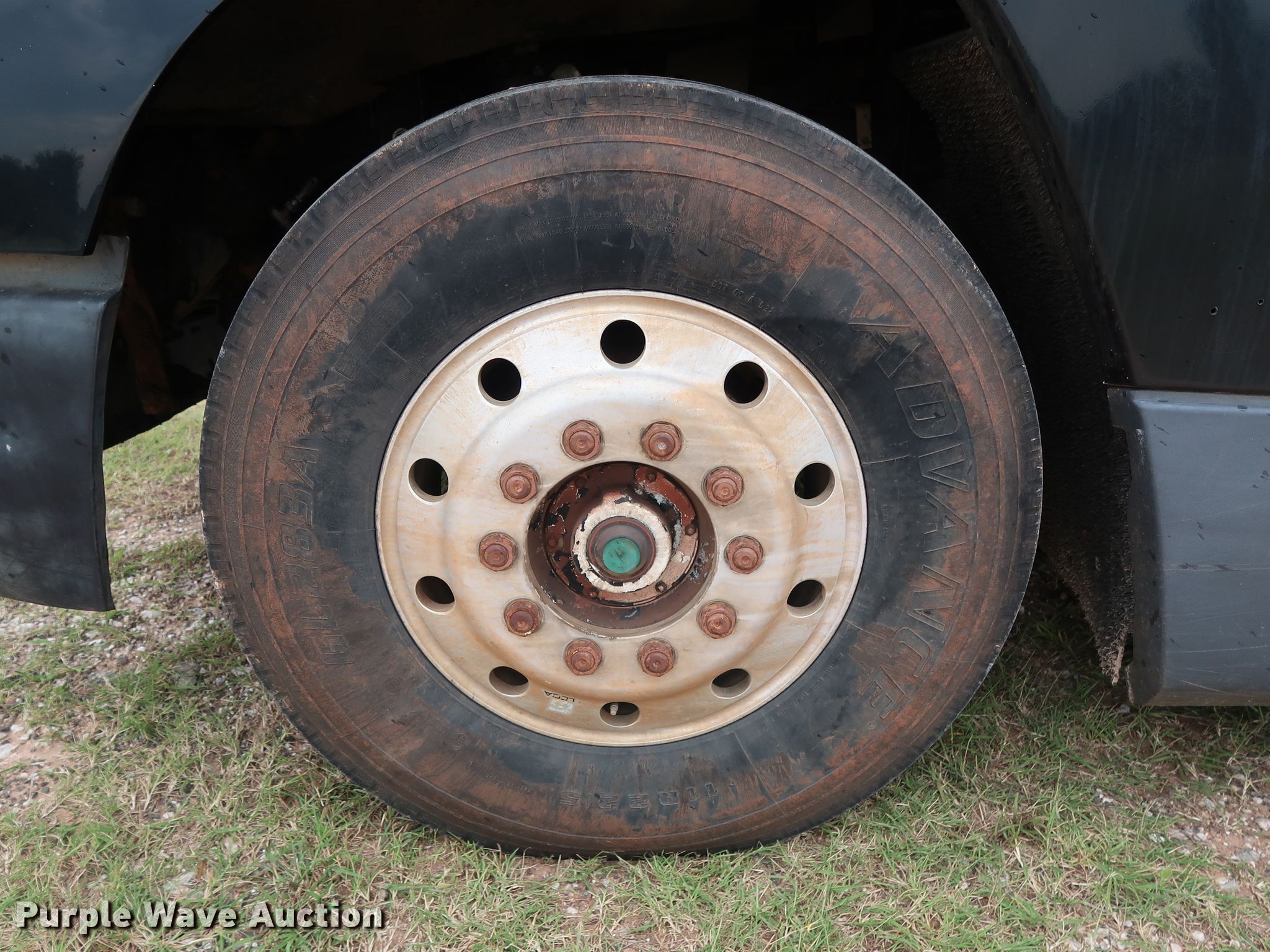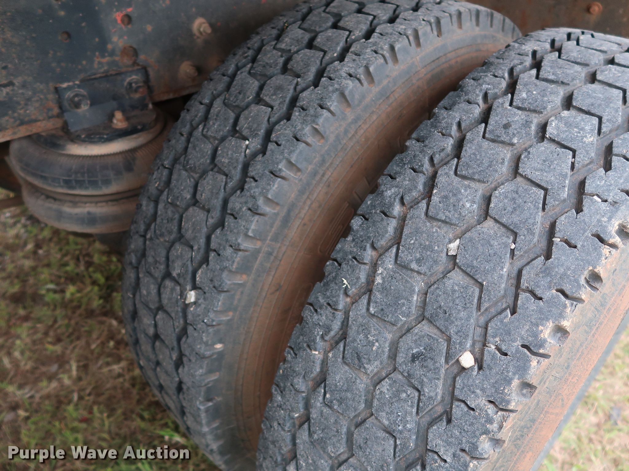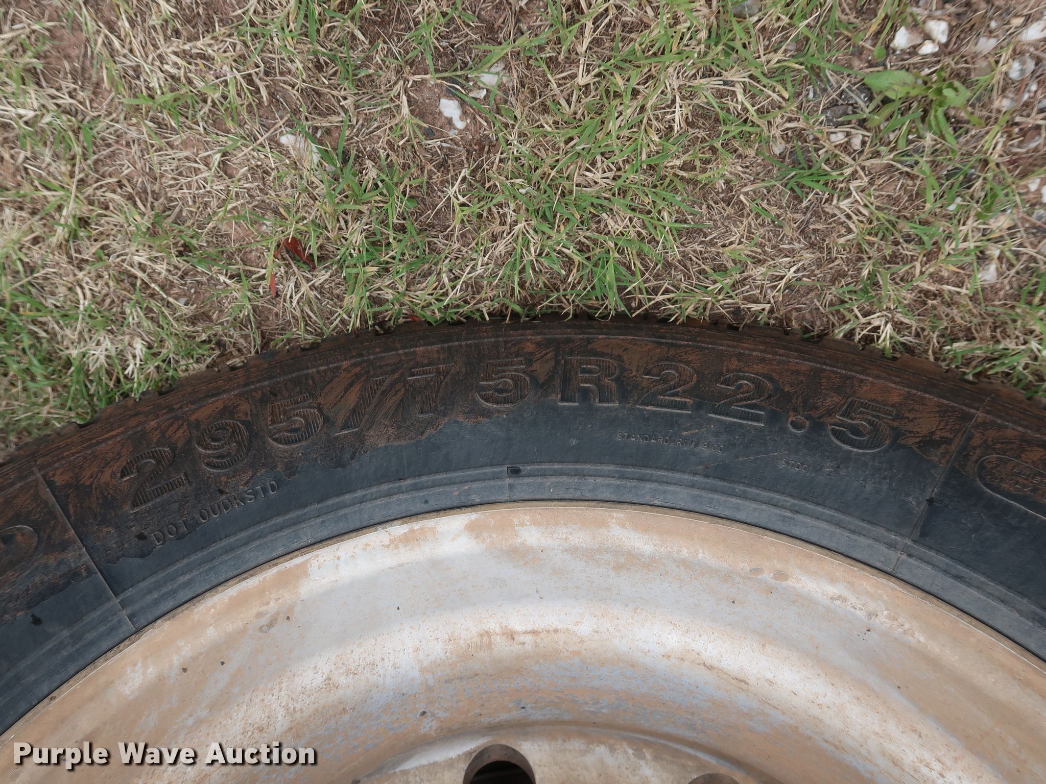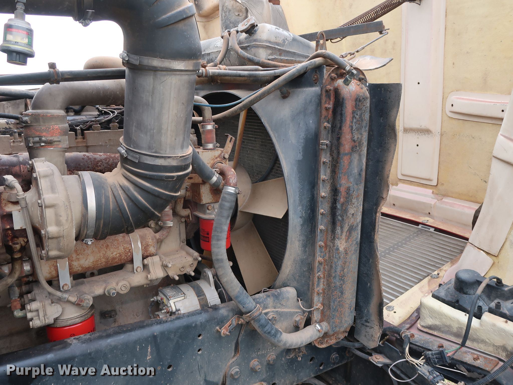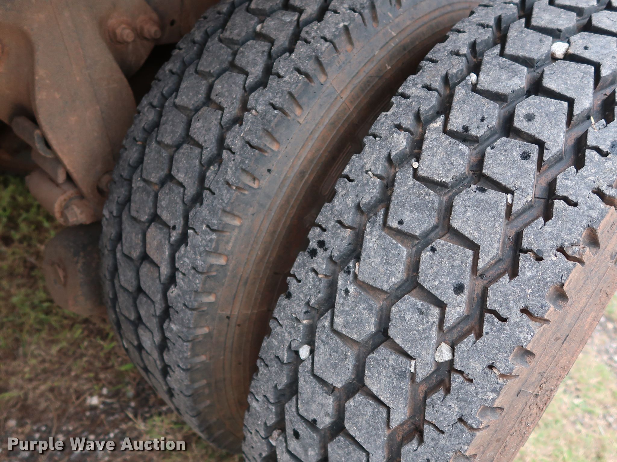 Purple Wave is selling a used Flat Bed Truck in Oklahoma. This item is a 1990 Freightliner FLD flatbed truck with the following: 859,636 miles on odometer, Cummins 14.0L L6 diesel engine, 350 HP, Eaton Fuller Road Ranger nine speed manual transmission, Inter-axle differential lock, Tandem axle, AC and heat, Power windows, Heated mirrors, Brake controller, 22'L x 96"W flatbed, 264" wheelbase, Air suspension, Air brakes, 295/75R22.5 front tires, 11R22.5 rear tires