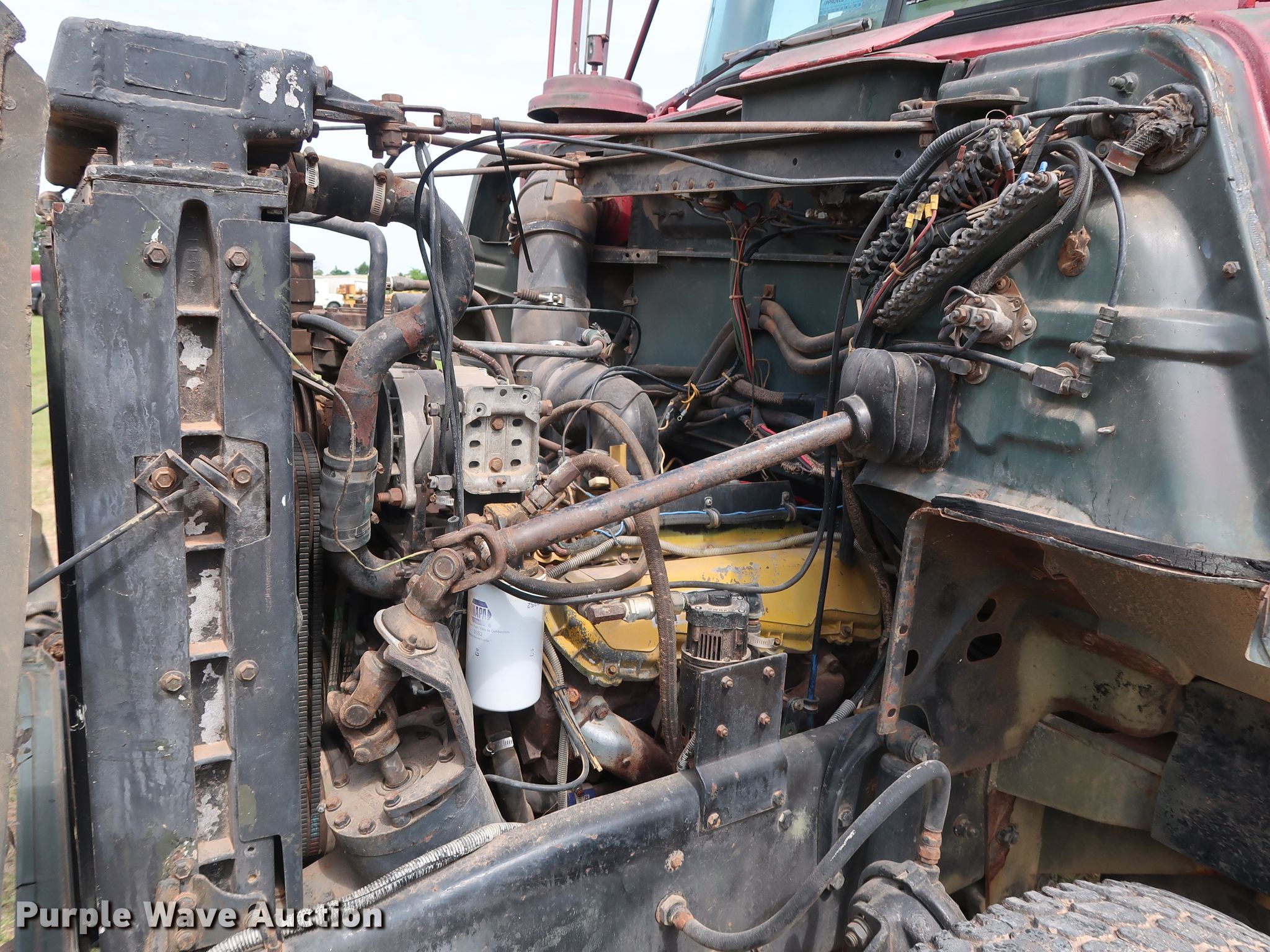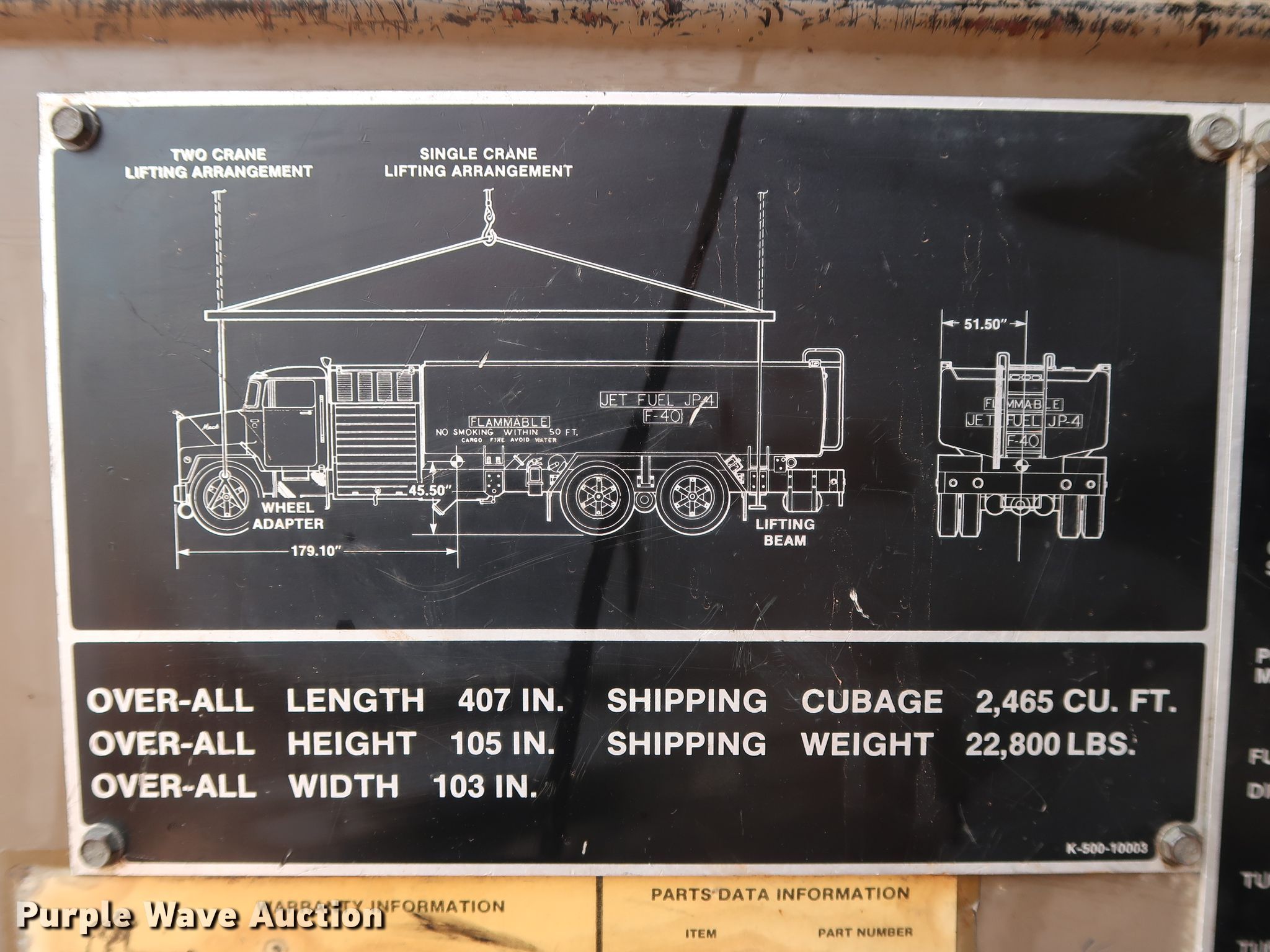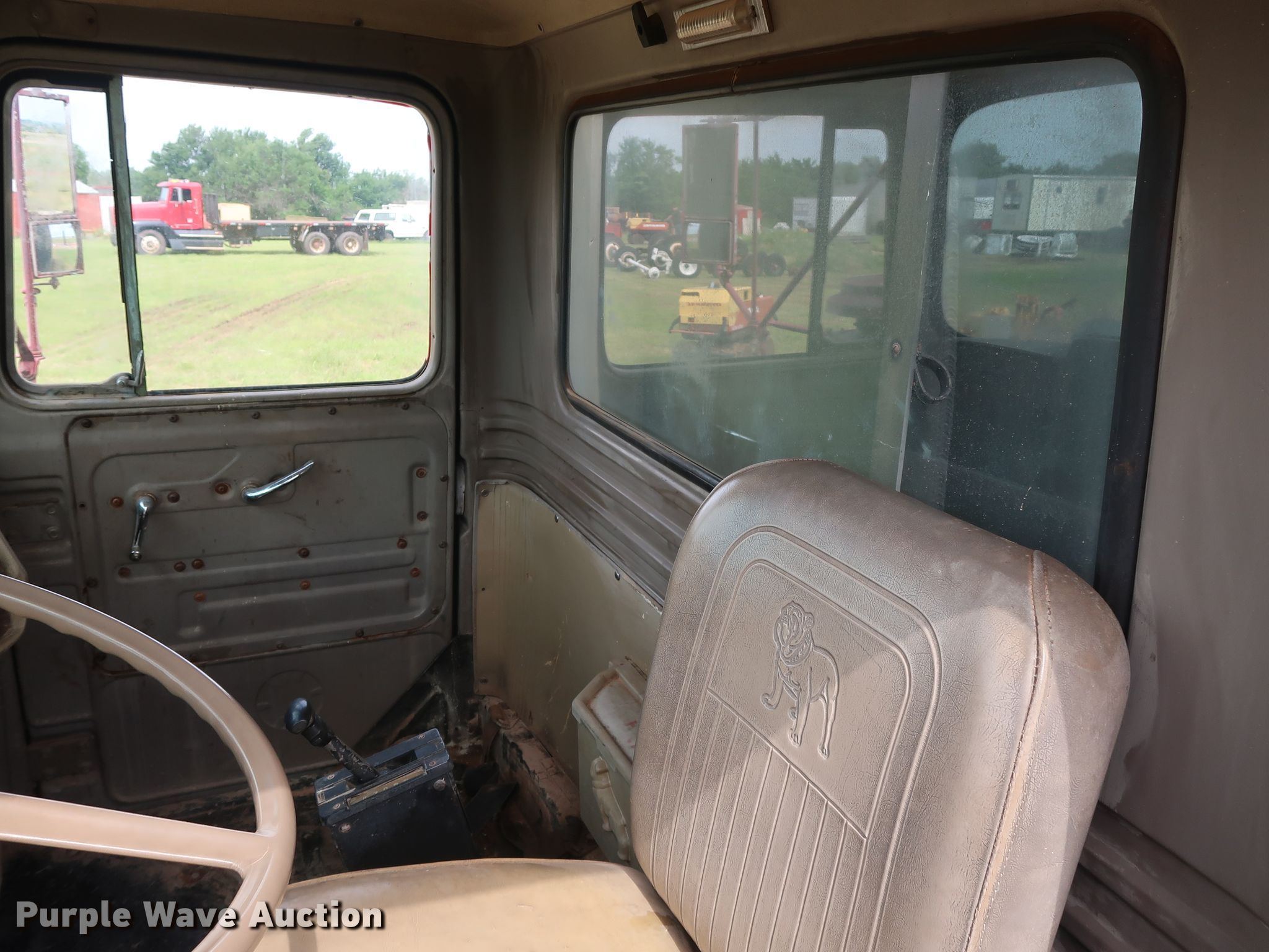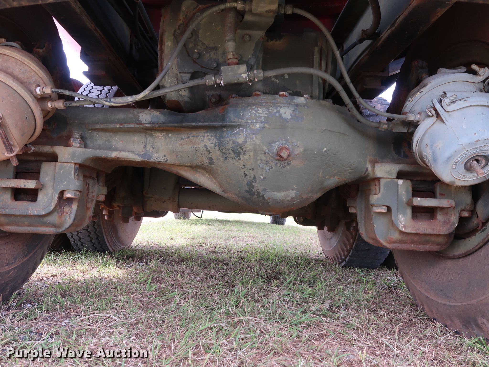 Purple Wave is selling a used Tank Truck or Water Truck in Oklahoma. This item is a 1982 Mack DM492S tank truck with the following: 111,463 miles on odometer, Caterpillar 3208 10.4L V8 diesel engine, 210 HP, Automatic transmission, TAndem axle, Heat, PTO, Kovatch K-500 tank, 20'L, 5,000 gallon capacity, Honda GX240 gas engine, Hale pump, Rear spray bar, Side discharge, Serial KM-221, 258" wheelbase, Camelback suspension, Air brakes, 11.00-20 tires, GVWR 58,000 lbs