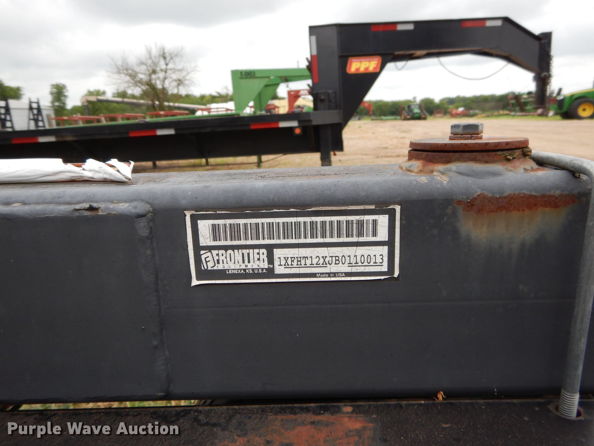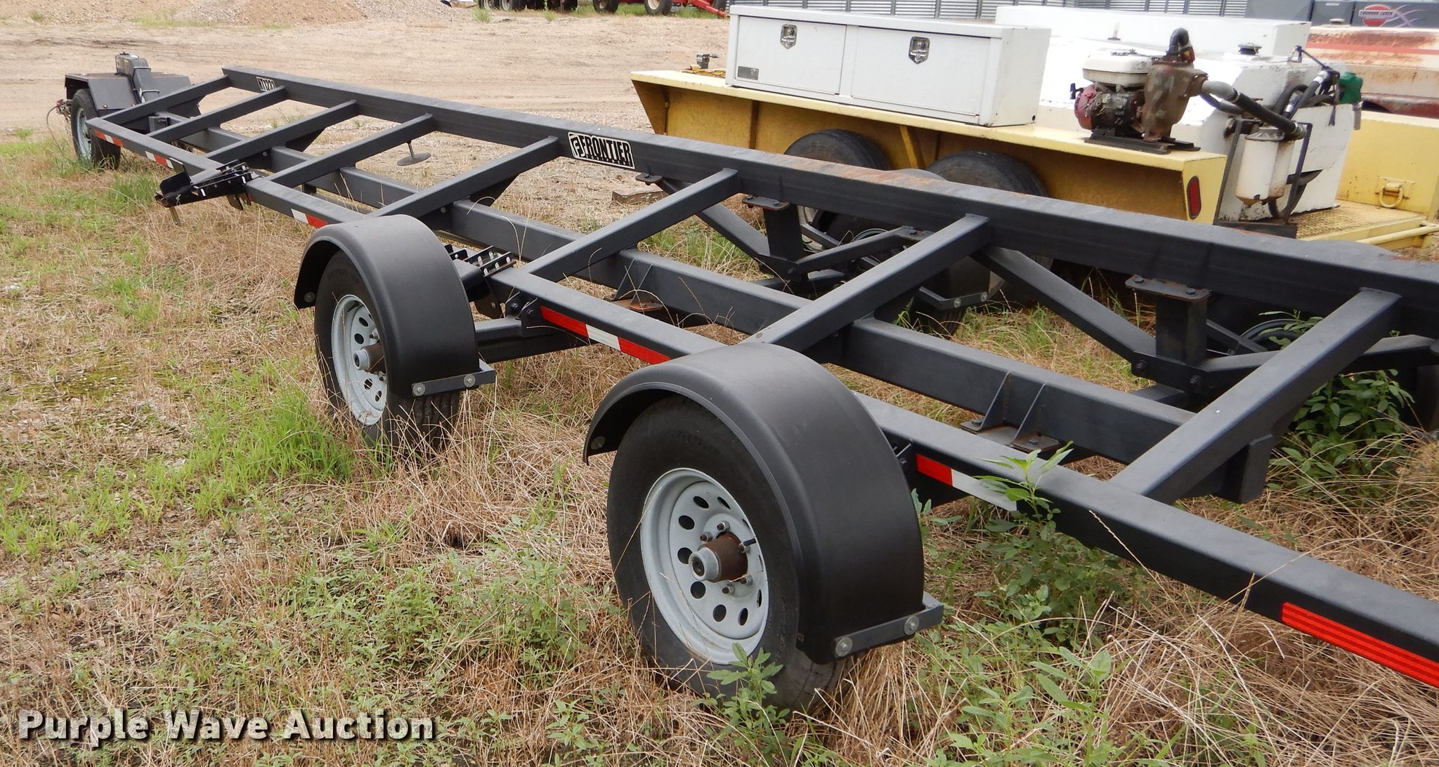 2011 Frontier HT1232 header trailer. 32'L, 2 5/16" ball hitch, Torsion flex suspension, Electric brakes, Single axle, 225/75R15 tires, GVWR 16,800 lbs, GAWR 5,600 lbs. Transfer of ownership documentation will be a bill of sale. 1XFHT12XJB0110013. PPF LLC - Open inspection Aug. 13. 700 FM 1335. Cooper, TX 75432