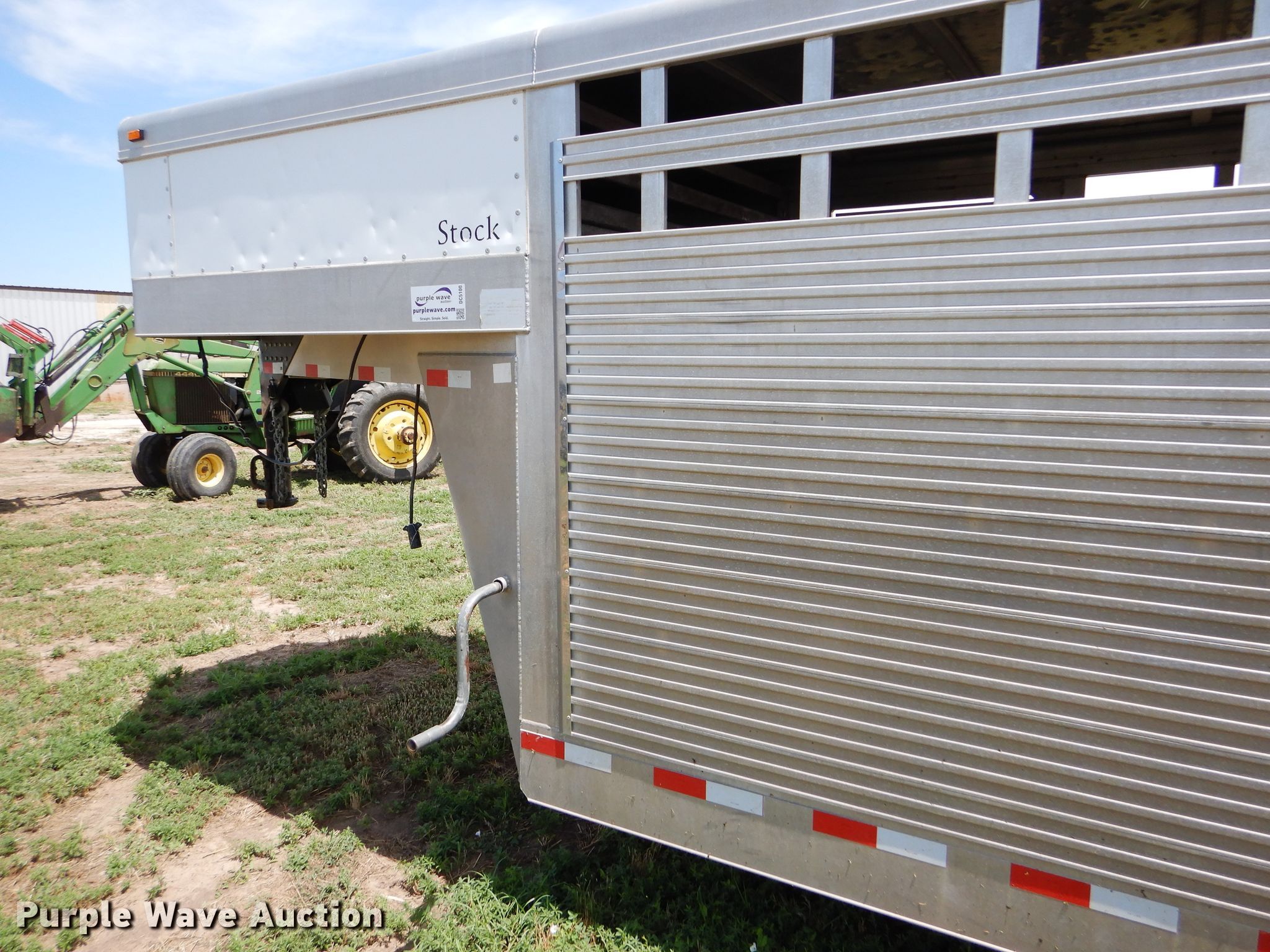 Purple Wave is selling a used Livestock Trailer in Kansas. This item is a 2005 Liberty 16X6JJ livestock trailer with the following: 28' overall length, 20'L x 79"W body, Center gate, Ground load, Aluminum construction, Jack stand, Spring suspension, Electric brakes, Tandem axle, Steel wheels, ST235/80R16 tires, GVWR 14,118 lbs, GAWR 6,000 lbs, Hail damage to roof