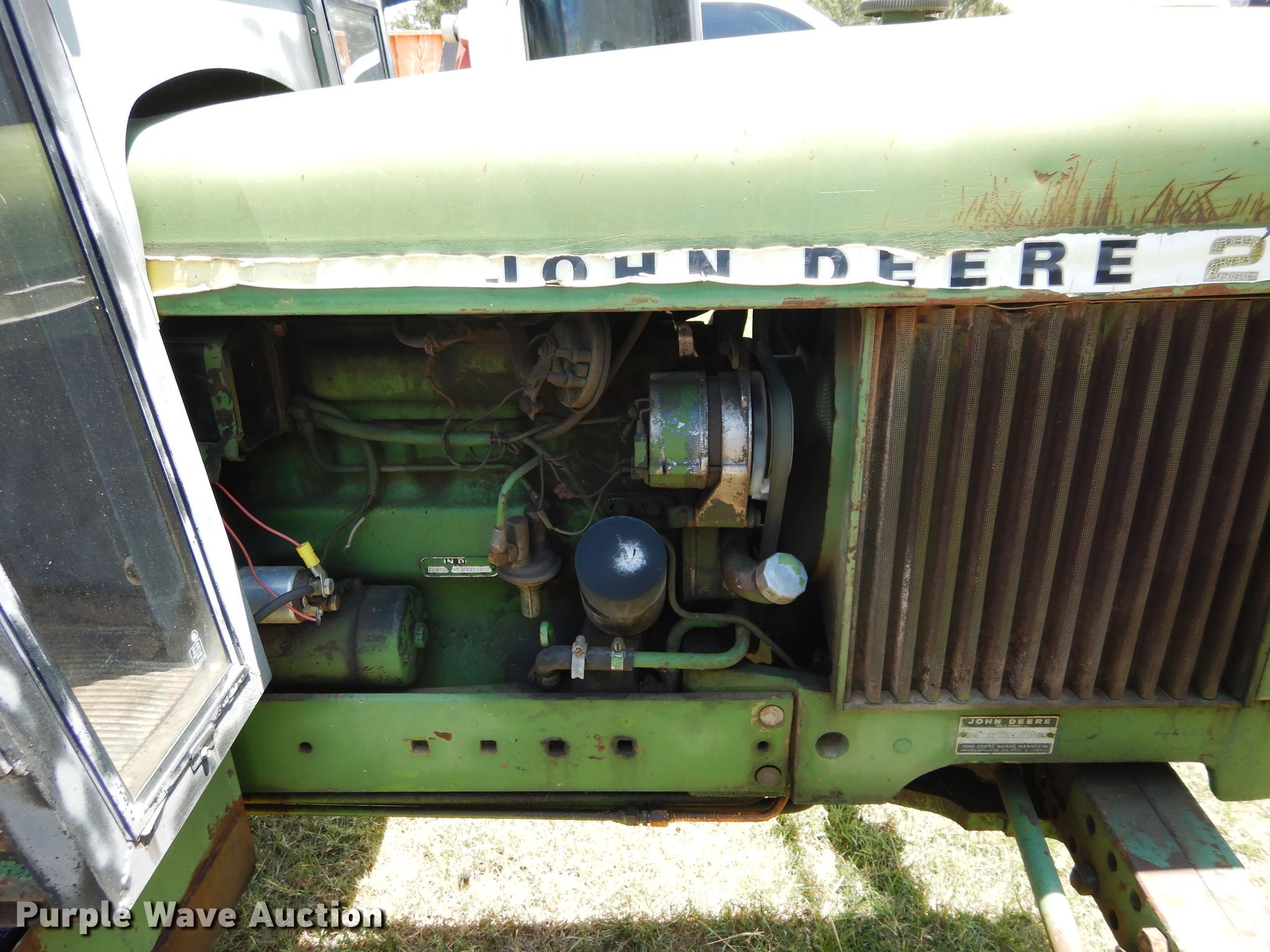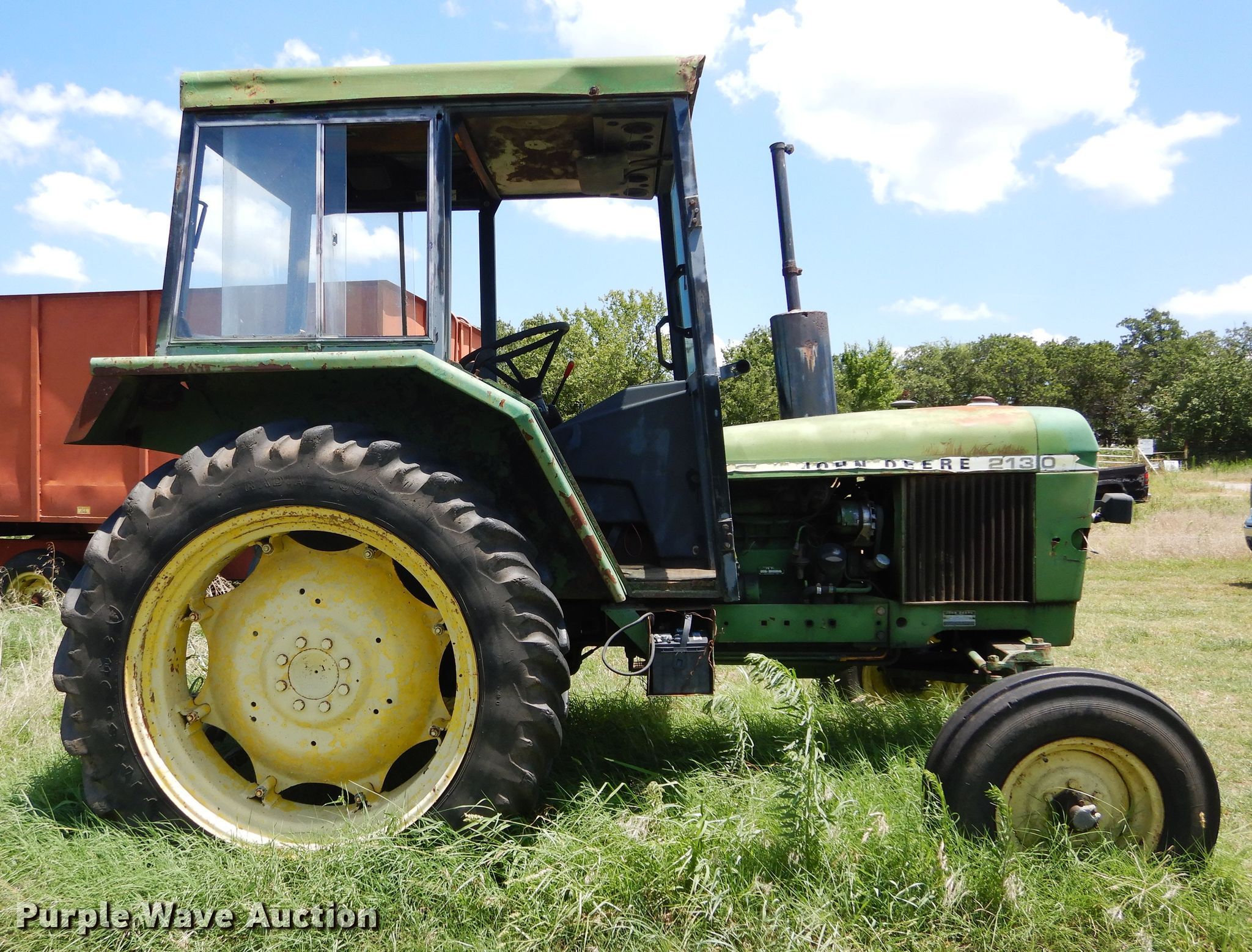Purple Wave is selling a used Tractor in Oklahoma. This item is a 1976 John Deere 2130 tractor with the following: 5,810 hours on meter, 3.9L four cylinder diesel engine, Manual transmission, 3F-1R gears, Three point, 540/1000 PTO, Rear hydraulic remote set, 7.50-16 front tires, 13.6R38 rear tires, Serial 222055L