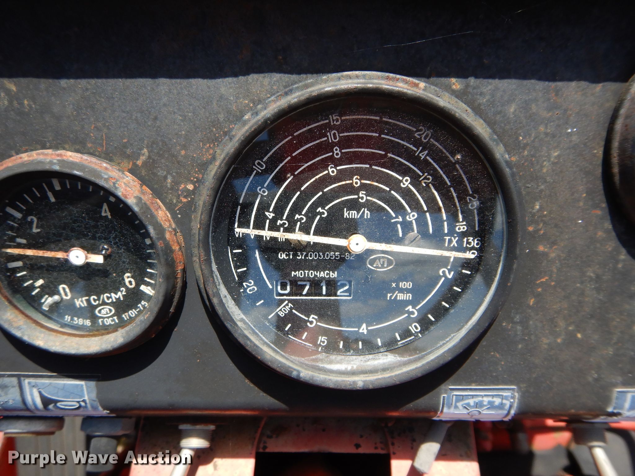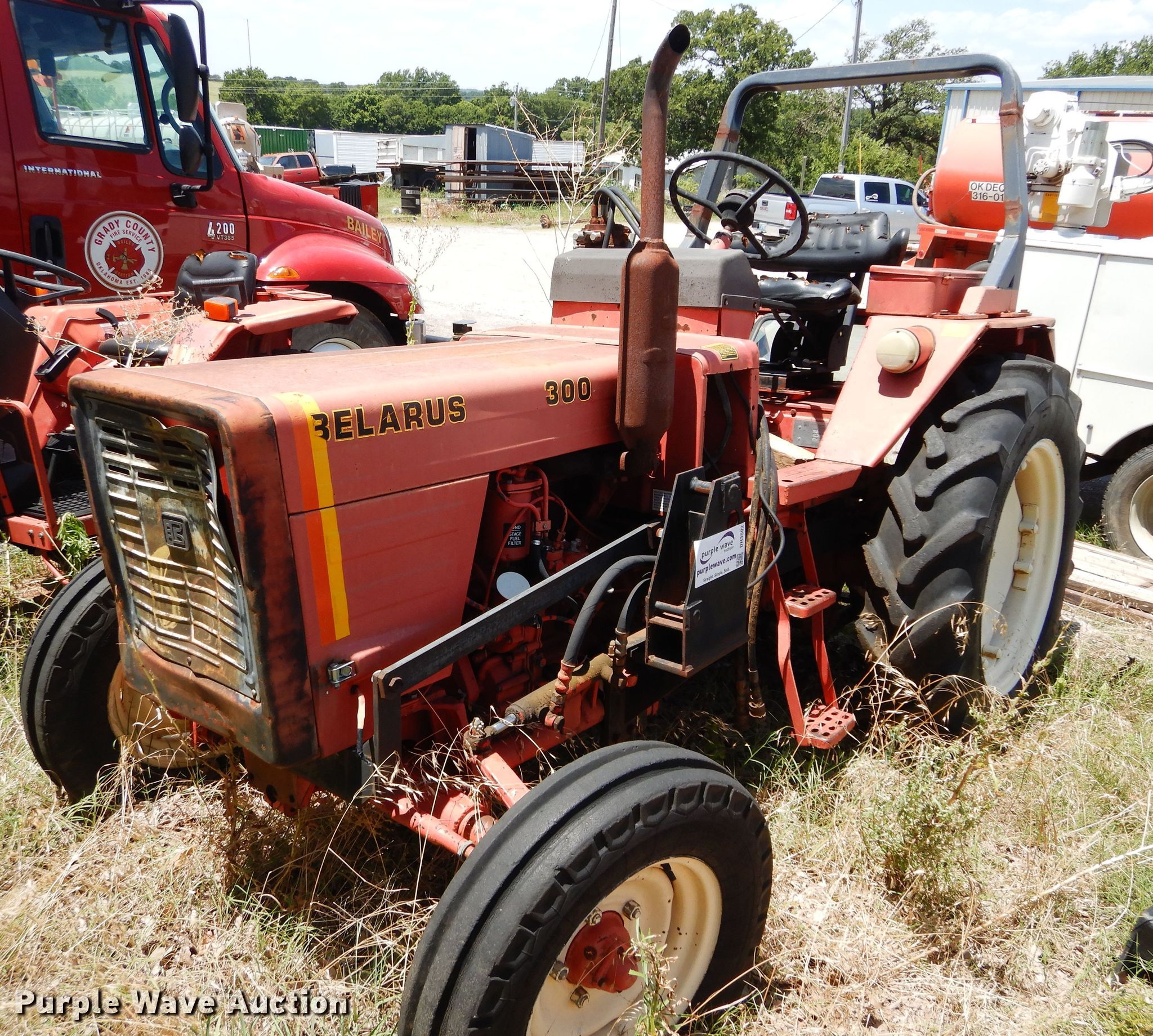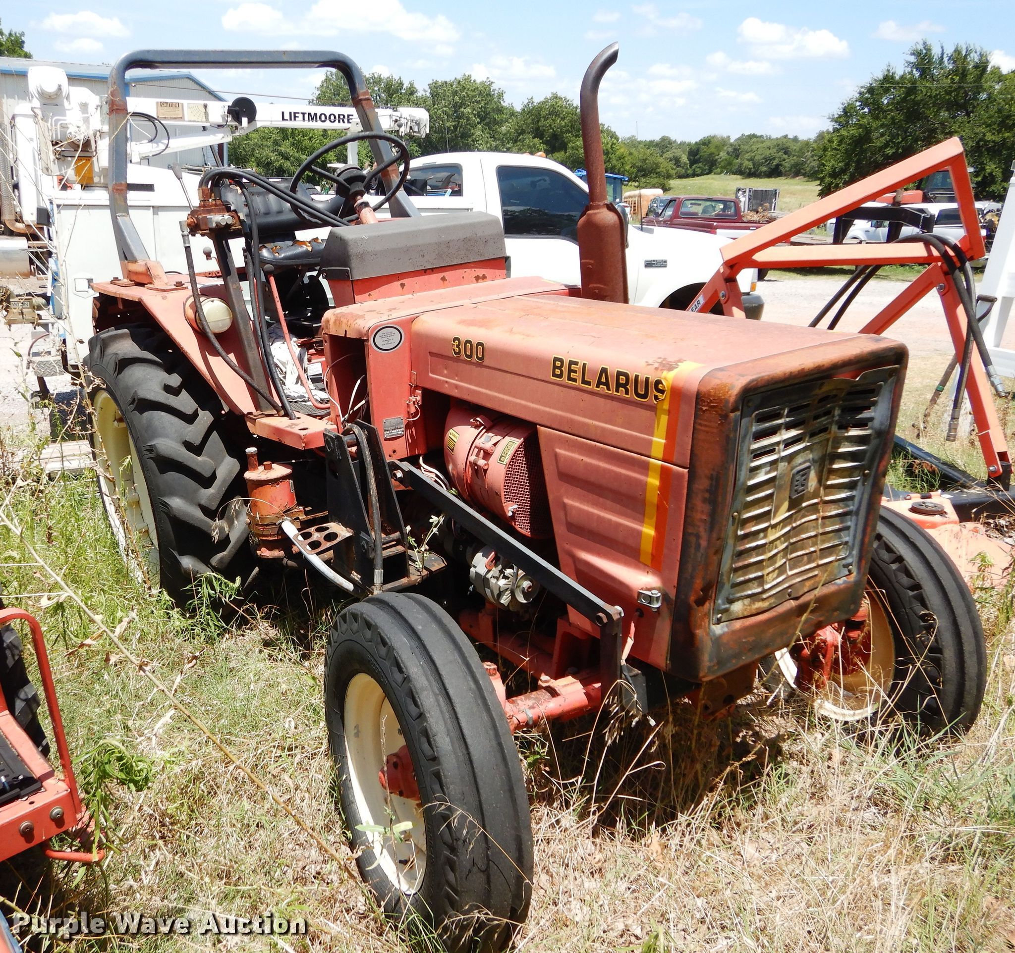 Purple Wave is selling a used Tractor in Oklahoma. This item is a Belarus 300 tractor with the following: 712 hours on meter, Two cylinder diesel engine, Manual transmission, 3F-2R gears, Three point, 540 PTO, 6.50-16 front tires, 12.4R28 rear tires, Non-operational unit, Serial 002390