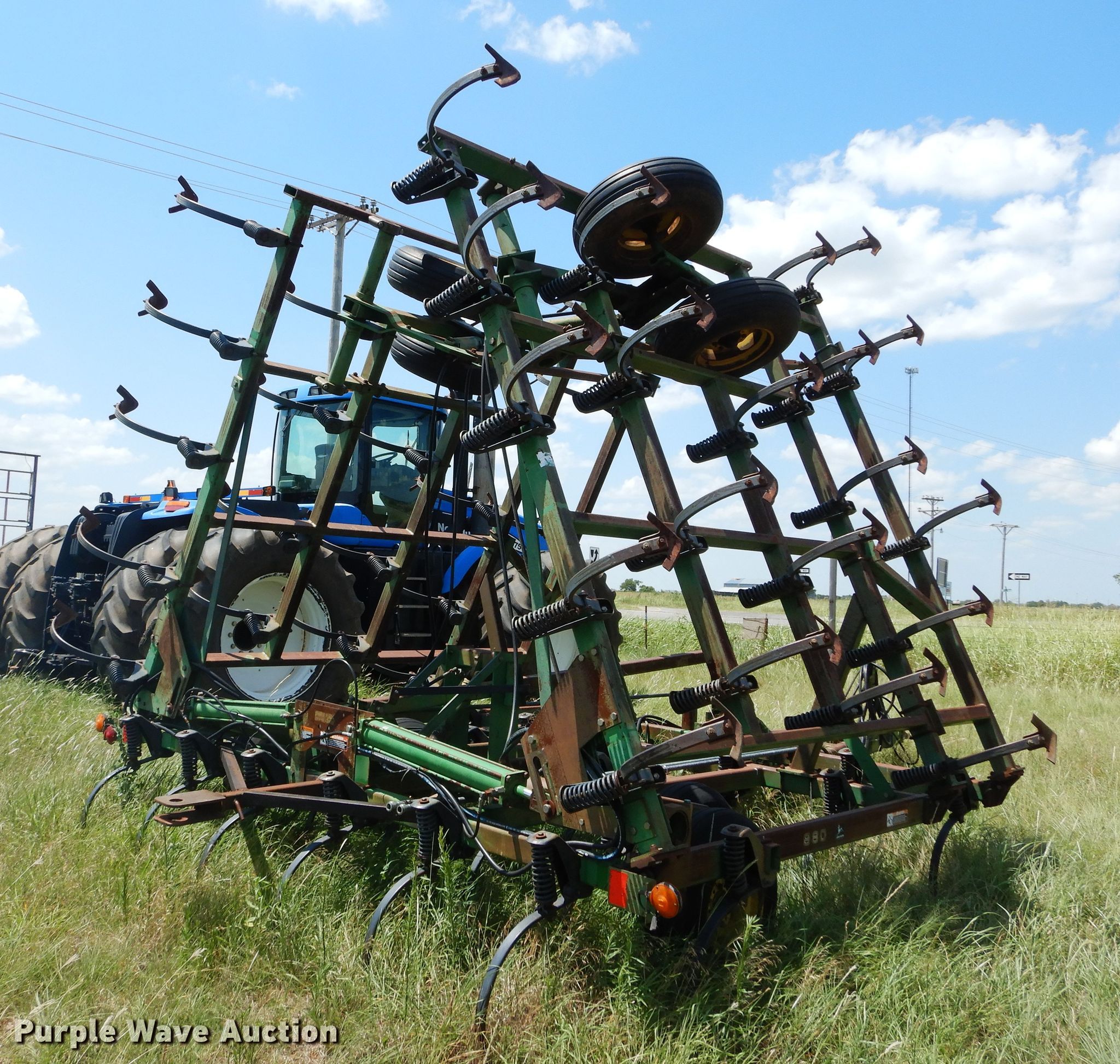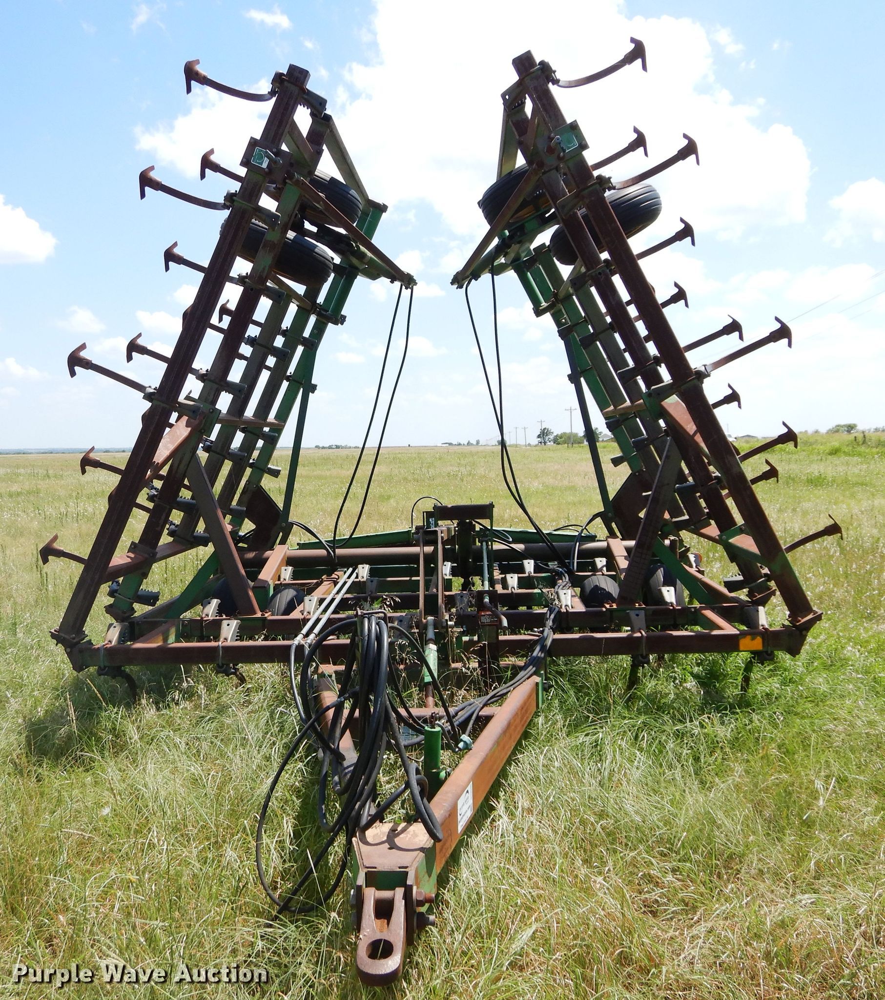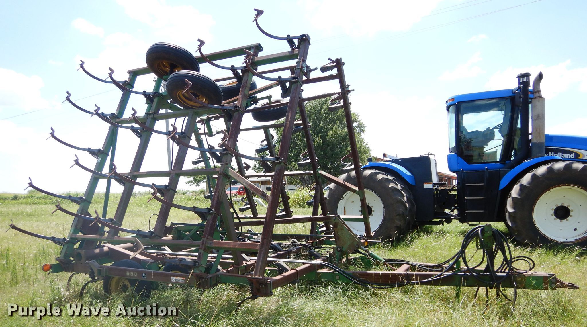Purple Wave is selling a used Chisel in Oklahoma. This item is a John Deere 980 chisel with the following: 30'W, (53) 9"W sweeps, Tine harrow, Hydraulic lift and fold, Walking tandem axle, 9.5-15 tires, Serial N00980X002004