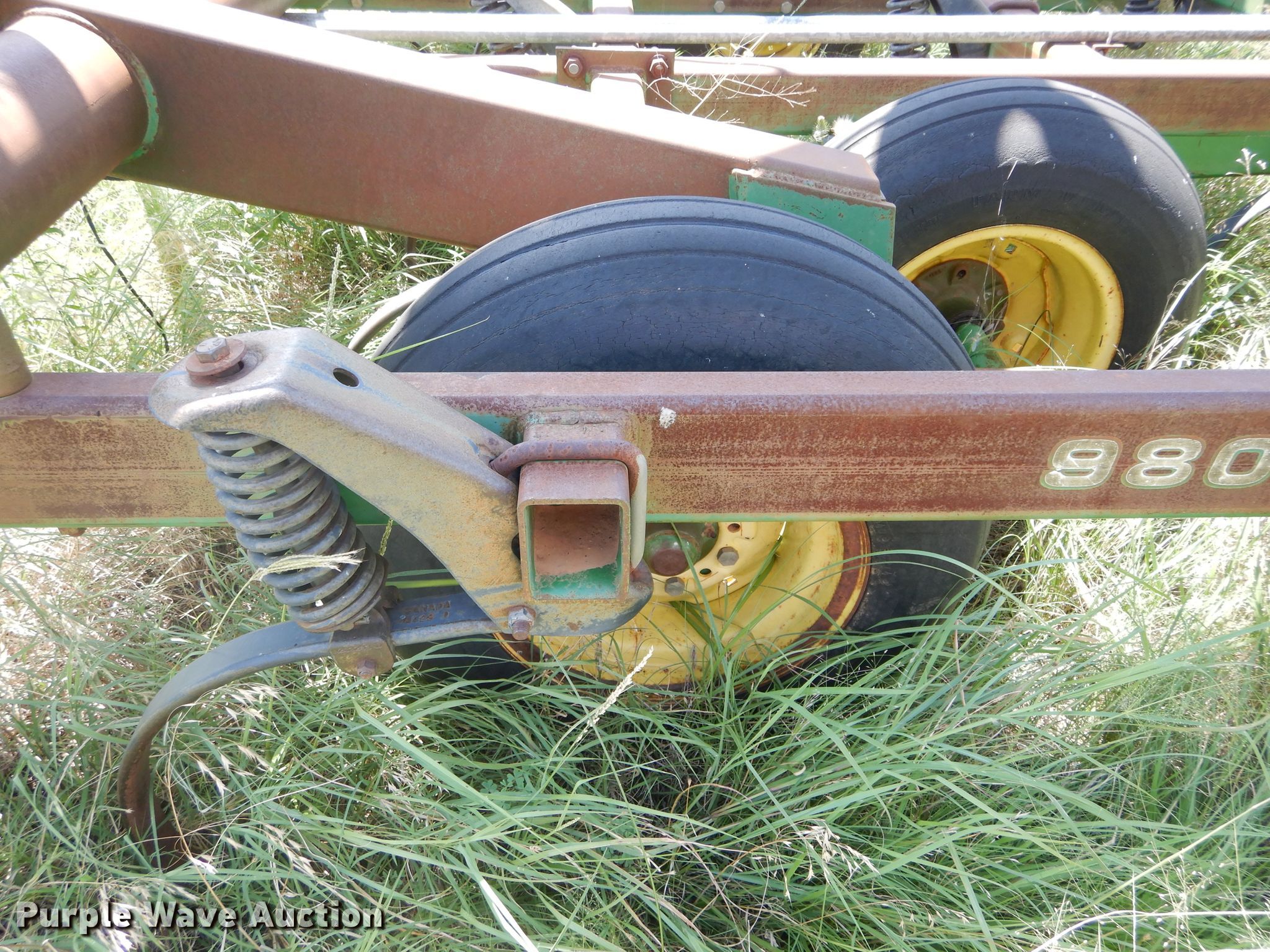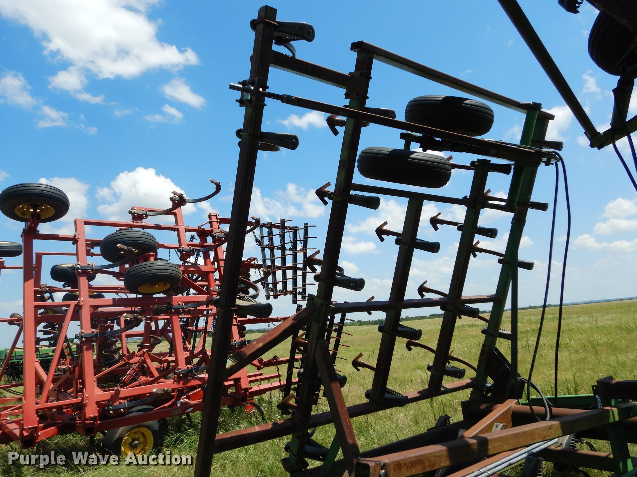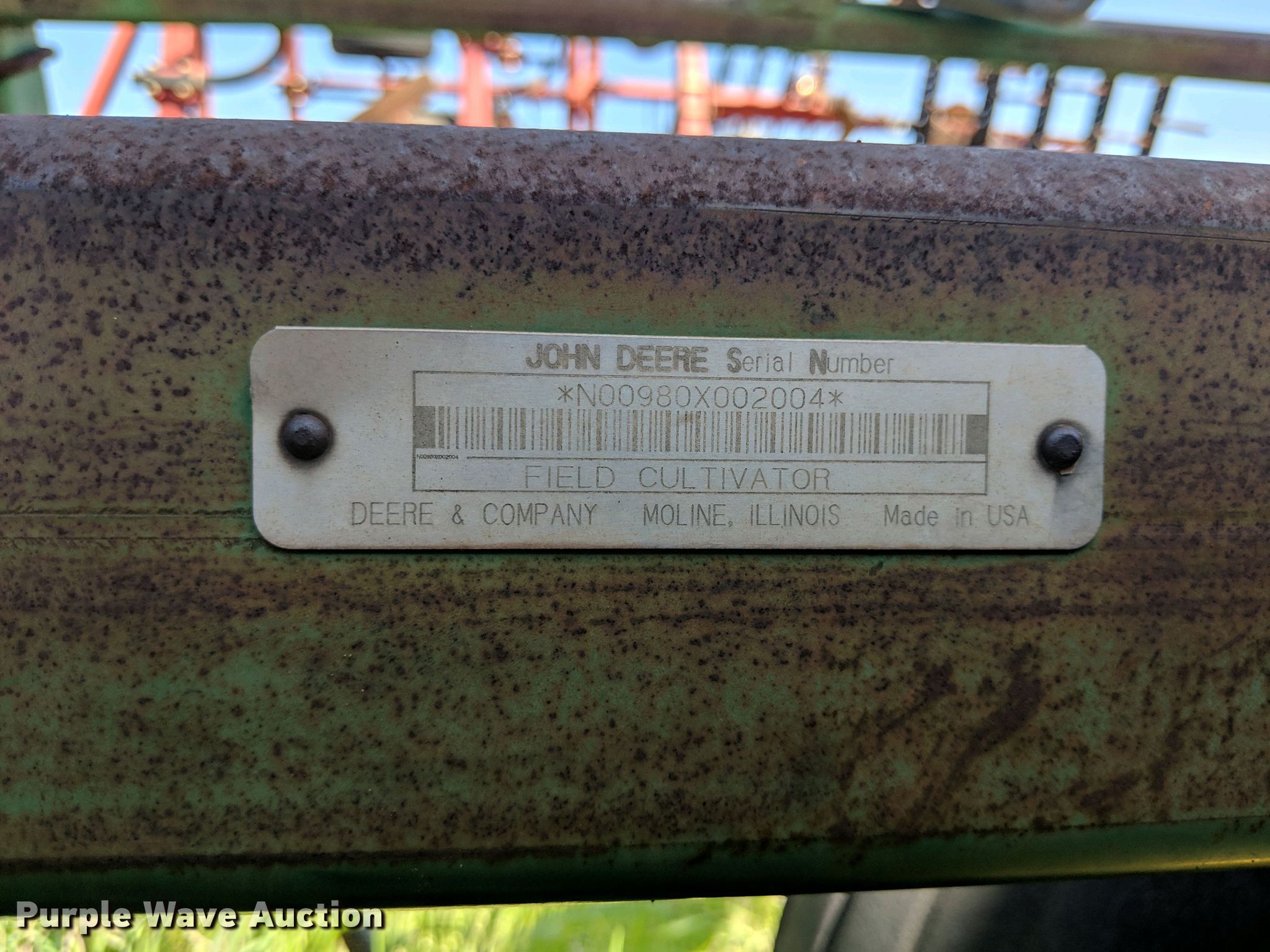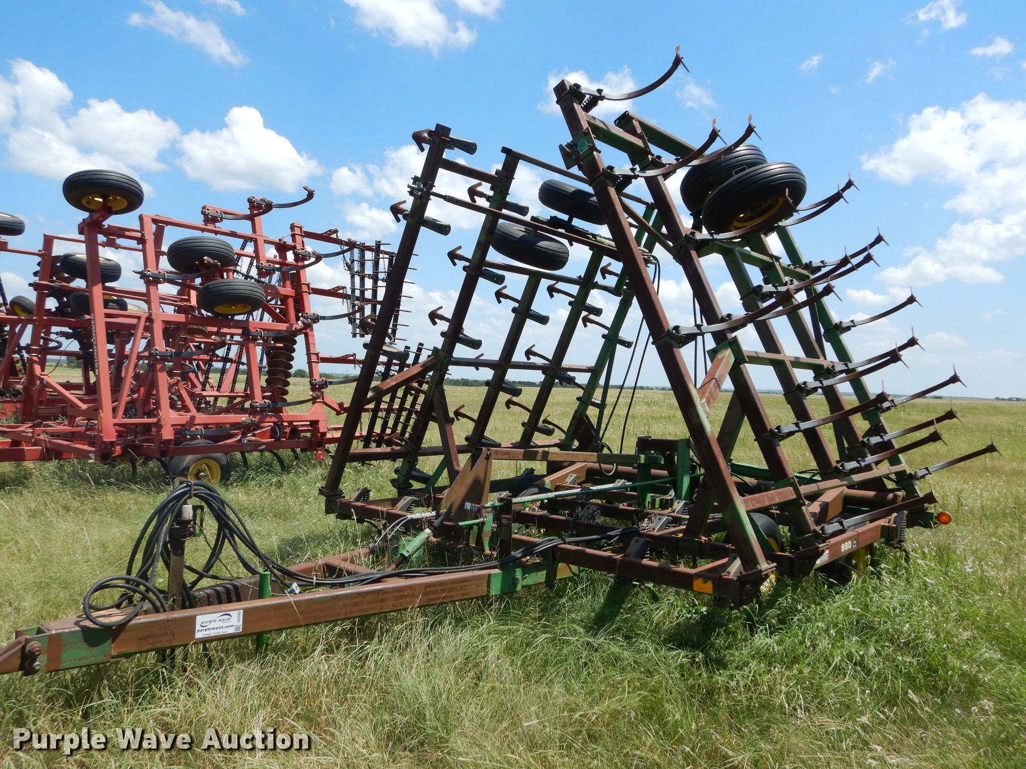 Purple Wave is selling a used Chisel in Oklahoma. This item is a John Deere 980 chisel with the following: 30'W, (53) 9"W sweeps, Tine harrow, Hydraulic lift and fold, Walking tandem axle, 9.5-15 tires, Serial N00980X002004