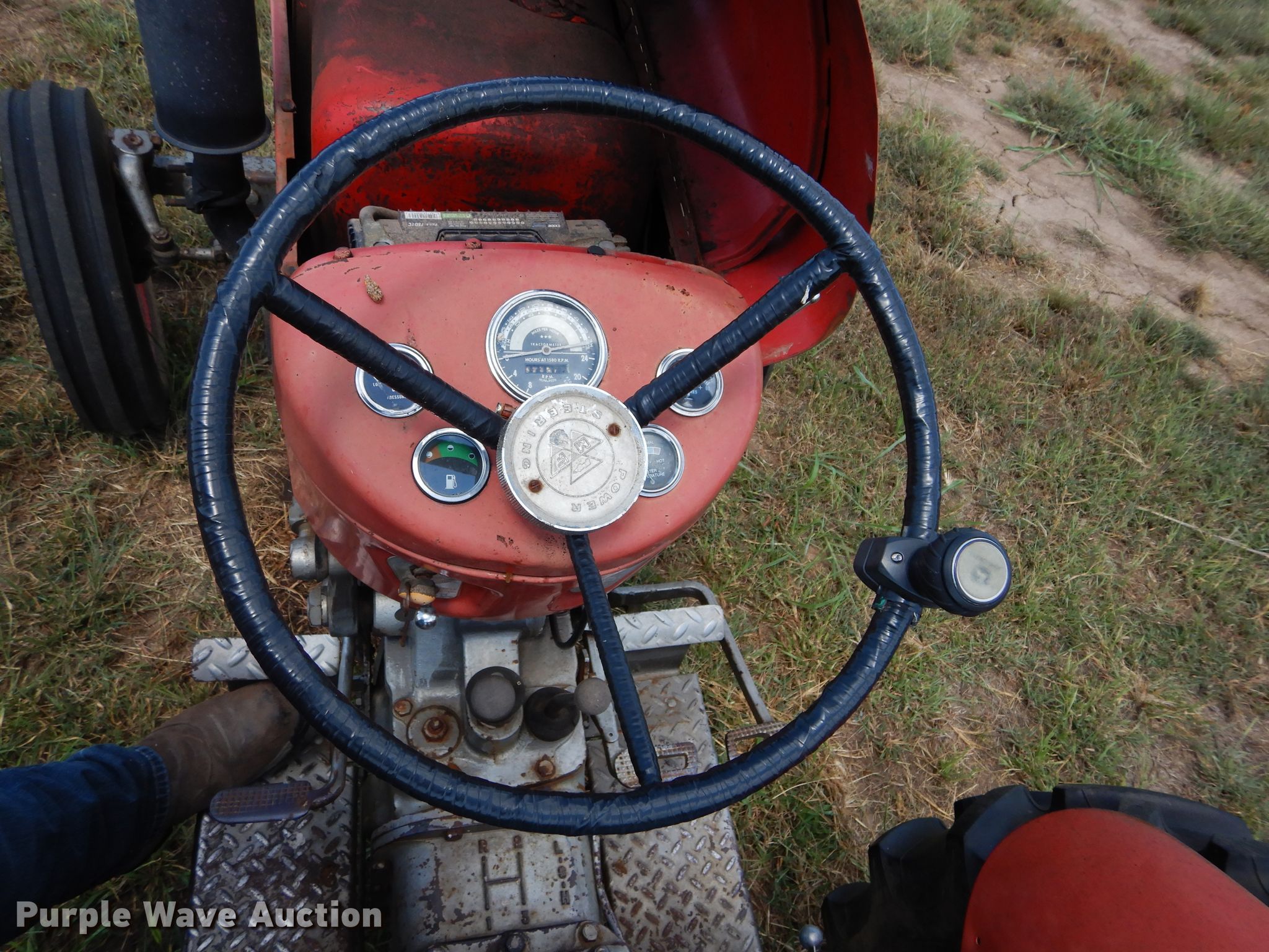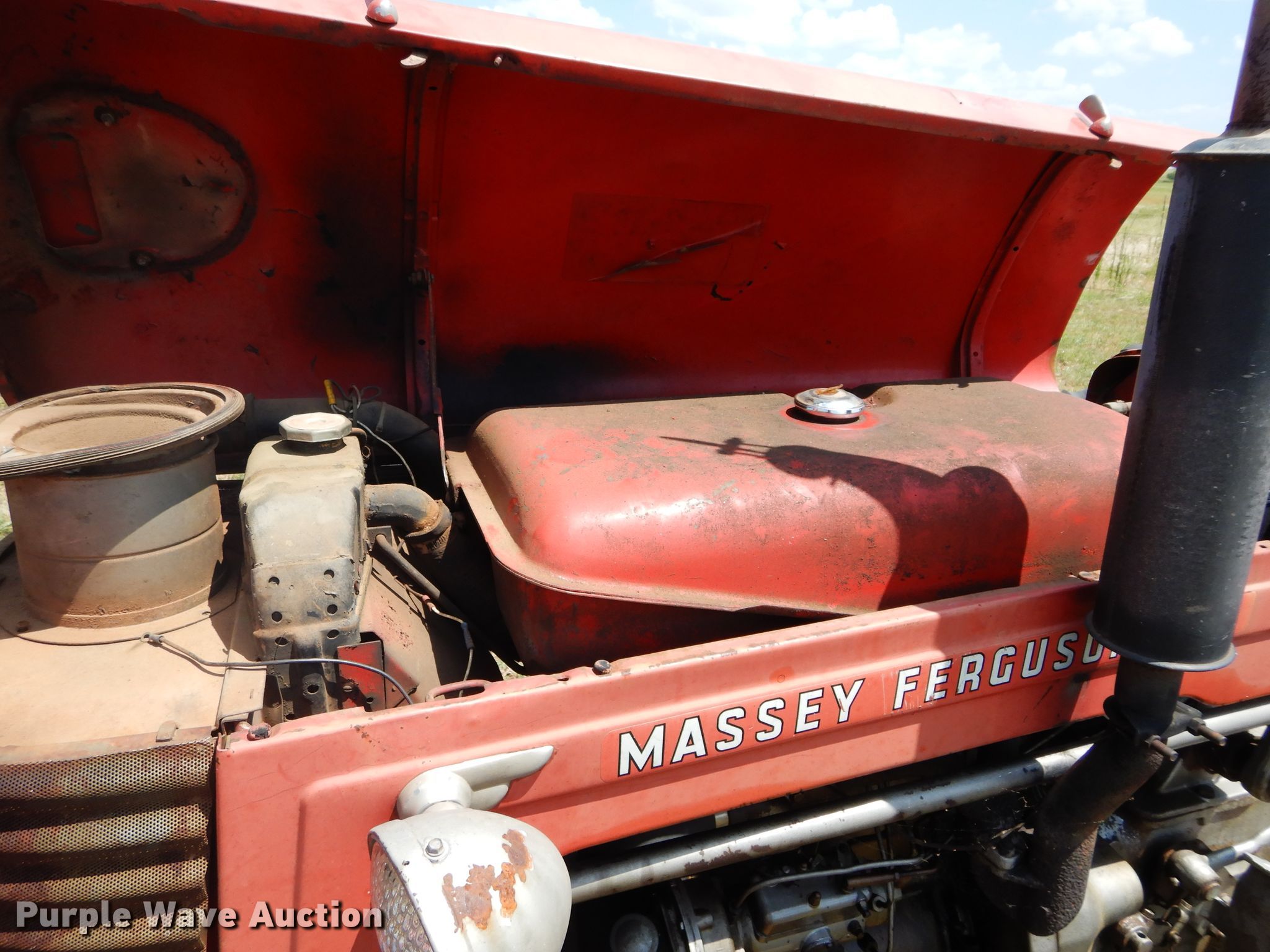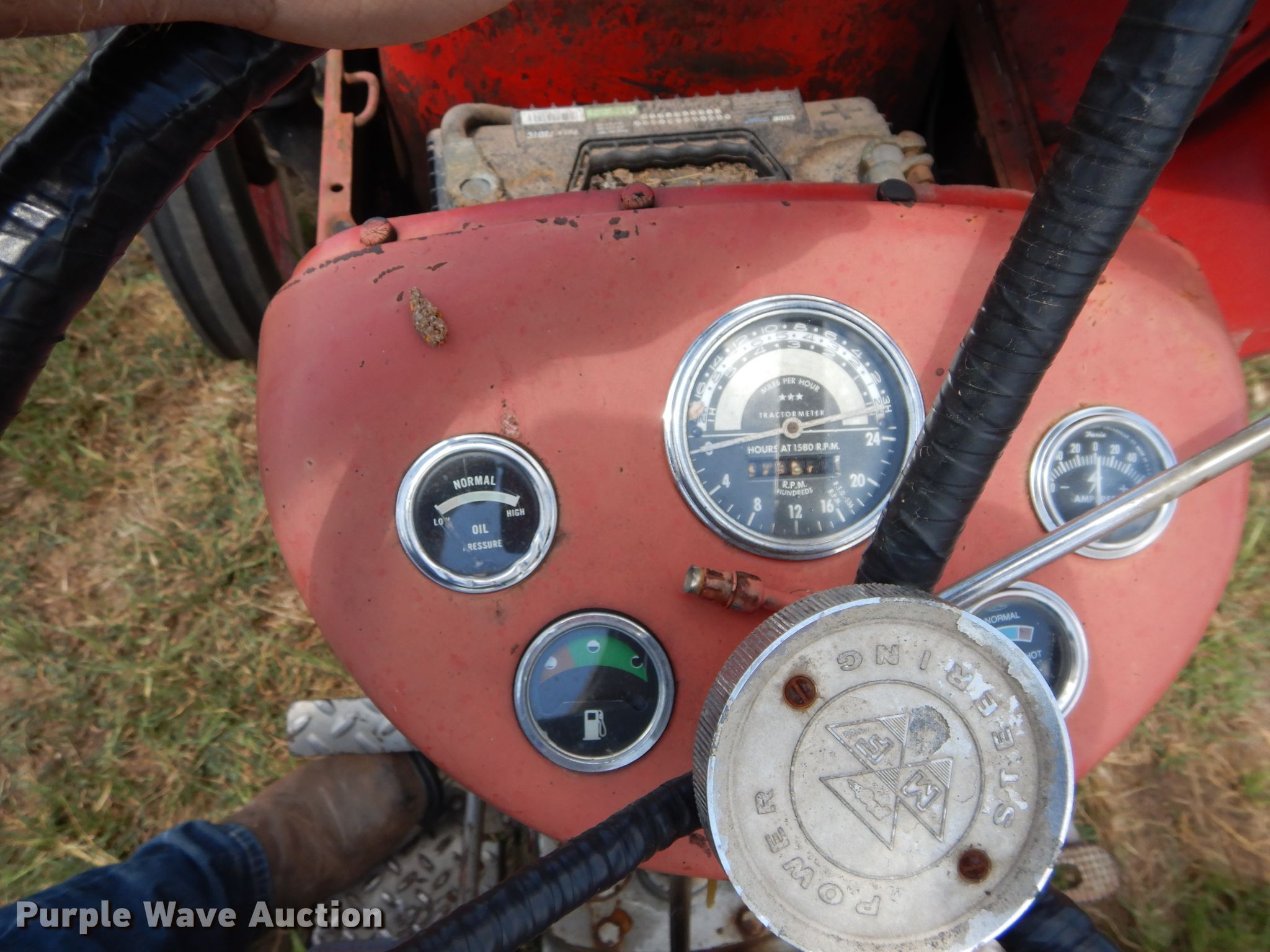 Purple Wave is selling a used Tractor in Oklahoma. This item is a Massey-Ferguson 50 tractor with the following: 3,220 hours on meter, Three cylinder diesel engine, Manual transmission, 3F-1R gears, Three point, 540 PTO, 6.00-16 front tires, 13.6-28 rear tires, Diesel fuel leak, Rotary mower not included