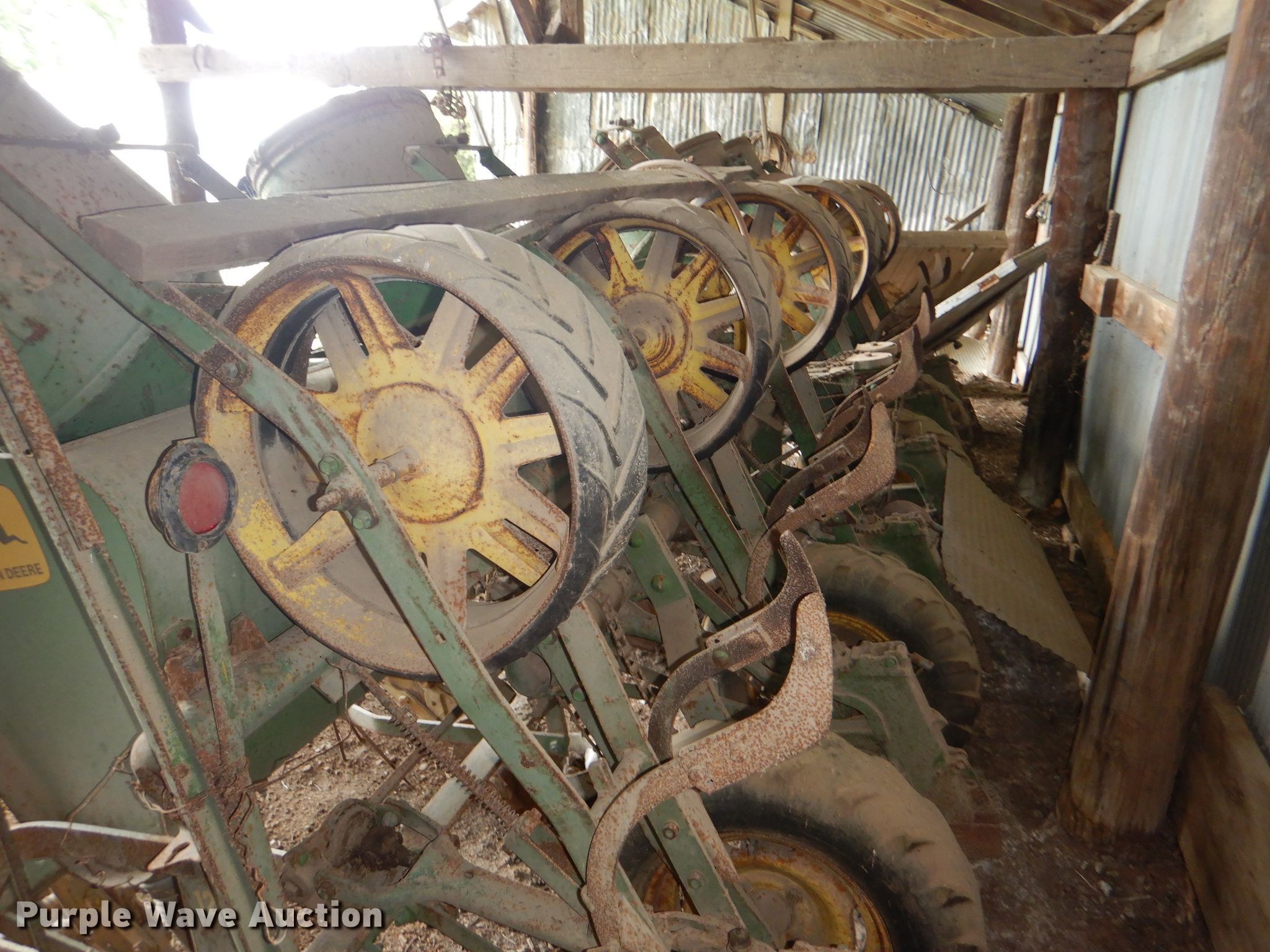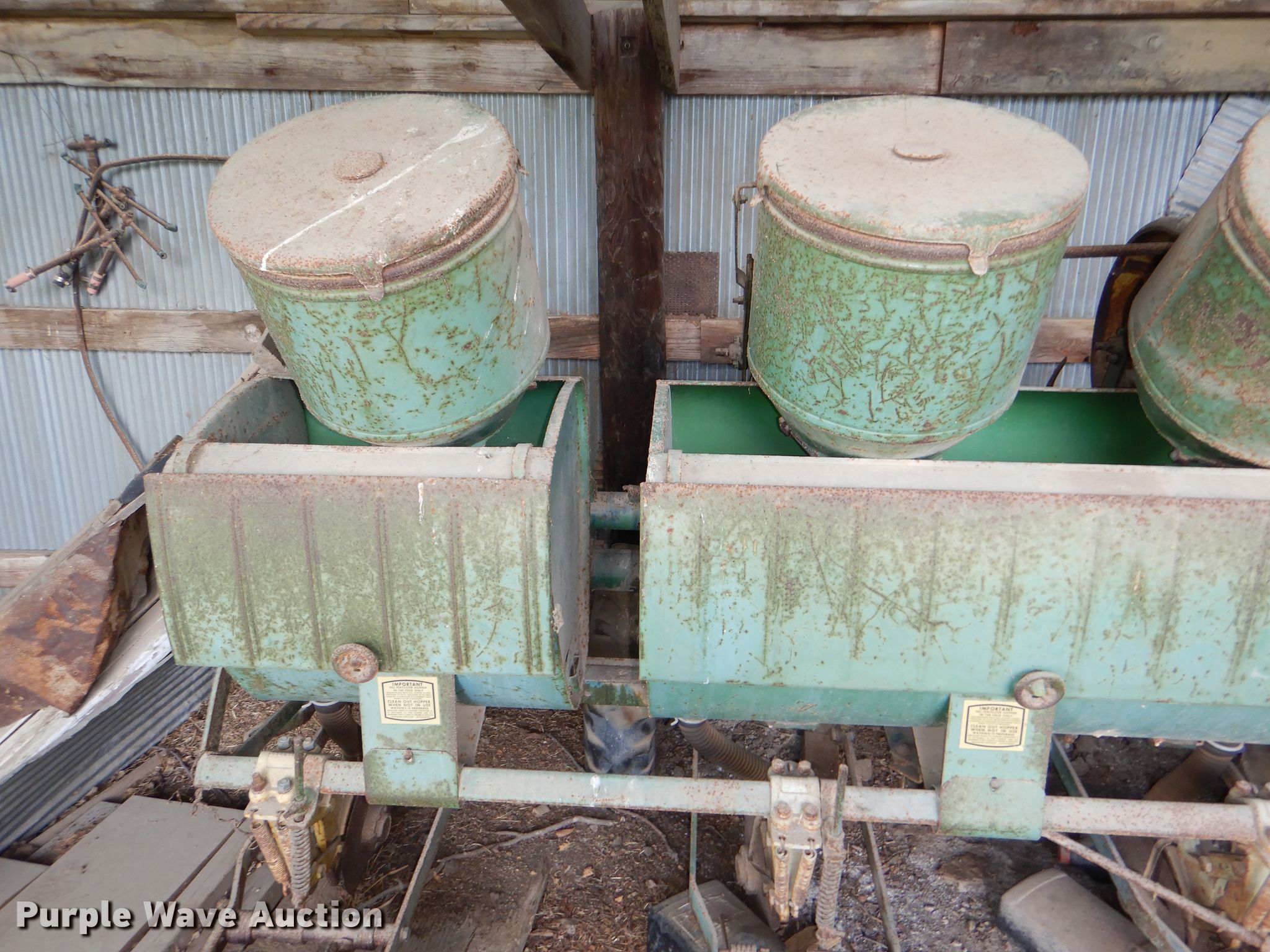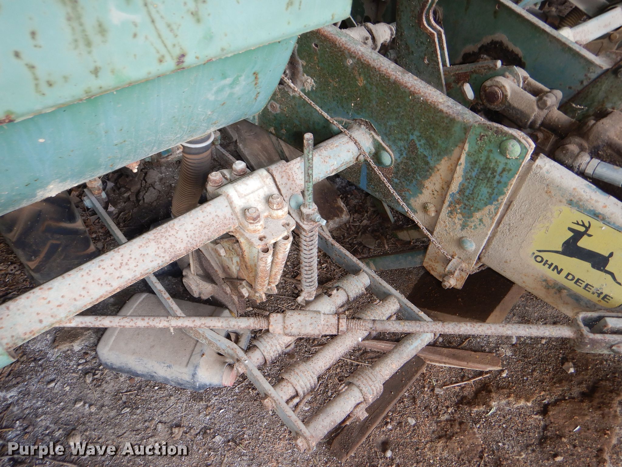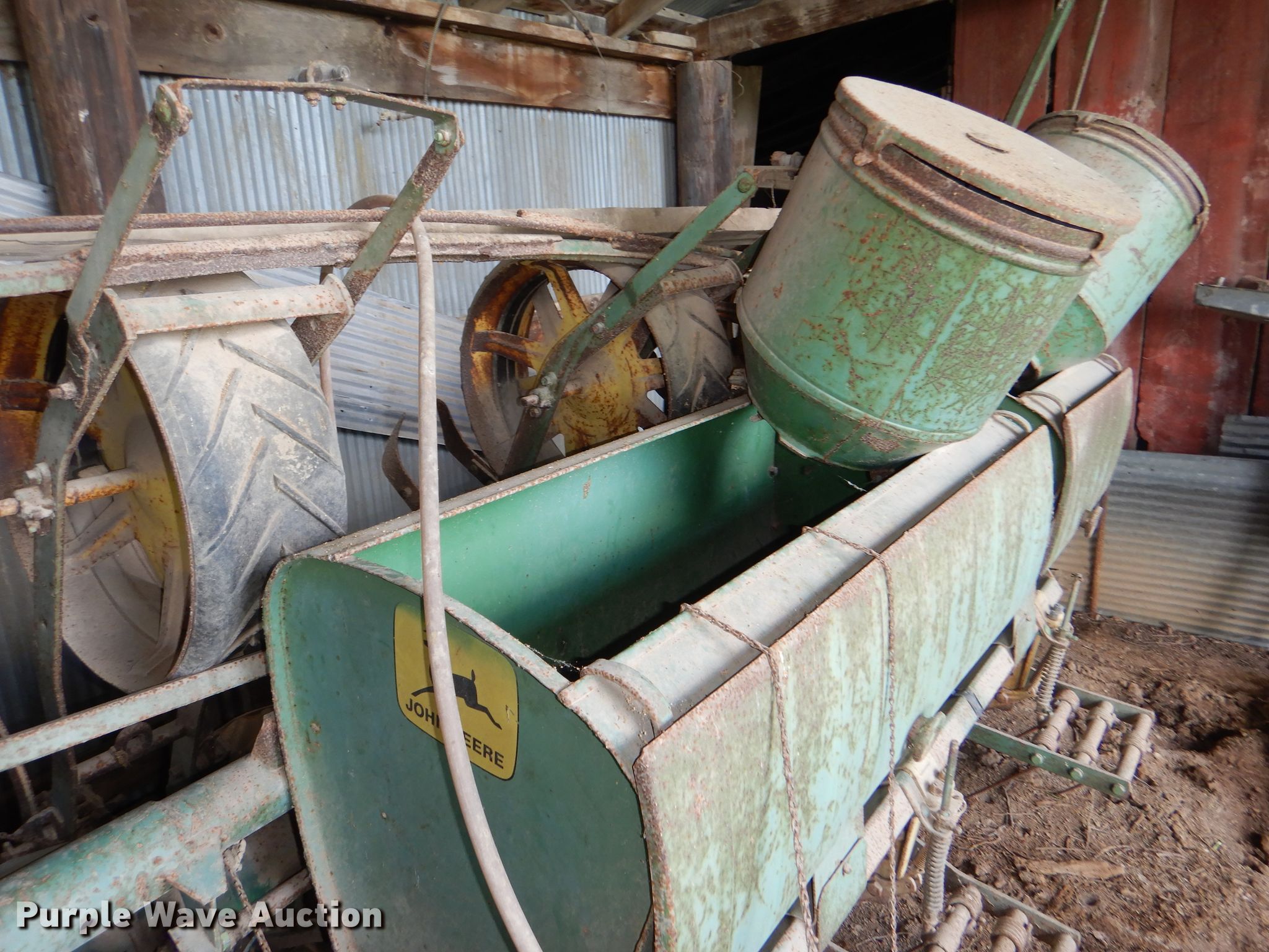 Purple Wave is selling a used Planter in Kansas. This item is a John Deere 1250 planter with the following: 14'W, Six row units, 30" row spacing, Marker arms, Individual seed hoppers, Ground meter drive, Assorted seed meters, Double disk openers, Single gauge wheels, Double rubber closing system, Dry fertilizer tank, (4) transport tires, Tires flat, Unknown operating condition, Serial 22722B