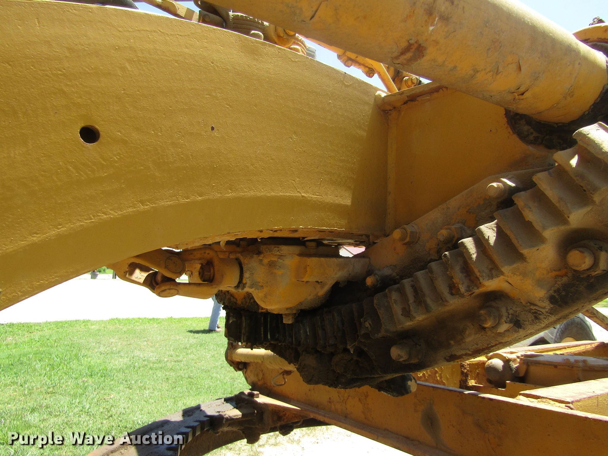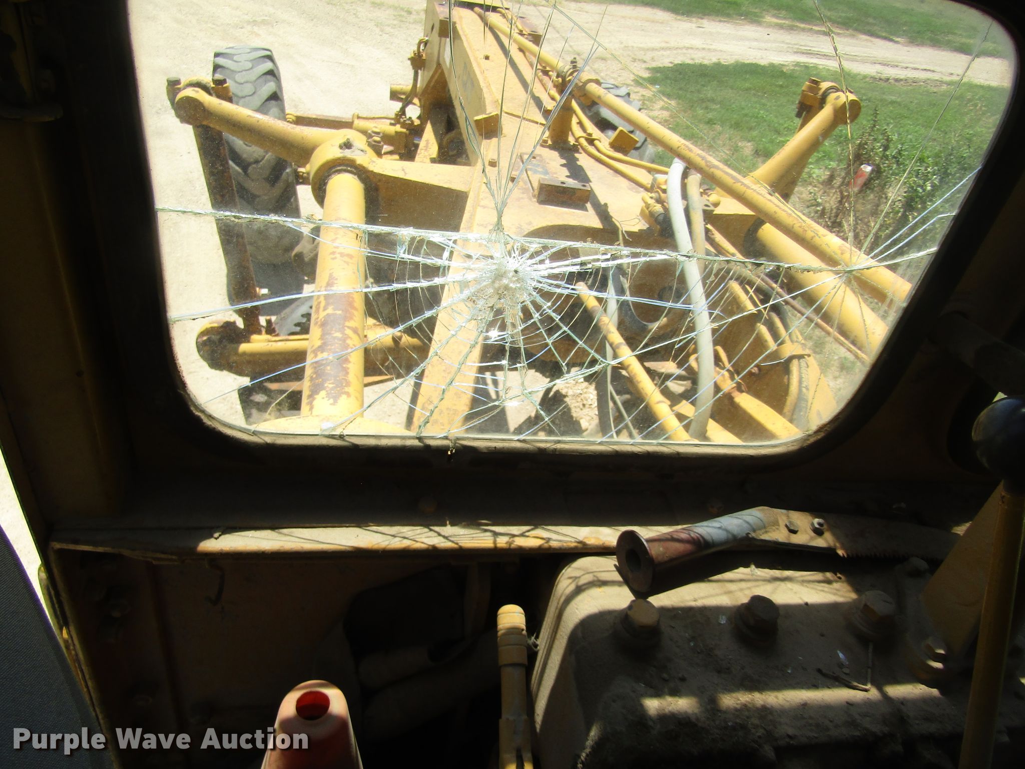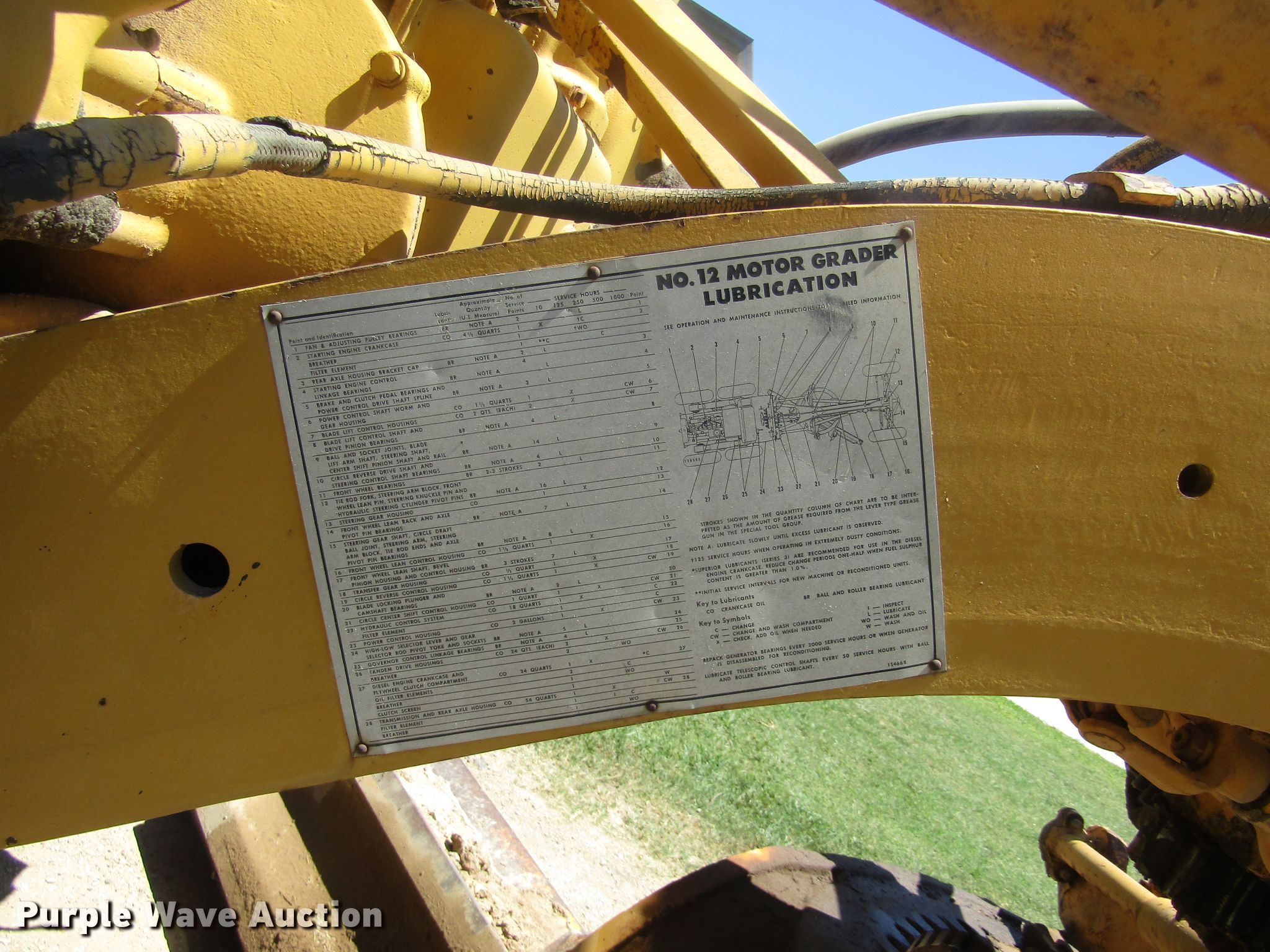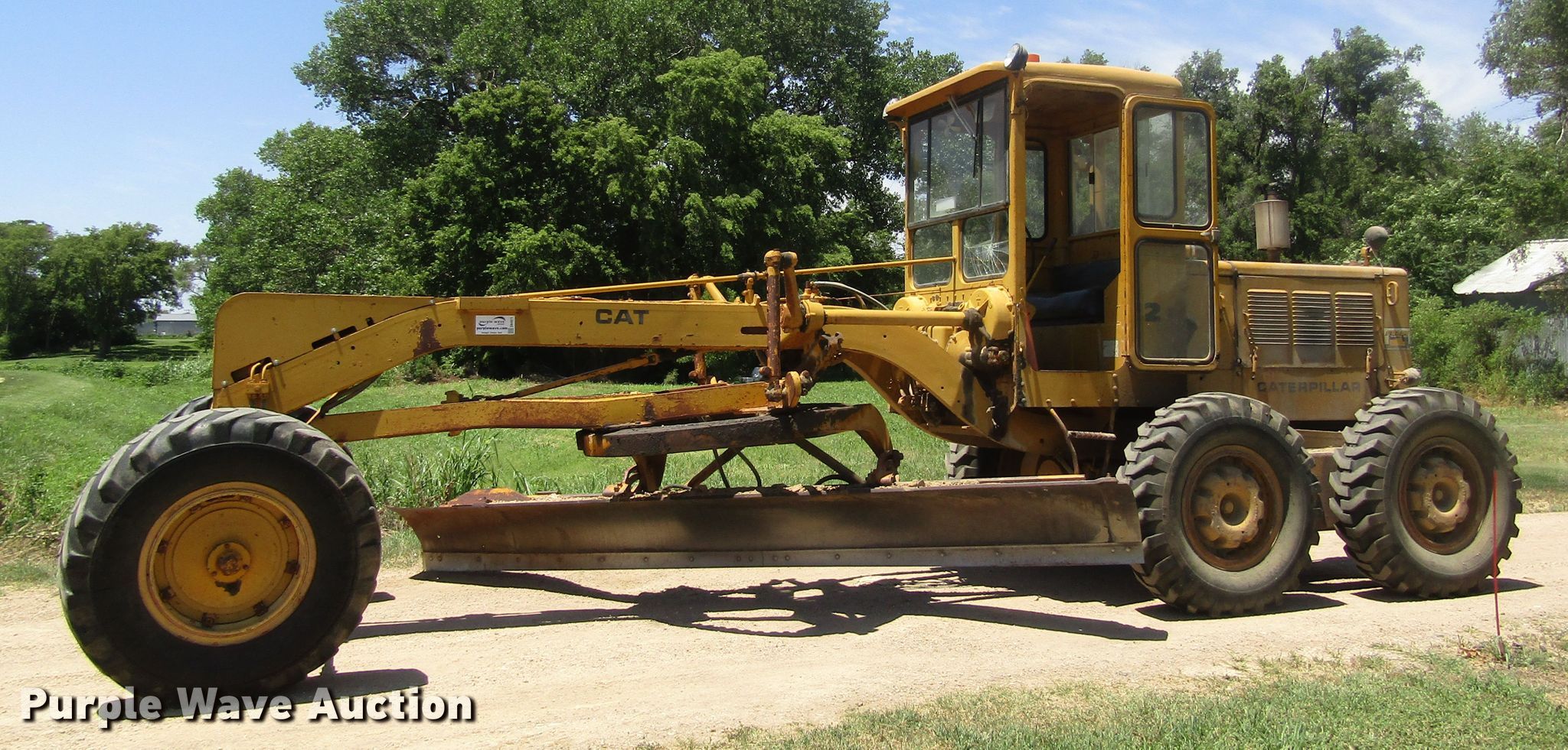 Purple Wave is selling a used Motor Grader in Kansas. This item is a 1963 Caterpillar 12E rigid frame motor grader with the following: Unknown hours on meter, Caterpillar six cylinder diesel engine, Direct drive transmission, 12F-4R gears, Enclosed cab, Heat, Seven hydraulic control valves, 15'W moldboard, Right blade extension, Tip control, Side shift, 13.00-24 tires, Additional tire and wheel, Unknown operating condition of heat, Glass cracked, Serial 99E8704