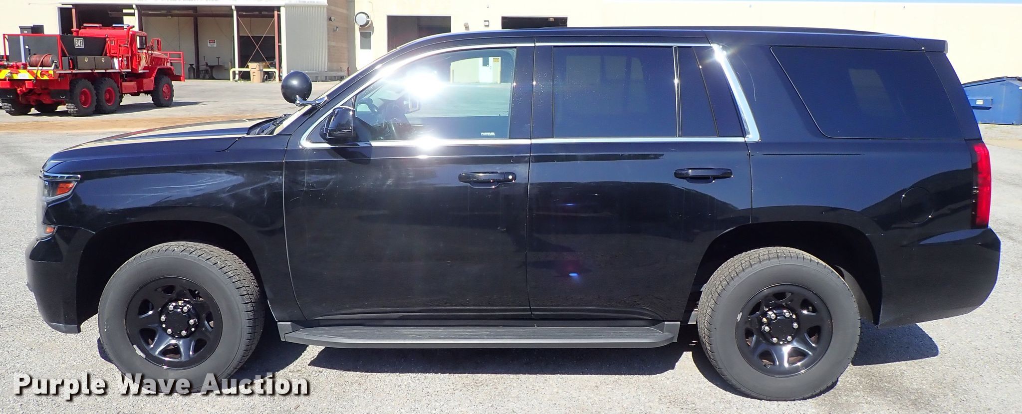 Purple Wave is selling a used Passenger Vehicle in Kansas. This item is a 2016 Chevrolet Tahoe Police SUV with the following: 84,015 miles on odometer, 5.3L V8 OHV 16V gas engine, Automatic transmission, AC and heat, Cruise, Power windows, locks, and seats, Backup camera, P265/60R17 tires, Port holes in roof, Camshaft has been replaced, Unit# 225