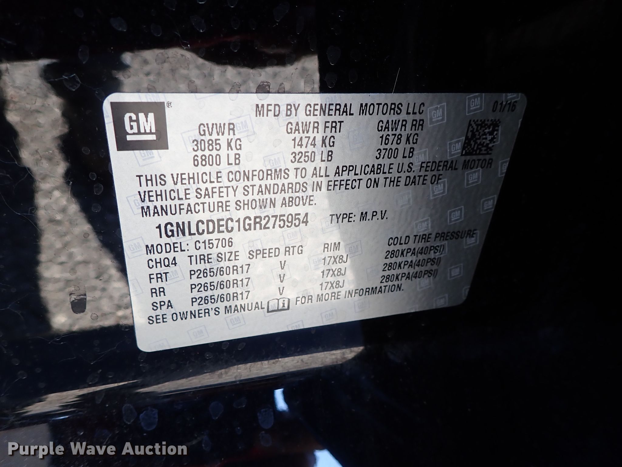 Purple Wave is selling a used Passenger Vehicle in Kansas. This item is a 2016 Chevrolet Tahoe Police SUV with the following: 93,863 miles on odometer, 5.3L V8 OHV 16V gas engine, Automatic transmission, AC and heat, Cruise, Power windows, locks, and seats, Backup camera, P265/60R17 tires, Port holes in roof, Roof damage, Camshaft has been replaced, Unit# 203
