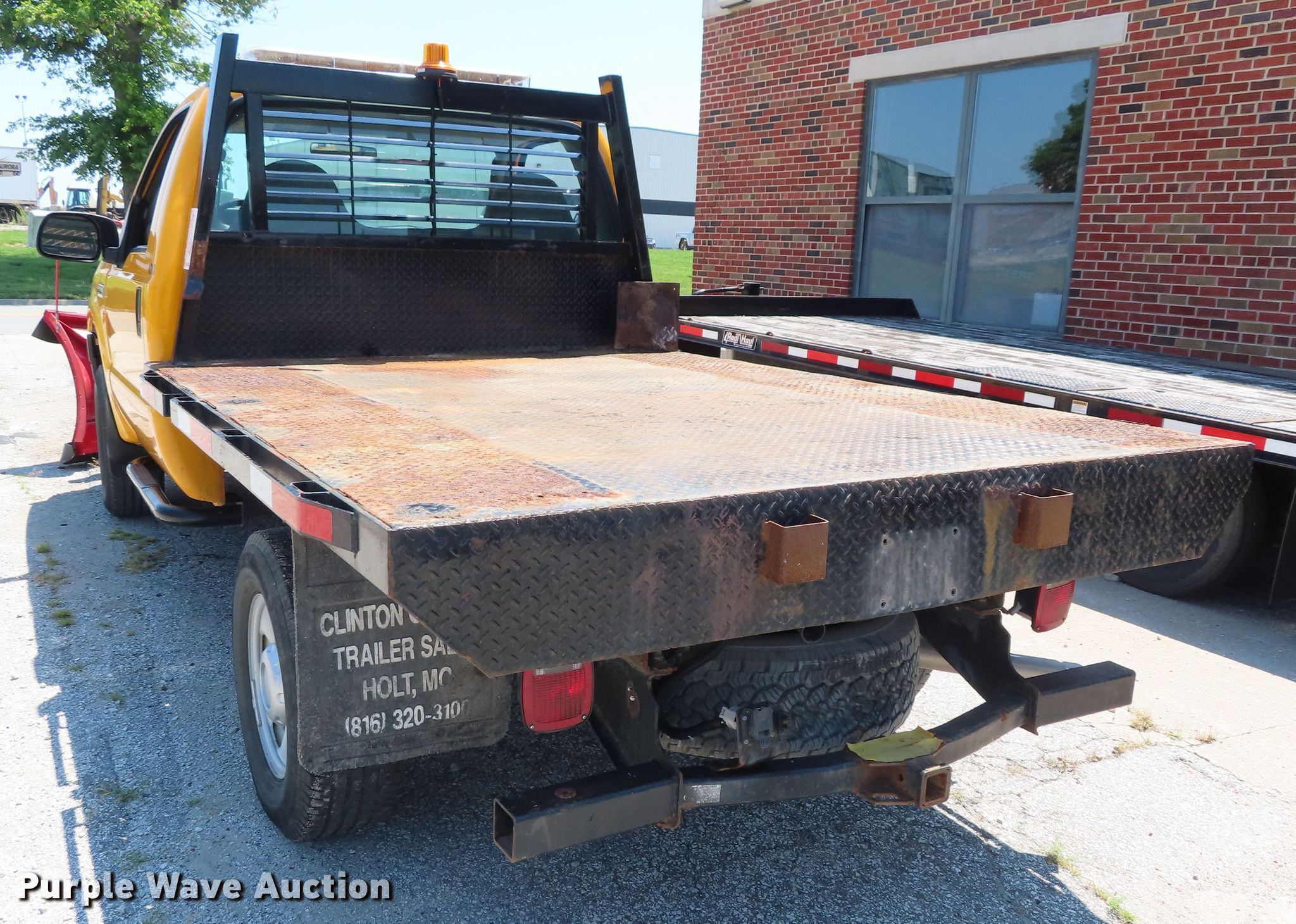 2006 Ford F350 Super Duty flatbed pickup truck. 97,787 miles on odometer, 5.4L V8 SOHC 24V gas engine, Automatic transmission, Four wheel drive, AC and heat, 8'7"L x 86"W flatbed, Boss 8'2" snow plow, 265/70R17 tires, Unit# AIR1010. Kansas title. 1FDWF31566EC65534. Johnson County. 228 Gardner Dr. New Century, KS 66031