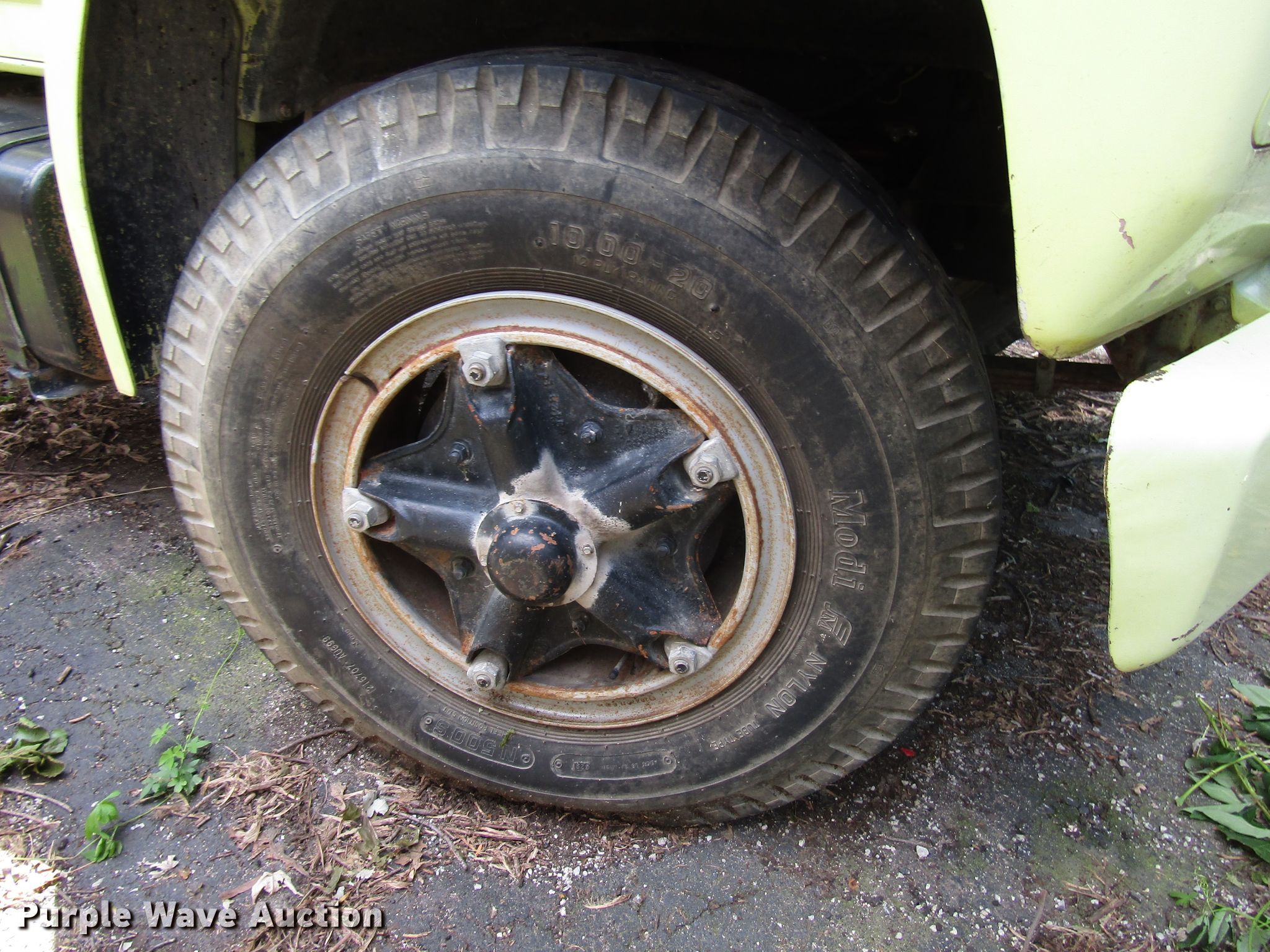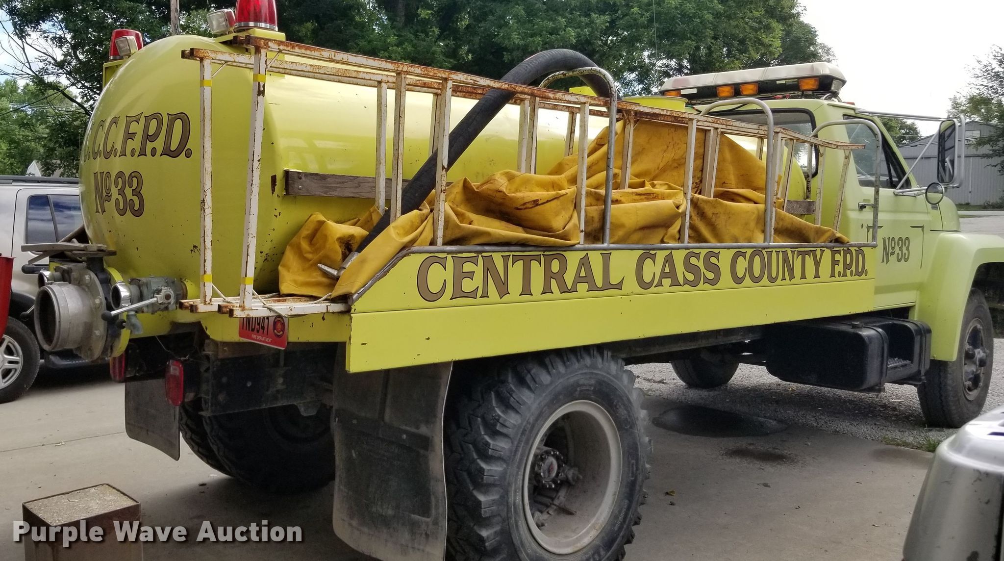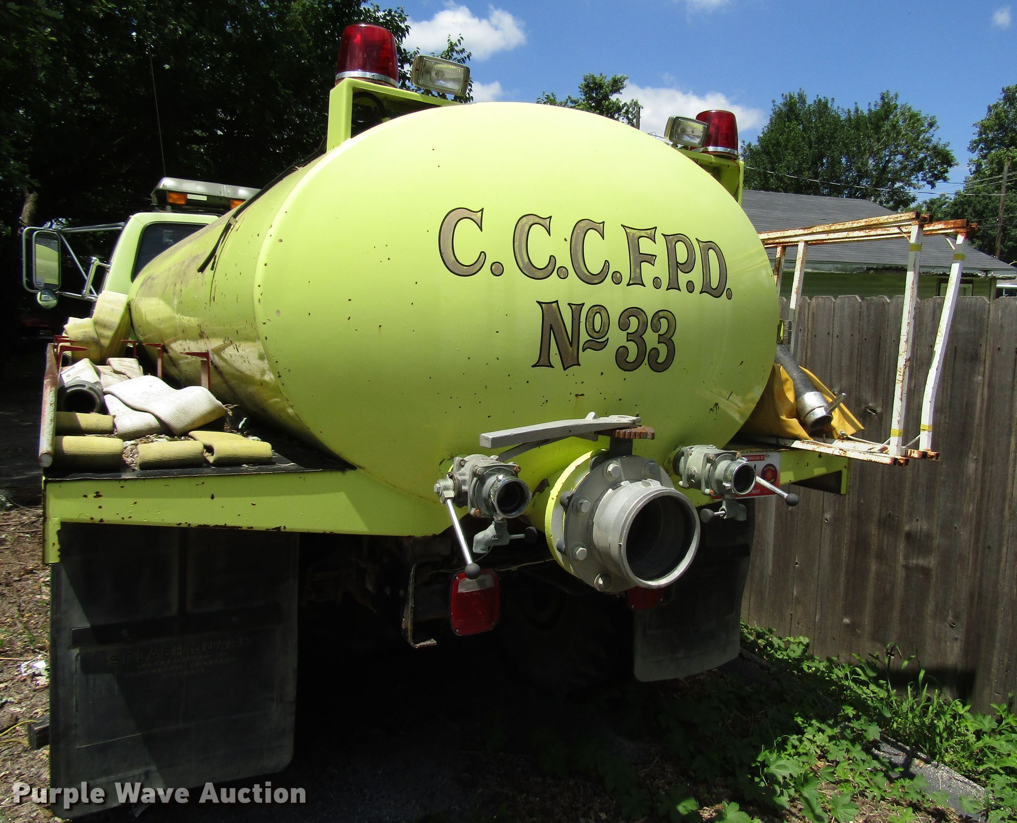 Purple Wave is selling a used Tank Truck or Water Truck in Missouri. This item is a 1981 Ford F700 tank truck with the following: 27,324 miles on odometer, 6.1L V8 gas engine, 10 speed manual transmission, Single axle, Heat, 12'L tank bed, 3" rear outlet, 8" rear outlet, Spring suspension, Hydraulic brakes, 180" wheelbase, 10.00-20 tires, Radios and fire equipment not included