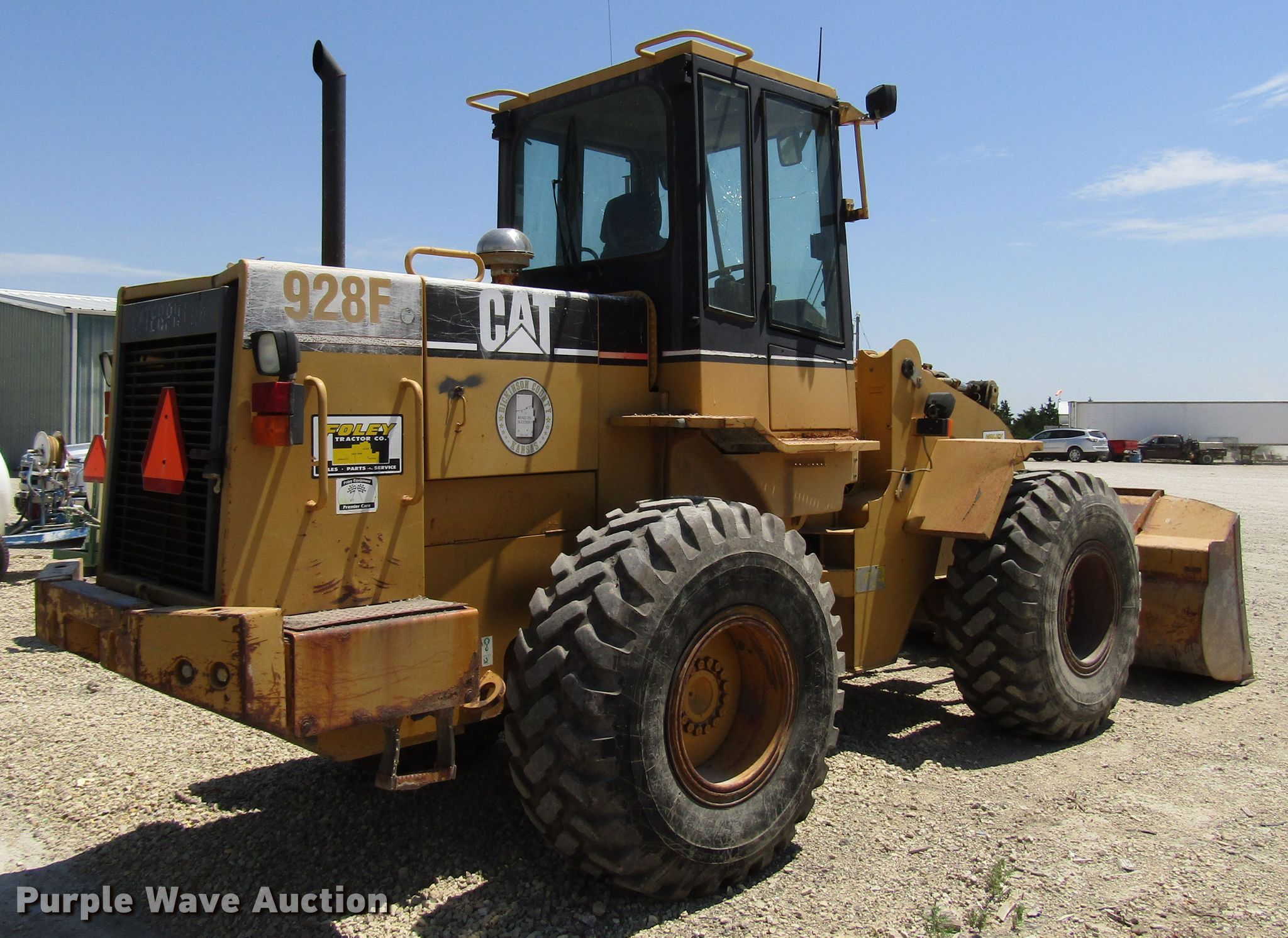 Purple Wave is selling a used Wheel Loader in Kansas. This item is a 1994 Caterpillar 928F wheel loader with the following: 7,589 hours on meter, Caterpillar 3116DID six cylinder diesel engine, Serial 98Z04173, Powershift transmission, 4F-4R gears, Enclosed cab, AC and heat, Two-lever bucket controls, 100"W bucket, Bolt-on cutting edge, 20.5R25 tires, Cracked windshield, Possible transmission issues, Serial 2XL00567