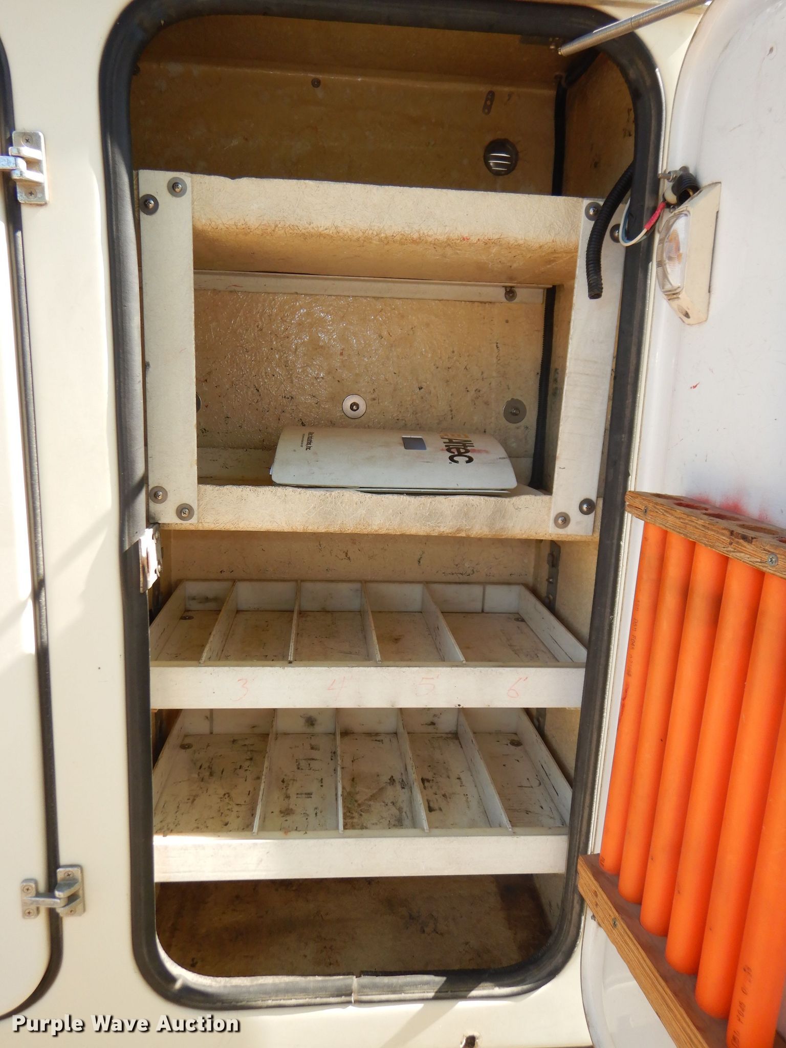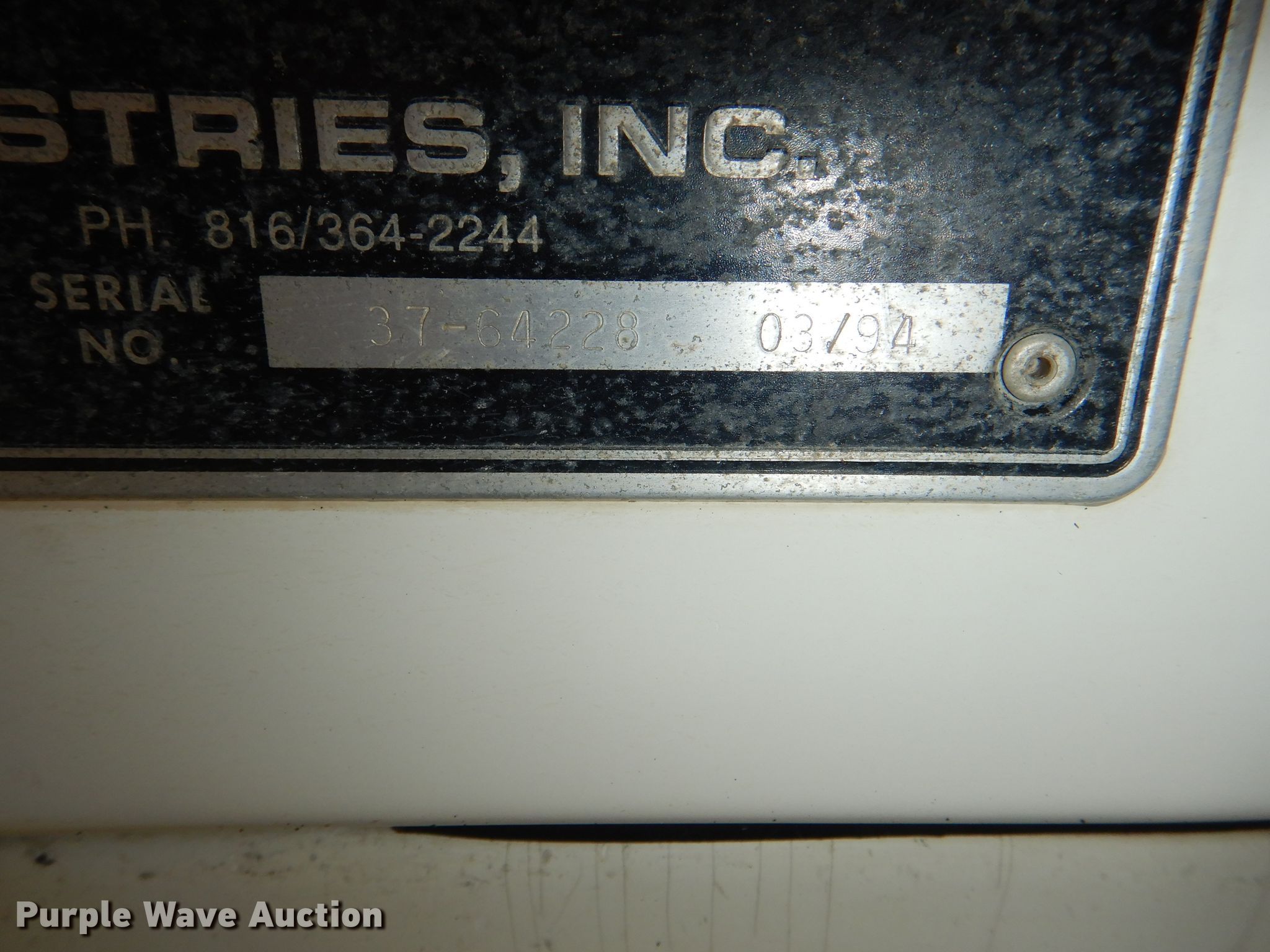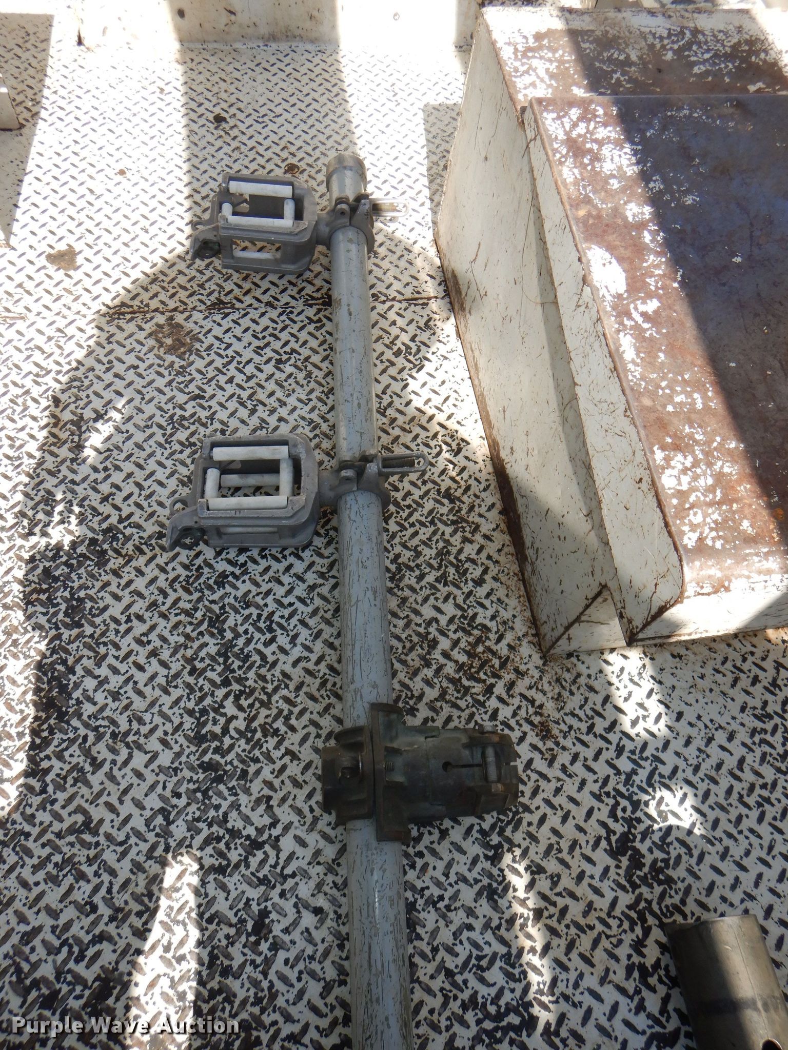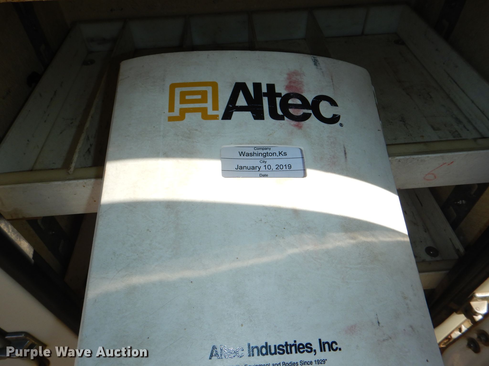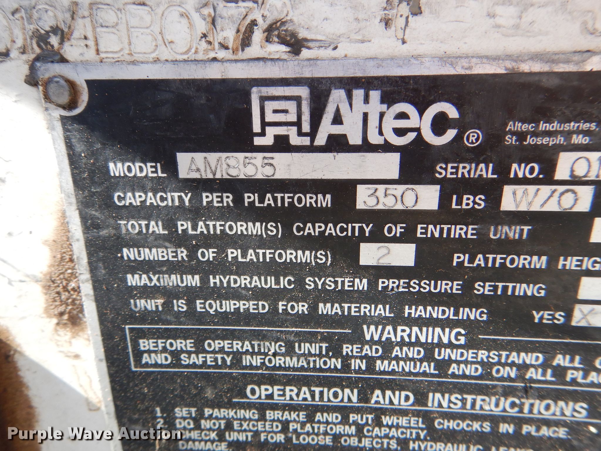 Purple Wave is selling a used Bucket Truck in Kansas. This item is a 1994 Chevrolet Kodiak C6500 bucket truck with the following: 168,866 miles on odometer, 13,674 hours on meter, 7,895 PTO hours on meter, Caterpillar 3116 6.6L L6 diesel engine, Five speed manual transmission, Single axle, AC and heat, PTO, Altec 14'L utility bed, Serial 37-64228, 1994 Altec AM855 insulated boom, 600 lbs maximum lift capacity, 55' maximum lift height, (2) man baskets, Individual rotation, Ground and platform controls, Material handler, Three phase tree, Spring suspension, Hydraulic brakes, 193" wheelbase, Goodyear 10R20 tires, GVWR 33,000 lbs, Inspection report completed January 2019, Manuals