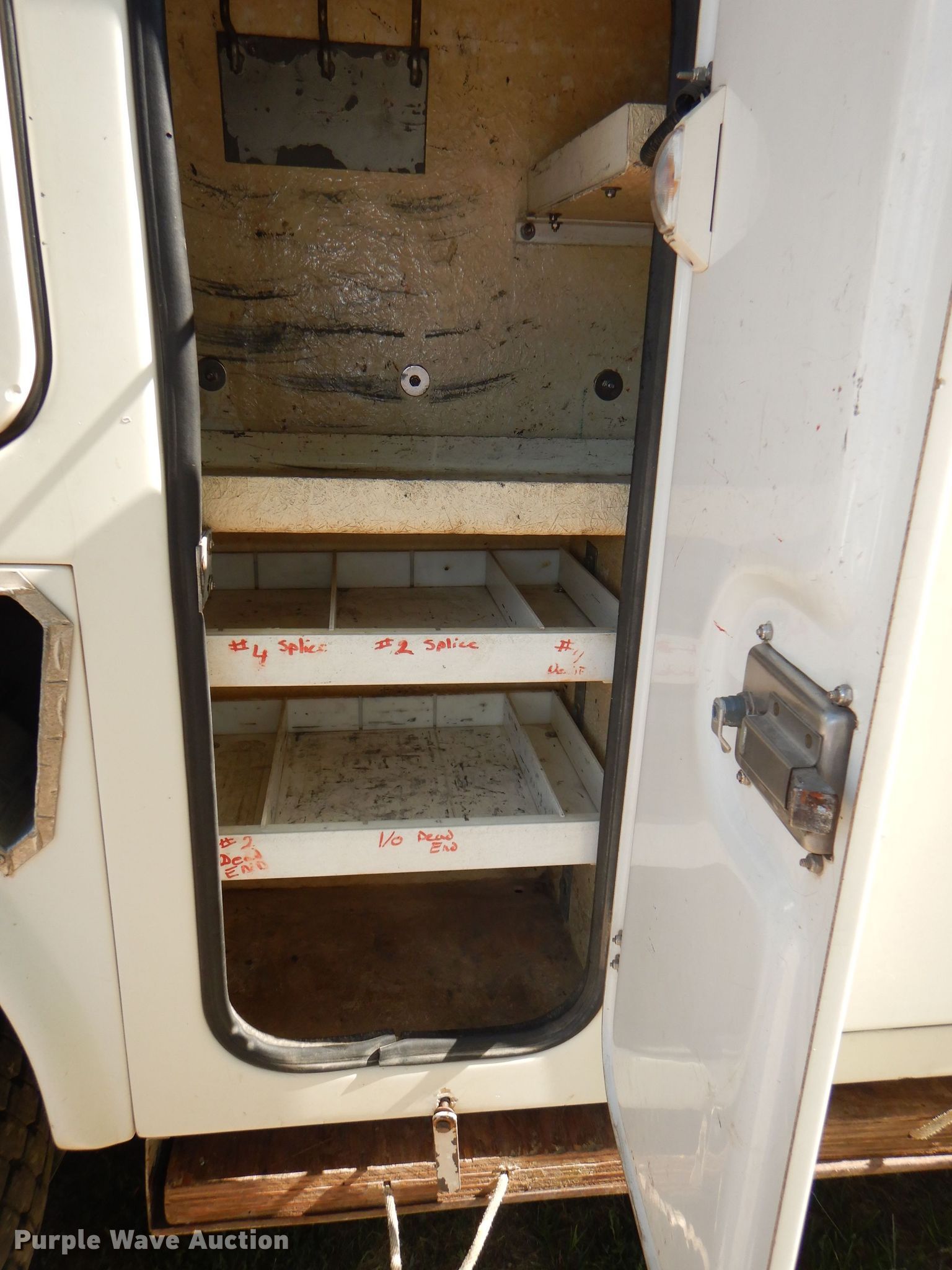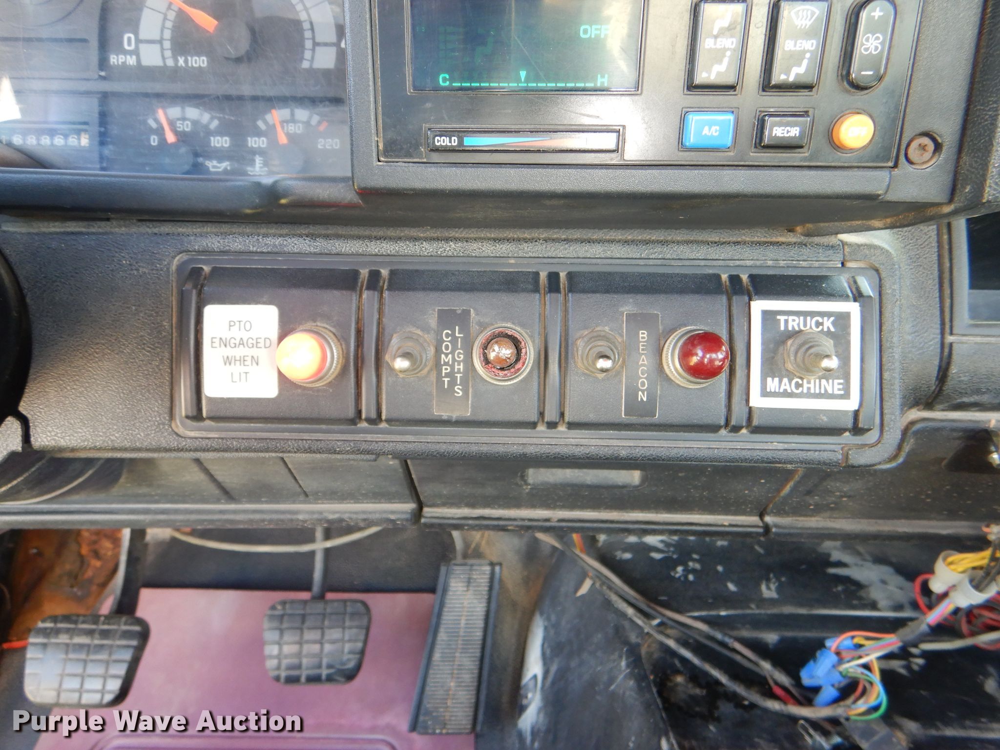 1994 Chevrolet Kodiak C6500 bucket truck. 168,866 miles on odometer, 13,674 hours on meter, 7,895 PTO hours on meter, Caterpillar 3116 6.6L L6 diesel engine, Five speed manual transmission, Single axle, AC and heat, PTO, Altec 14'L utility bed Serial 37-64228, 1994 Altec AM855 insulated boom 600 lbs maximum lift capacity, 55' maximum lift height, (2) man baskets Individual rotation, Ground and platform controls, Material handler, Three phase tree, Spring suspension, Hydraulic brakes, 193" wheelbase, Goodyear 10R20 tires, GVWR 33,000 lbs, Inspection report completed January 2019, Manuals. Kansas title. 1GBL7H1J1RJ106287. City of Washington. Washington, KS 66968