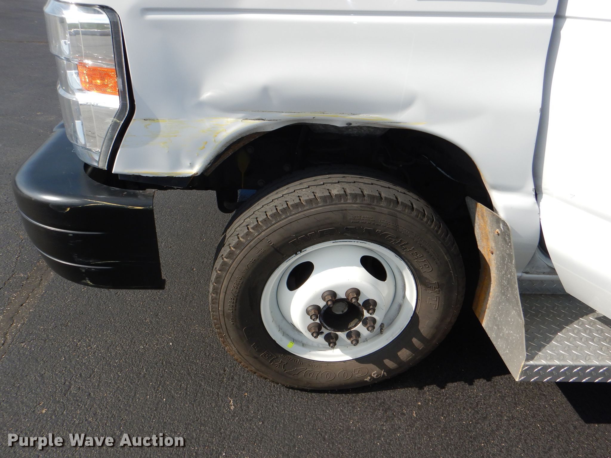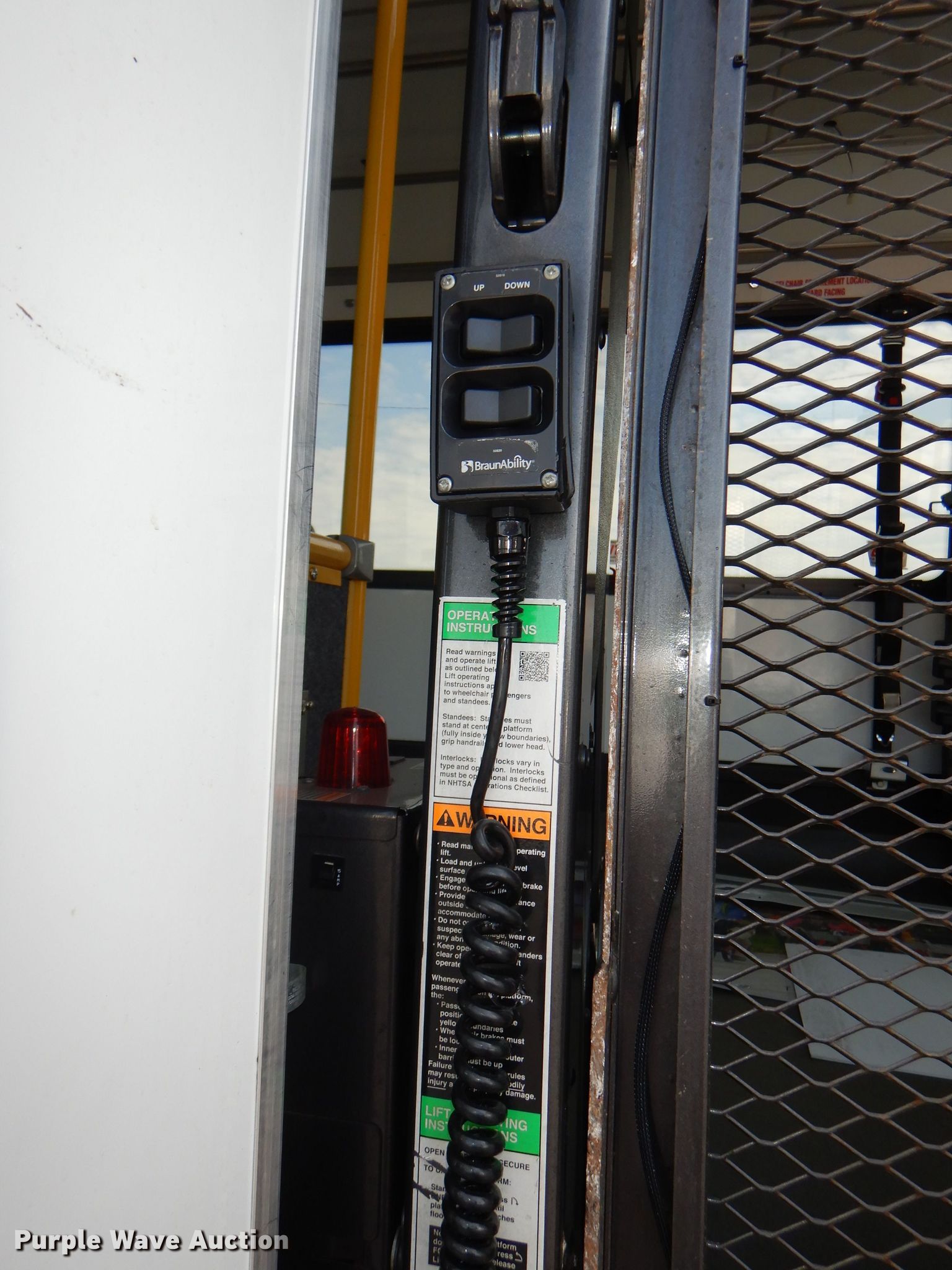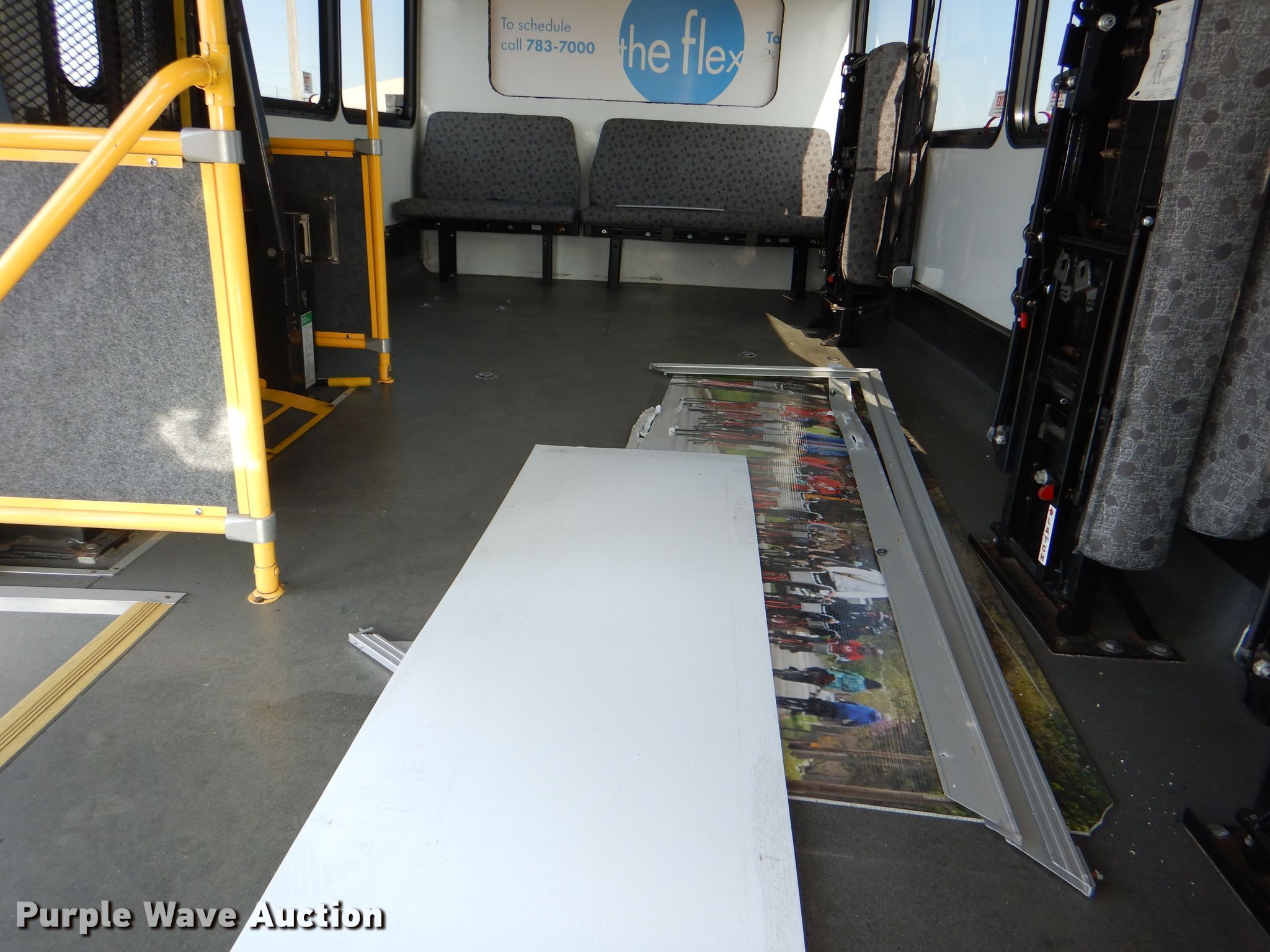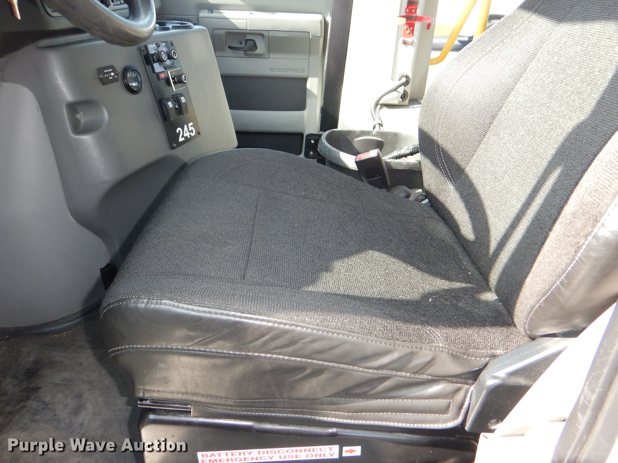 Purple Wave is selling a used Bus in Kansas. This item is a 2013 Ford Econoline E450 Super Duty Glaval shuttle bus with the following: 110,676 miles on odometer, 8,472 hours on meter, 6.8L V10 SOHC 20V gas engine, Automatic transmission, Single axle, AC and heat, Cruise, Backup alarm, Wheelchair lift, Spring suspension, Hydraulic brakes, 190" wheelbase, Goodyear 225/75R16 tires, GVWR 14,600 lbs, Seats have been removed, Driver side mirror missing, Inner rear wheels missing, Wreck damage, Unit# 245