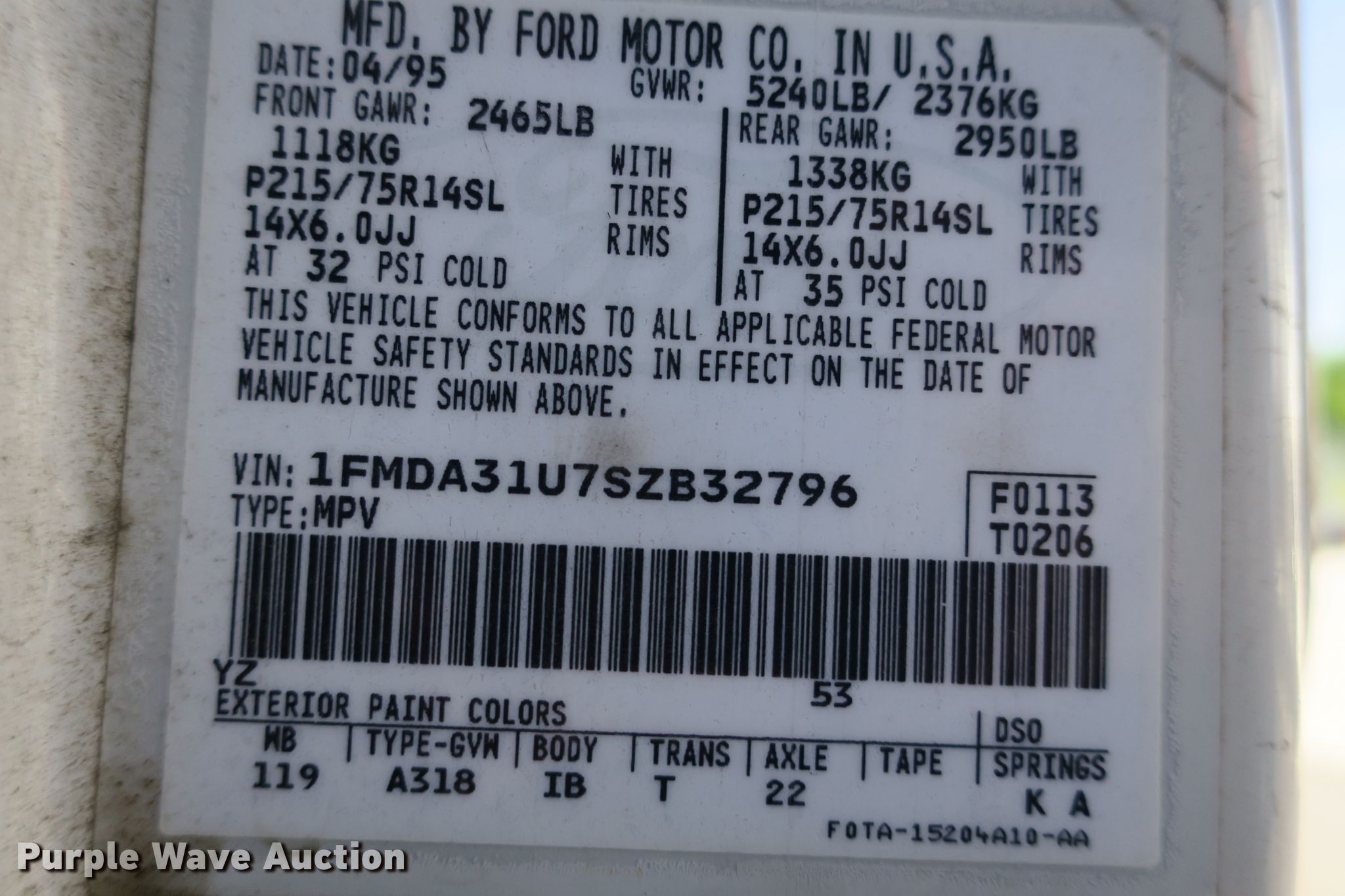 1995 Ford Aerostar XLT van | SOLD! August 20 Government Auction