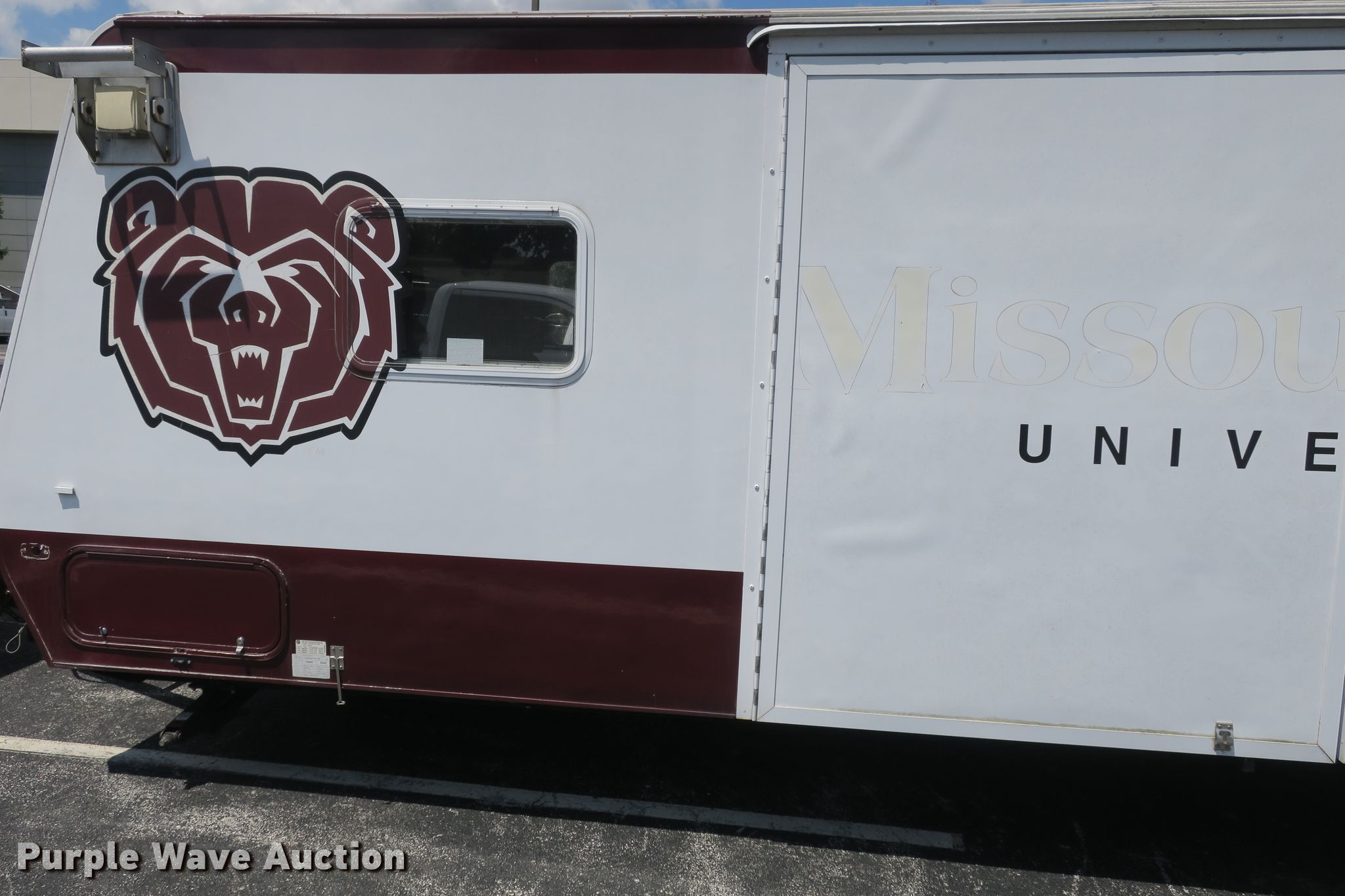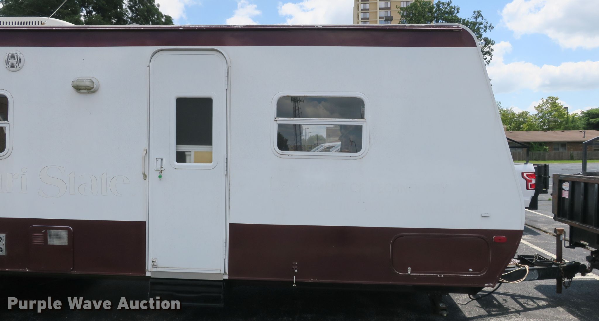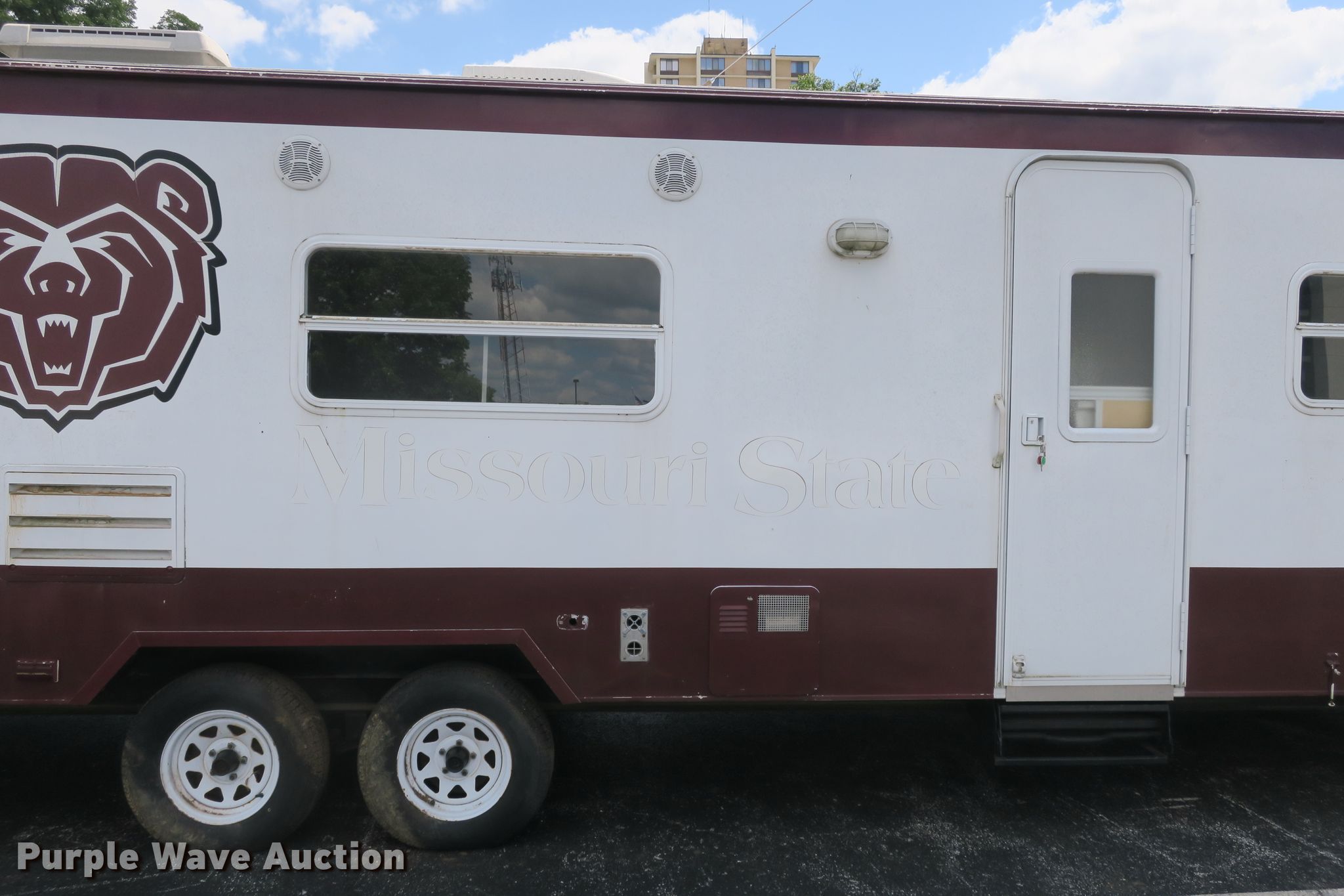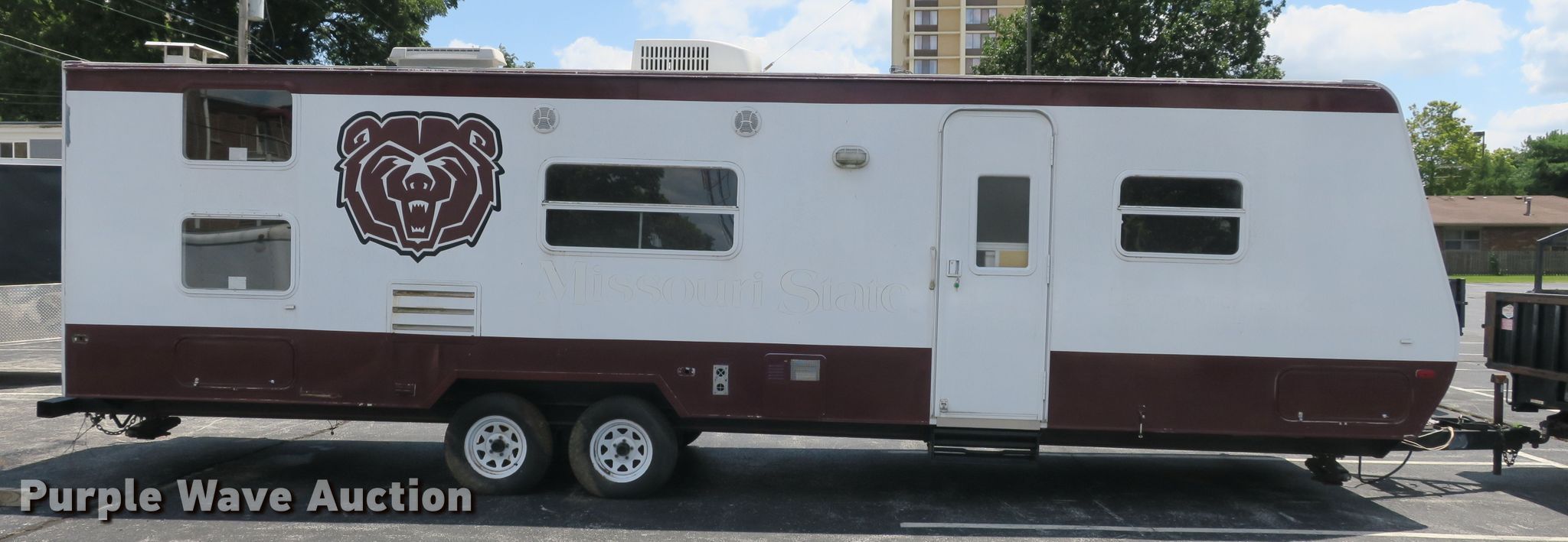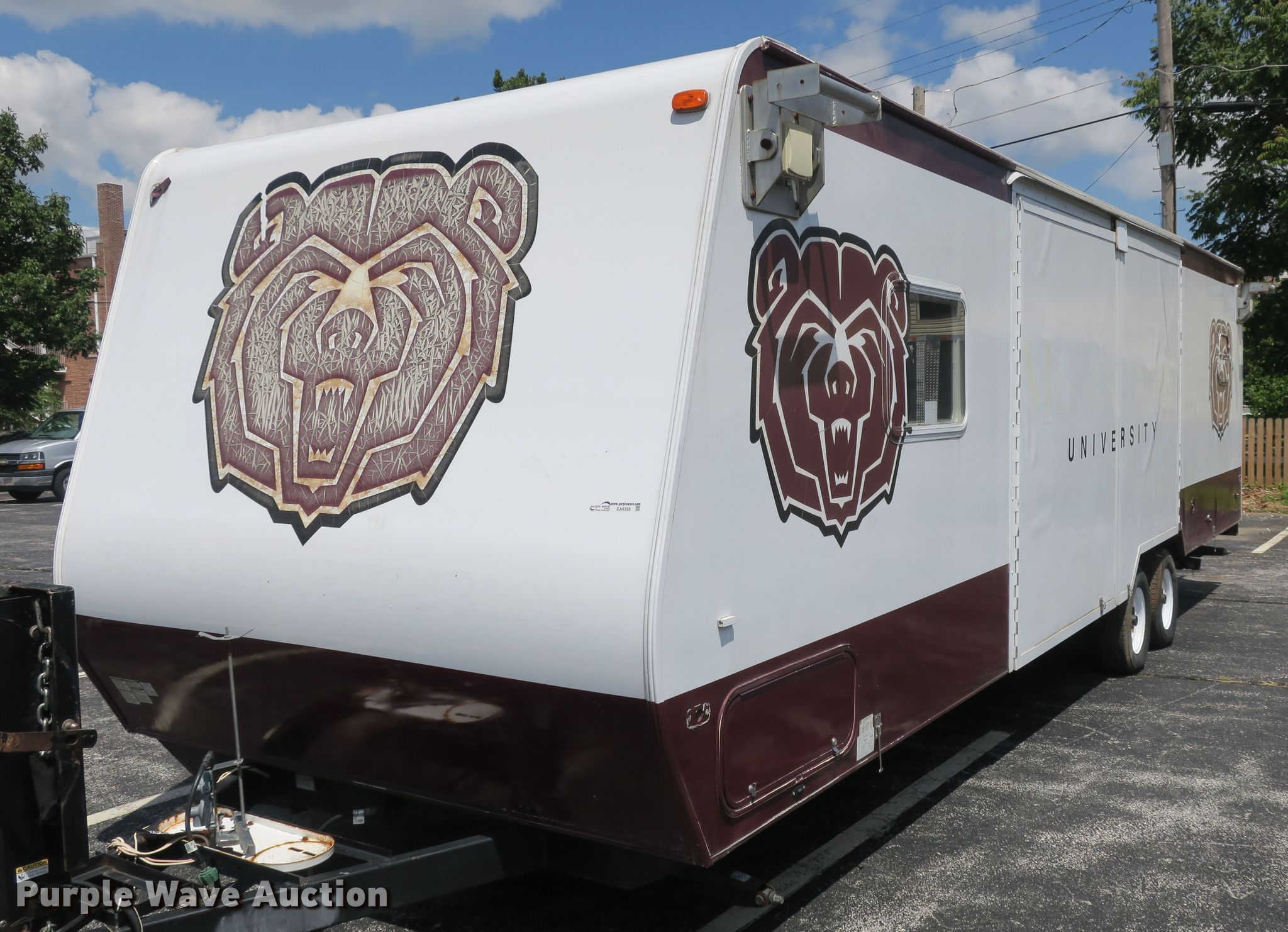 Starcraft camper. 28'L x 97"W, Kitchen Refrigerator/freezer, 50"W x 32"D grill, AC unit, 2 5/16" ball hitch, Tandem axle, Spring suspension, Electric brakes, ST205/75R14 tires, GVWR 7,000 lbs, Roof damage Water leak, Floor damage, Possible damage over rear axles. Missouri title. 1SABS02R161CK6319. Missouri State University. North Bear Parking lot # 44. SPRINGFIELD, MO 65897
