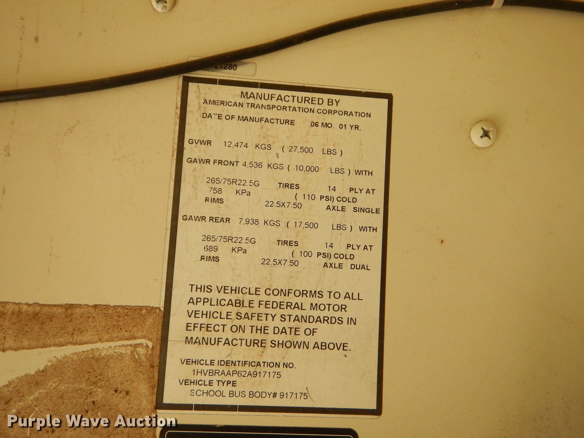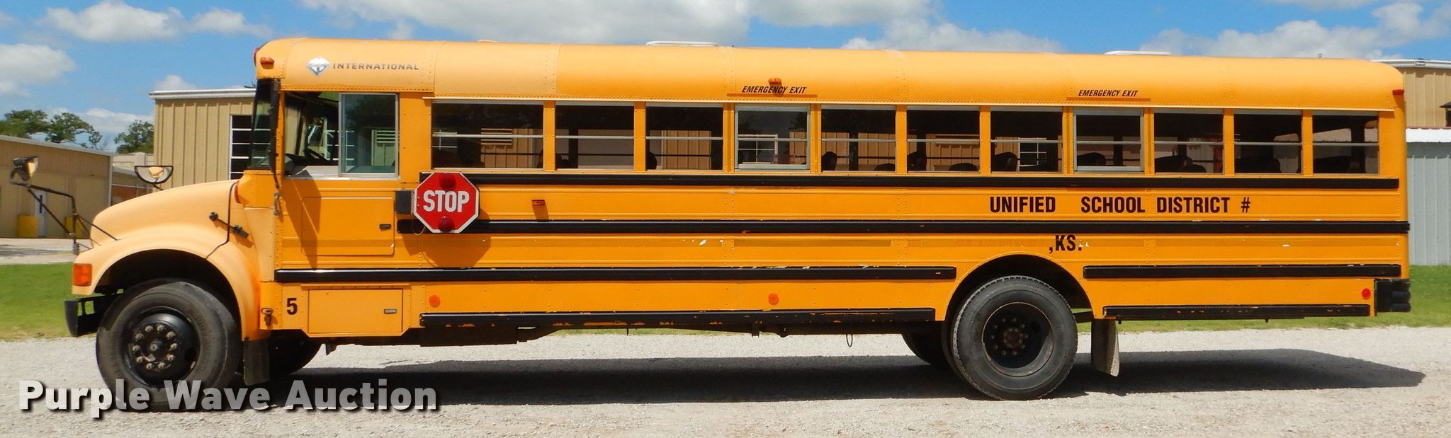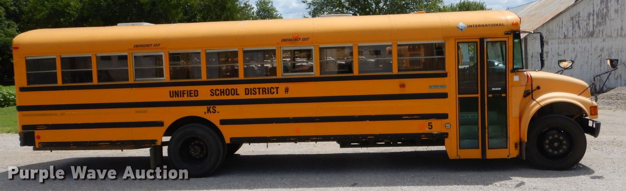 Purple Wave is selling a used Bus in Kansas. This item is a 2002 International CE Thomas school bus with the following: 190,979 miles on odometer, 7,300 hours on meter, International DT466 7.6L L6 diesel engine, Automatic transmission, Single axle, Heat, Heated mirrors, 60 passenger capacity, Spring suspension, Hydraulic brakes, 254" wheelbase, 10R22.5 tires, GVWR 27,500 lbs, Unit# 5