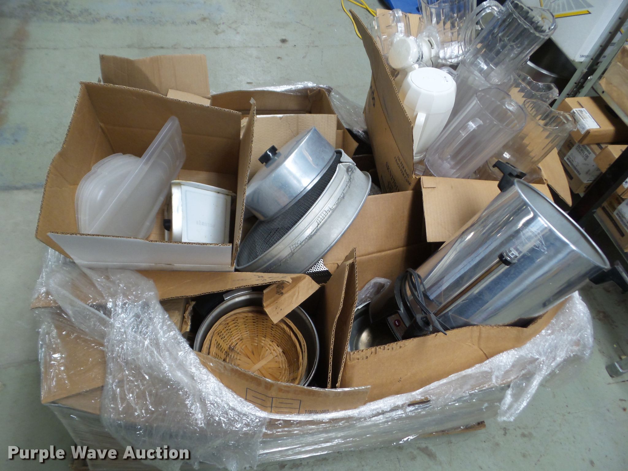Purple Wave is selling a used Restaurant Equip. in Iowa. This item is a Restaurant equipment with the following: (4) coffee makers, Pitchers, Utensils, Pan covers