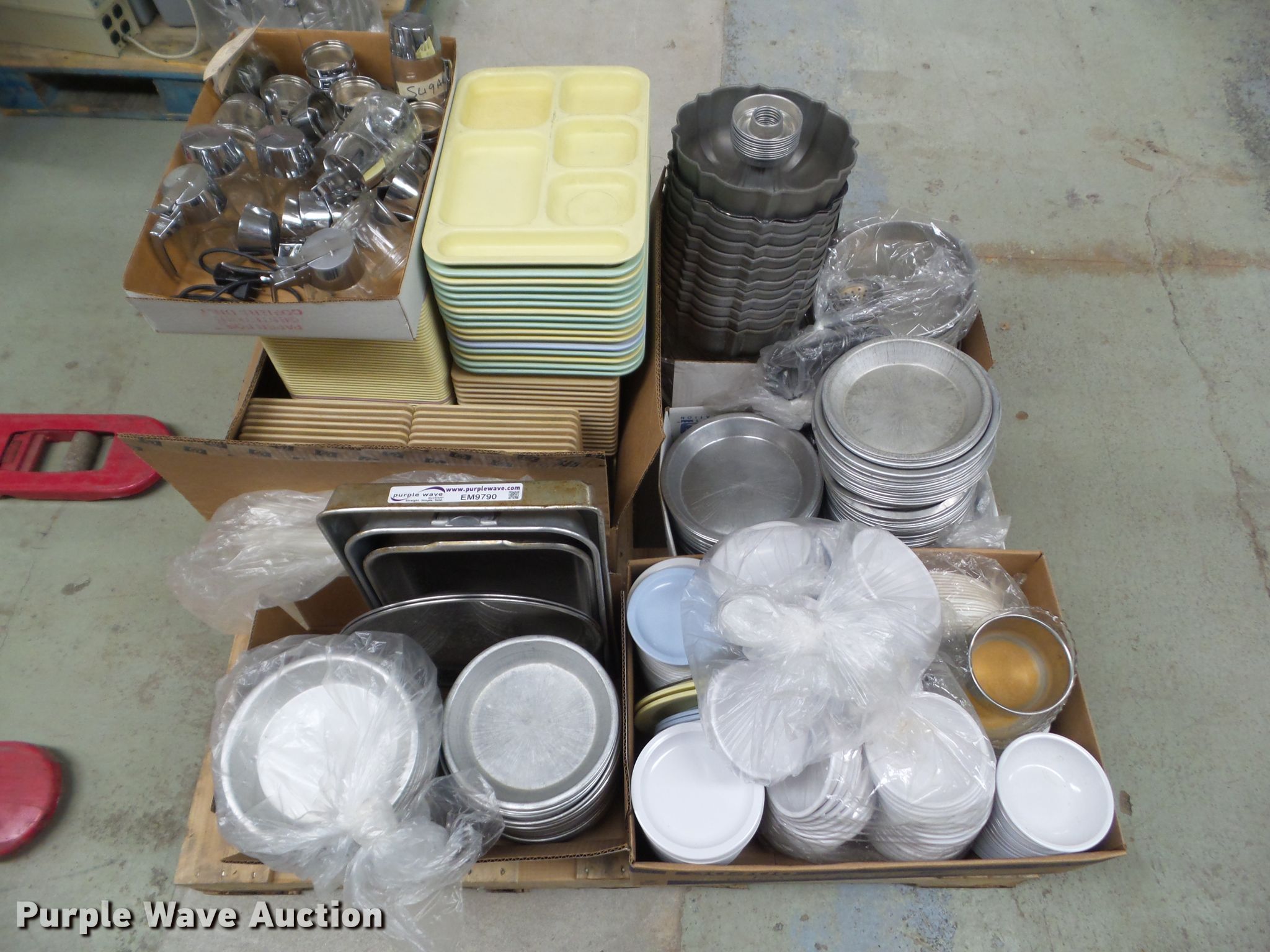 Purple Wave is selling a used Restaurant Equip. in Iowa. This item is a Restaurant equipment with the following: Pie pans, Cake pans, Trays, Condiment dispensers