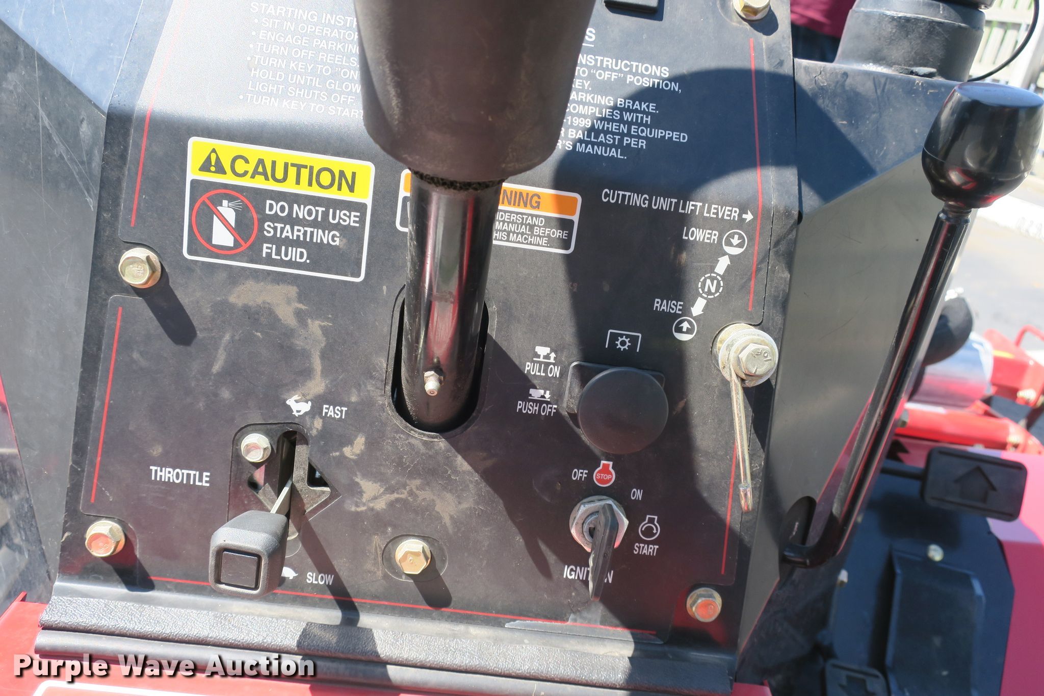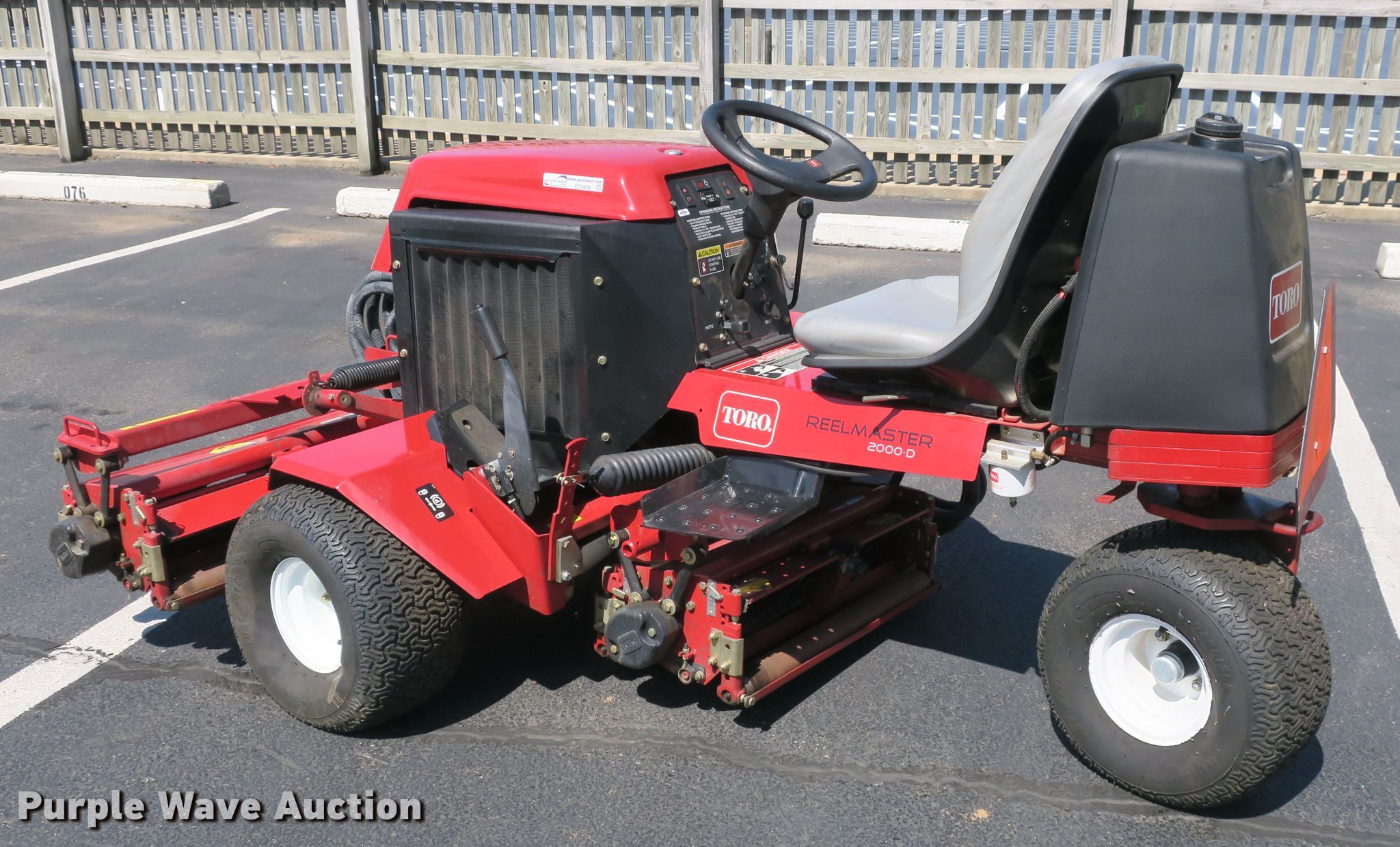 Purple Wave is selling a used Commercial Turf Mower in Missouri. This item is a Toro Reel Master 2000D reel mower with the following: 225 hours on meter, Daihatsu 522447 three cylinder diesel engine, Hydrostatic transmission, (3) reel gangs, 29"W, 20 x 10.0-8NHS tires