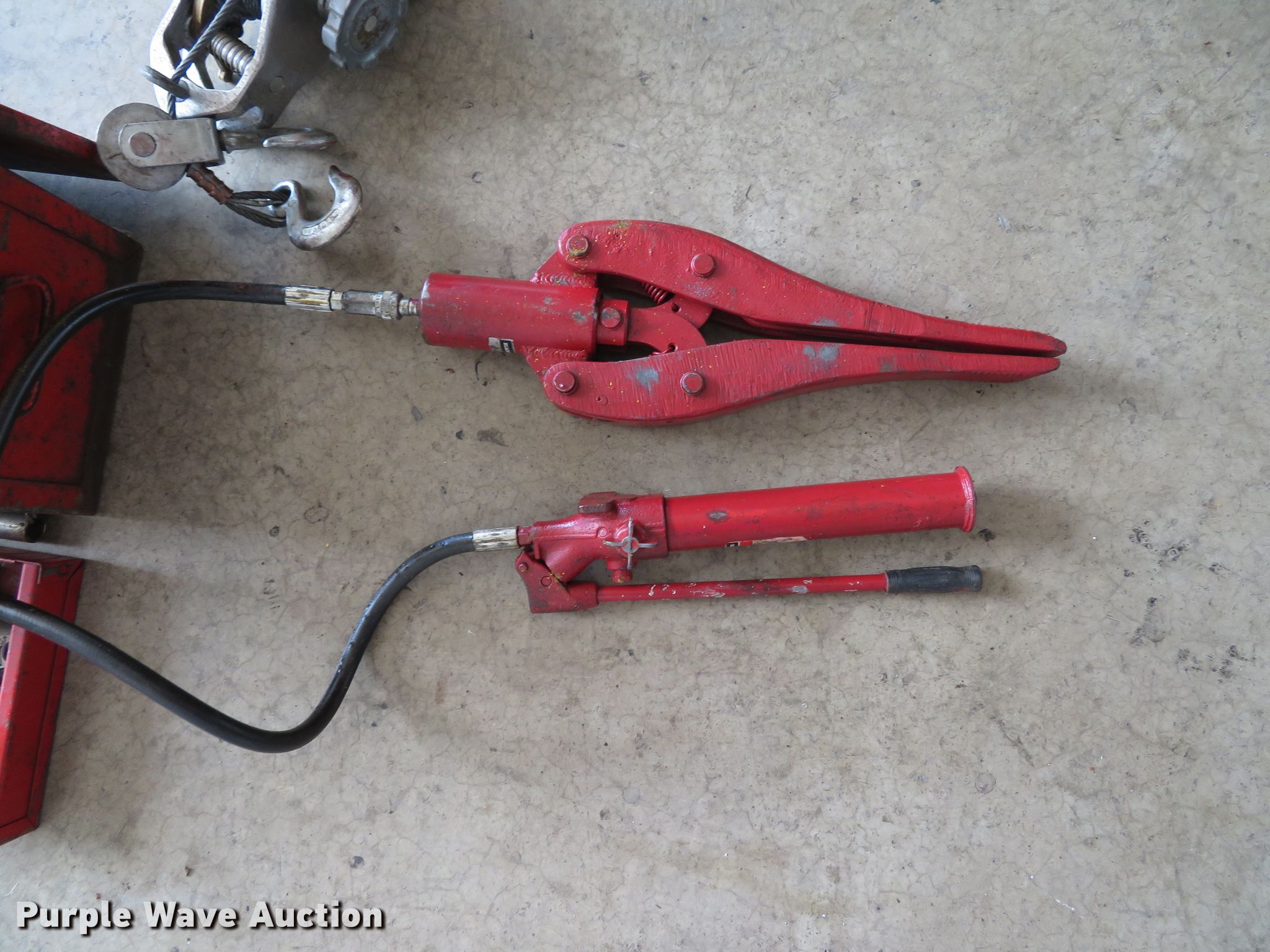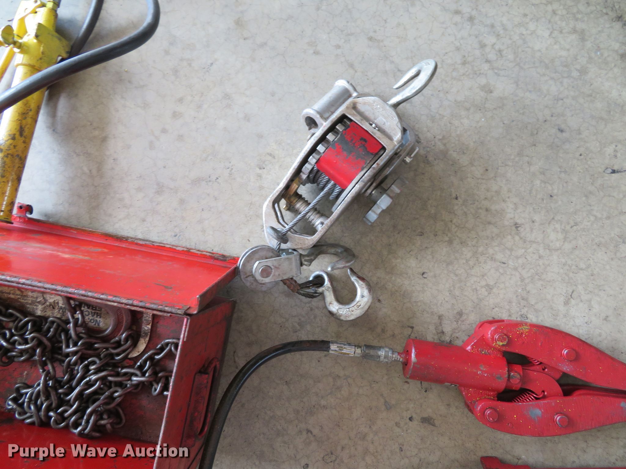 Purple Wave is selling a used Tools in Missouri. This item is a Extricator Professional RS10 rescue set with the following: (2) hydraulic hand pumps, (2) hydraulic wedges, Straight ram, Come-a-long, Hand tools, Toolbox
