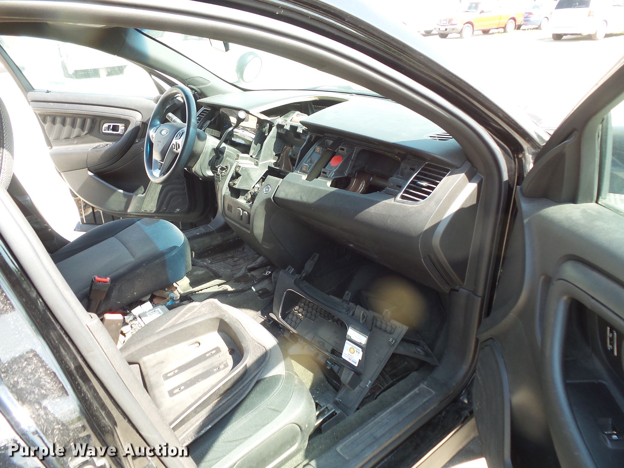Purple Wave is selling a used Passenger Vehicle in Iowa. This item is a 2014 Ford Taurus Police Interceptor with the following: 123,883 miles on odometer, 3.7L V6 DOHC 24V gas engine, Automatic transmission, AC and heat, Cruise, Power windows, locks, and seat, Heated mirrors, 245/55R18 tires, Rear seat missing, Dash parts missing