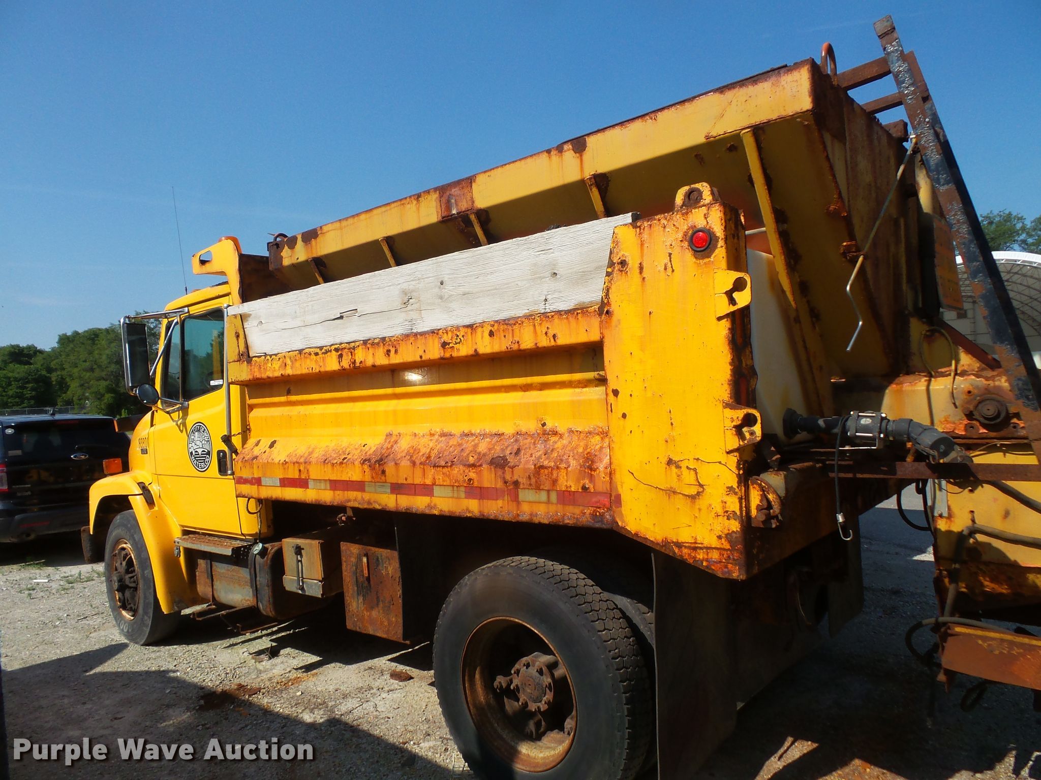 2000 Freightliner FL70 dump truck. 1,692 miles on odometer, 172 hours on meter, Caterpillar 3126 7.2L L6 diesel engine, Automatic transmission, Single axle, Heat, PTO, 10'L x 95"W steel dump bed 30" side height, 12" side board height, Single ram hoist, Manual end gate, Spreader and solution tanks, Front and rear auxiliary hydraulics, Spring suspension, Air brakes, 10R22.5 tires, GVWR 11,360 lbs, No end gate, Unknown operating condition , Unit# 193B01. Iowa title. 1FV6HJAA1YHA78310. City of Waterloo. 625 Glenwood St. Waterloo, IA 50703