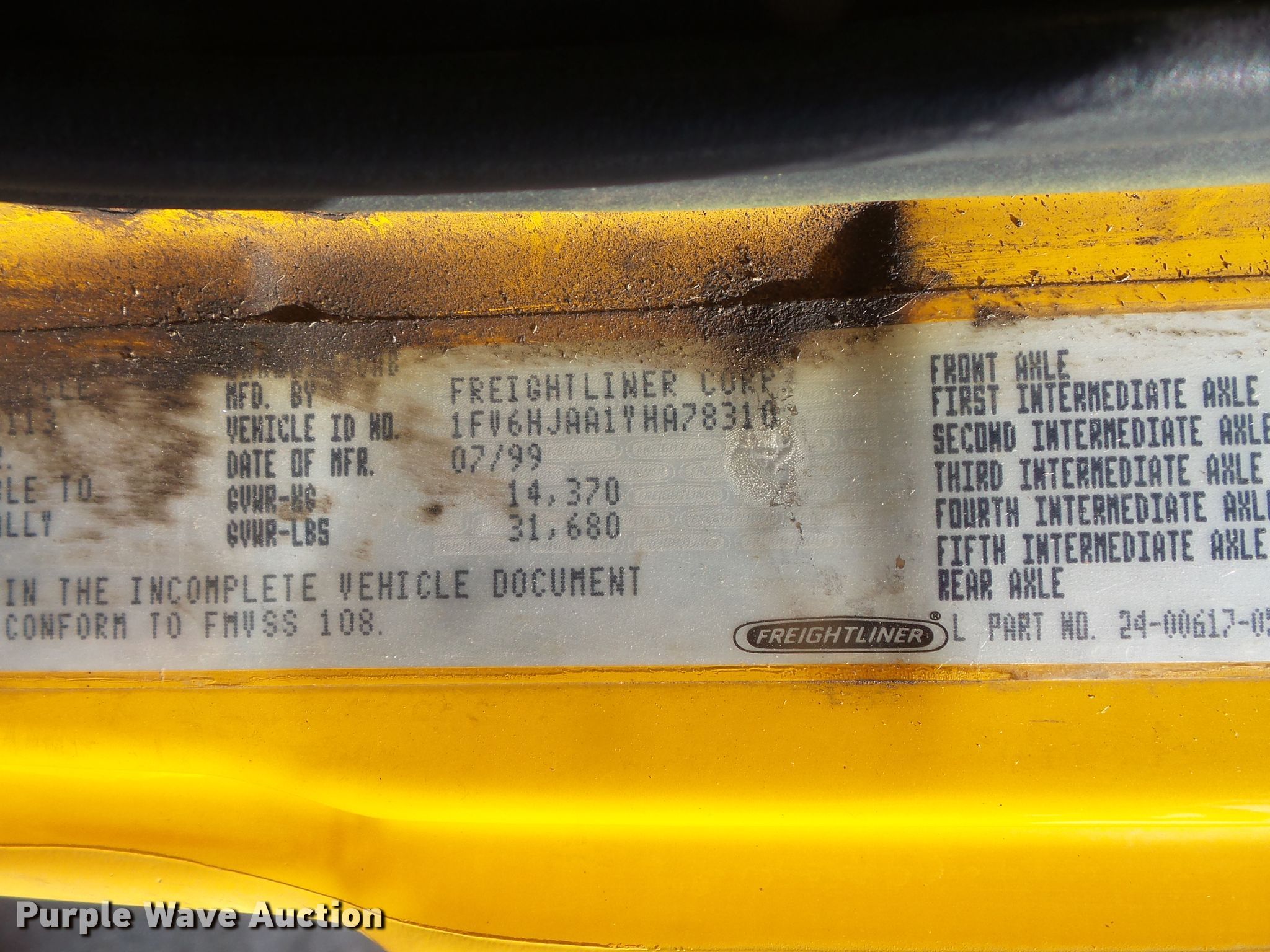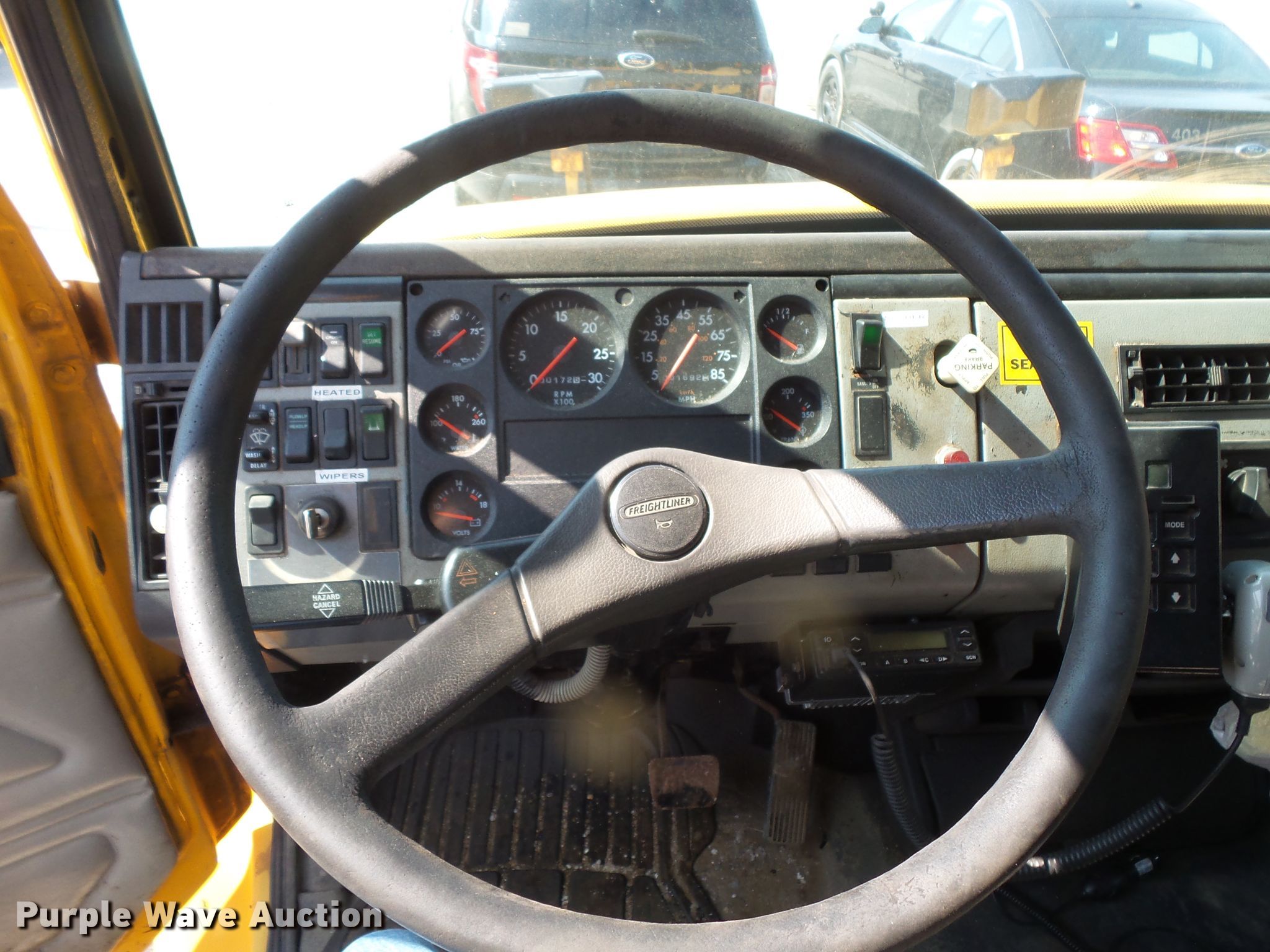 Purple Wave is selling a used Construction Dump Truck in Iowa. This item is a 2000 Freightliner FL70 dump truck with the following: 1,692 miles on odometer, 172 hours on meter, Caterpillar 3126 7.2L L6 diesel engine, Automatic transmission, Single axle, Heat, PTO, 10'L x 95"W steel dump bed, 30" side height, 12" side board height, Single ram hoist, Manual end gate, Spreader and solution tanks, Front and rear auxiliary hydraulics, Spring suspension, Air brakes, 10R22.5 tires, GVWR 11,360 lbs, No end gate, Unknown operating condition, Unit# 193B01