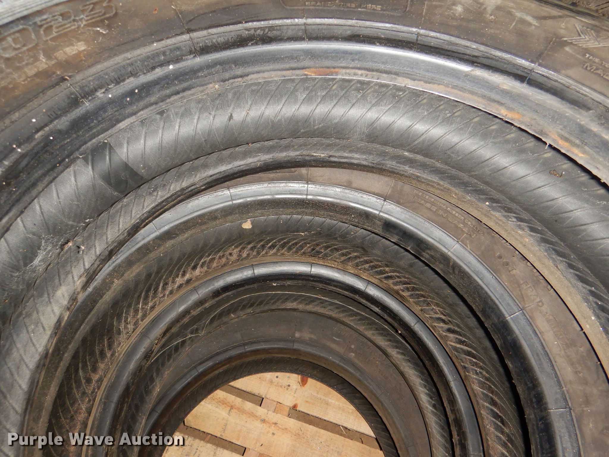 Purple Wave is selling a used Fleet Tires in Kansas. This item is a (7) tires with the following: (6) Yokohama 225/70R19.5 tires, Goodyear 265/70R17 tire and wheel